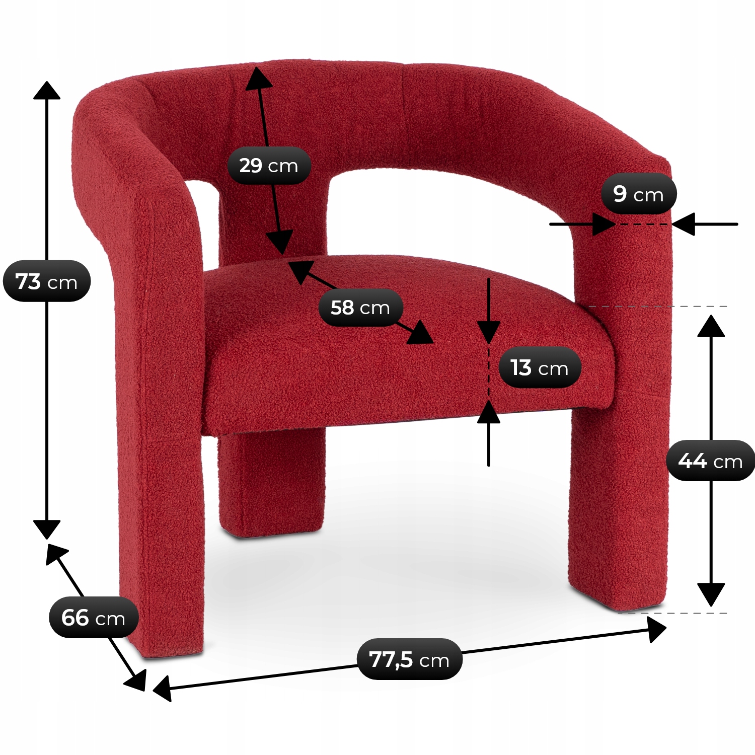 - Szerokość fotela: 77,5 cm
