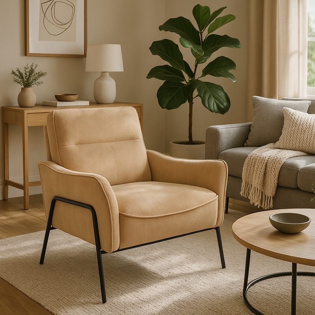 Fotel Wypoczynkowy Do Salonu Loft Tapicerowany Skandynawski Beżowy ALBERTO ⭐⭐⭐⭐⭐