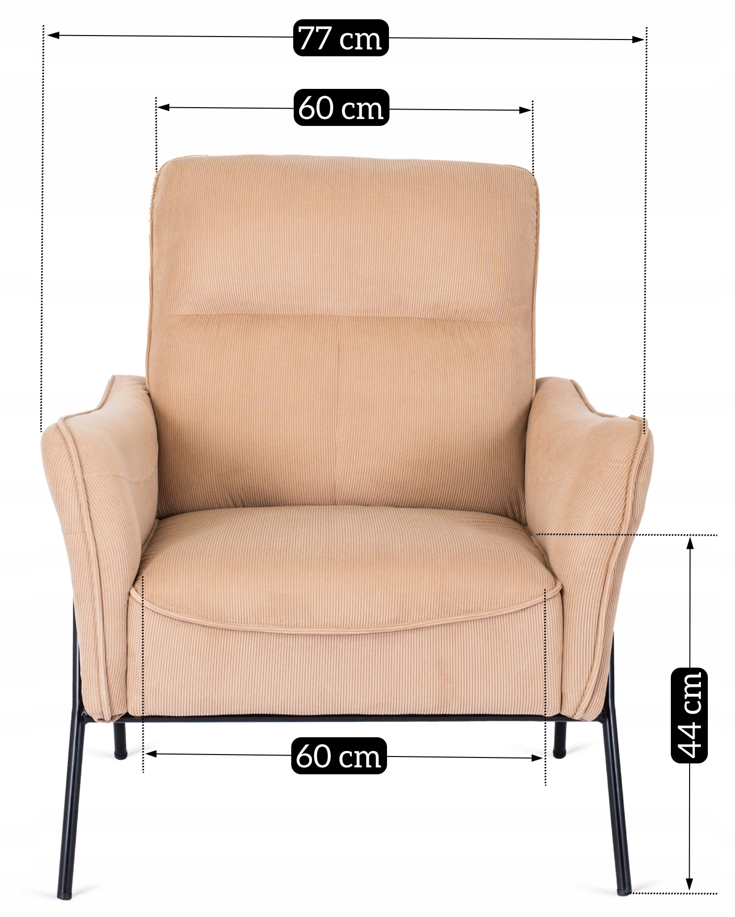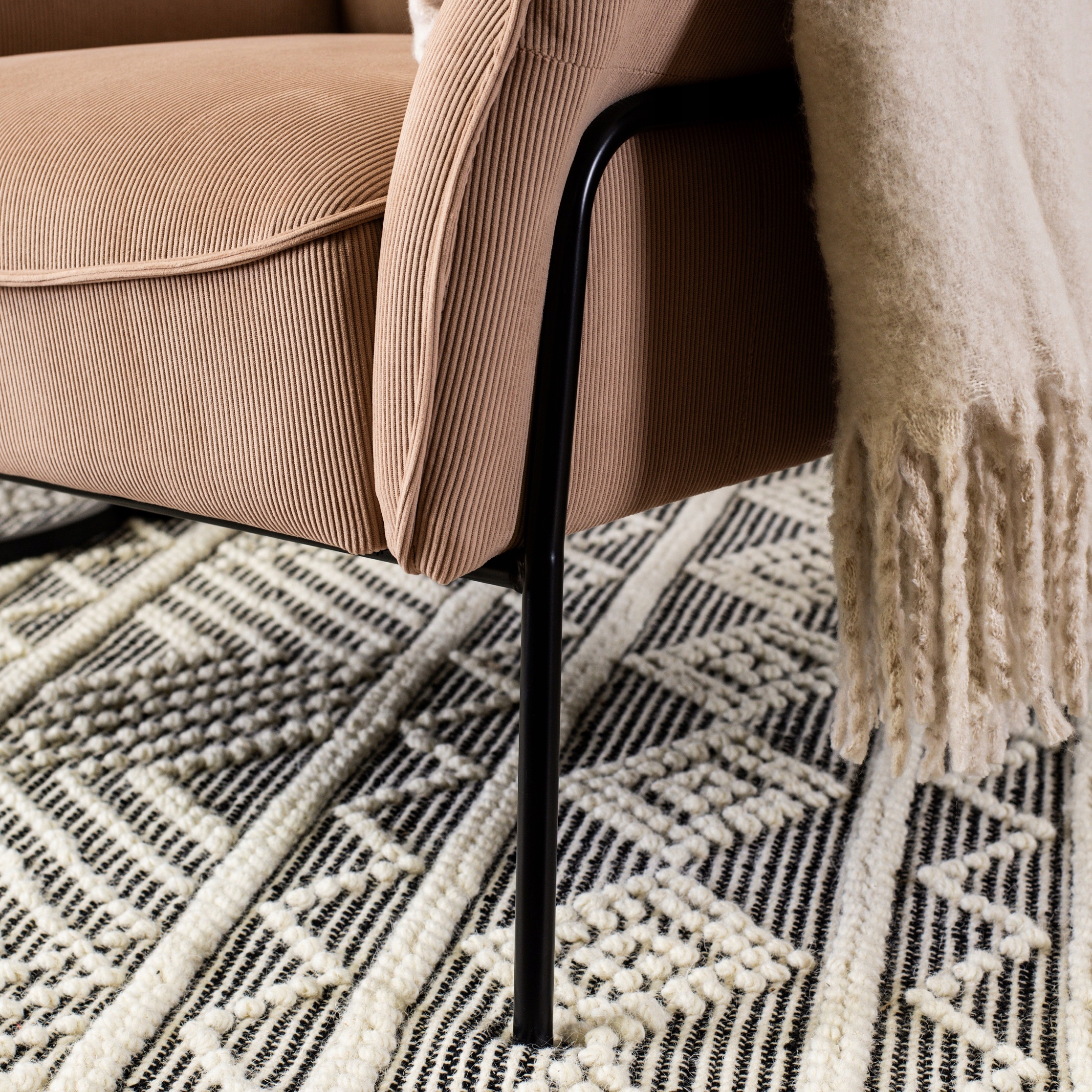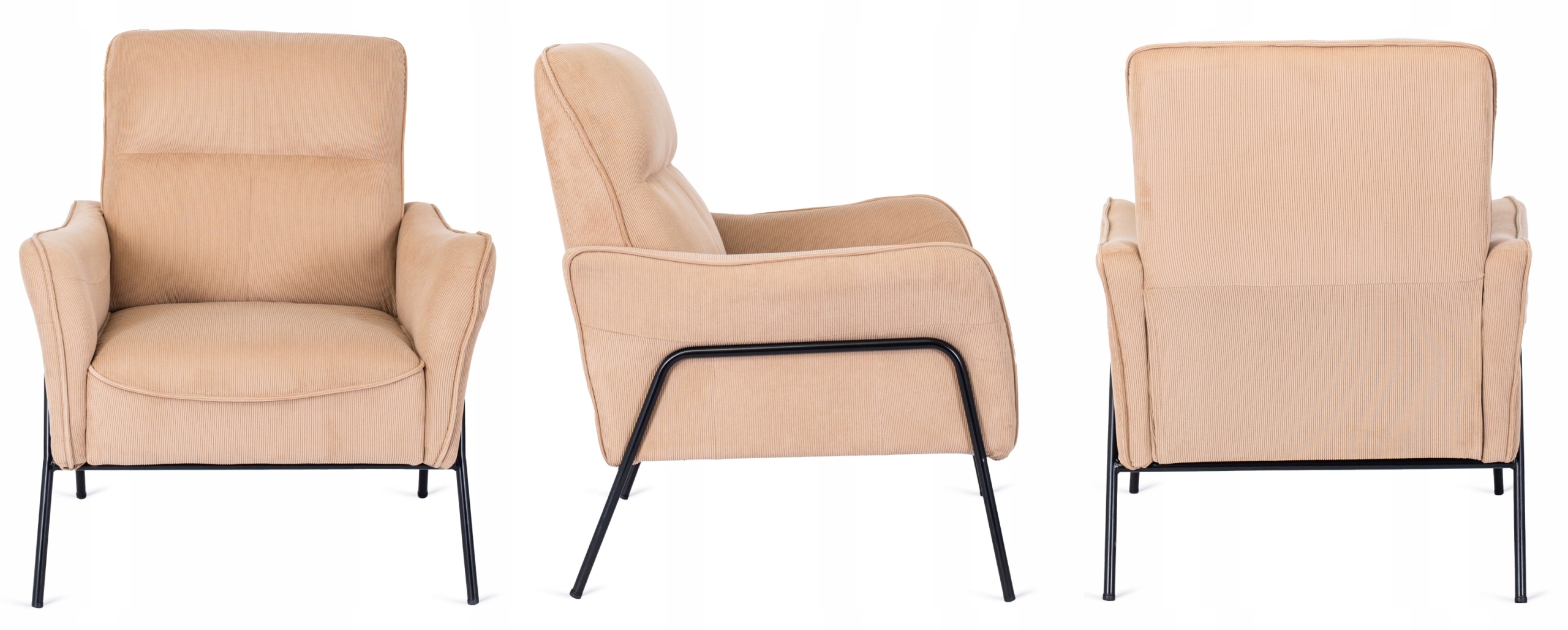 Subtelne nogi fotela są wykonane z metalu malowanego na czarny kolor.