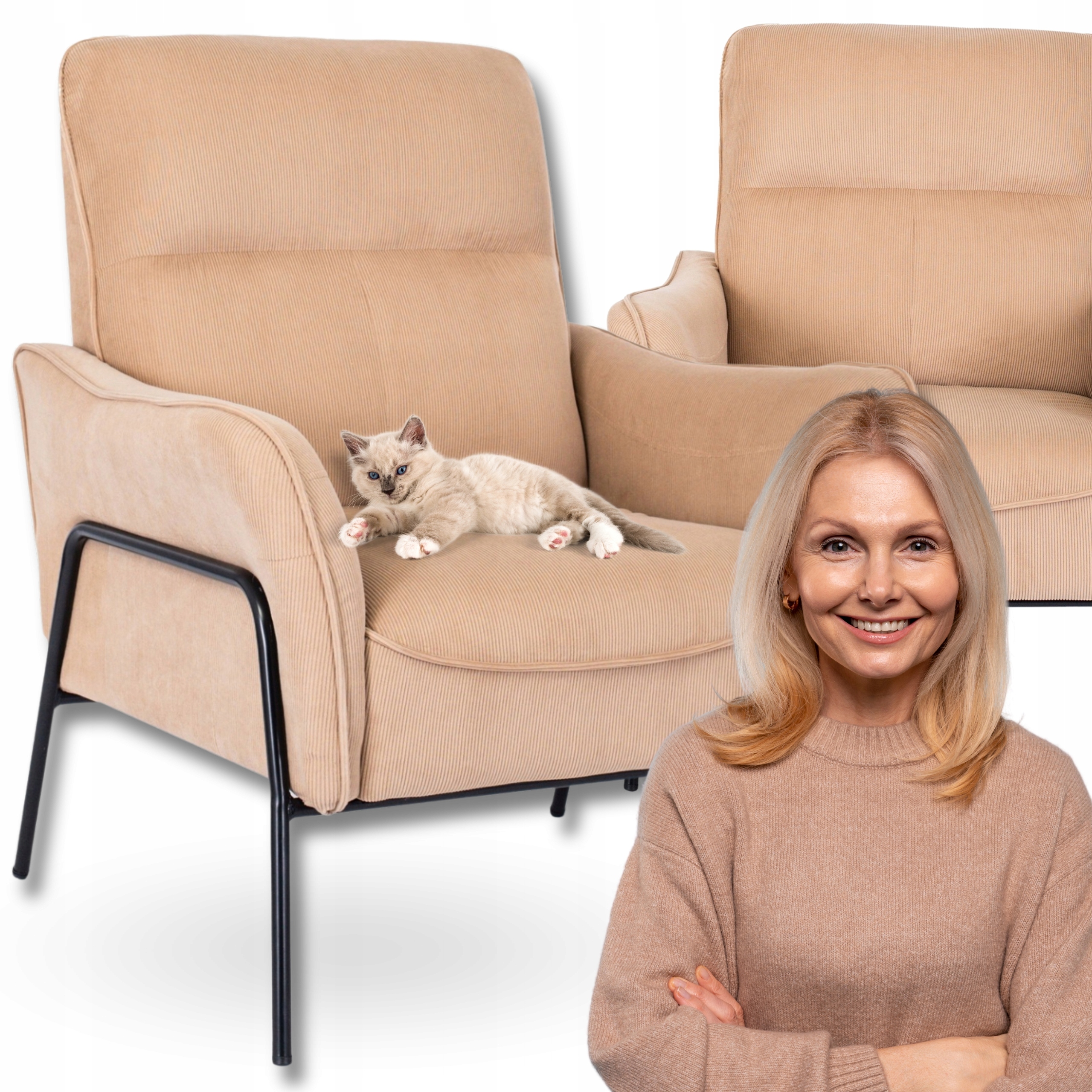 - Fotel wypoczynkowy ALBERTO kolor beżowy - czarny