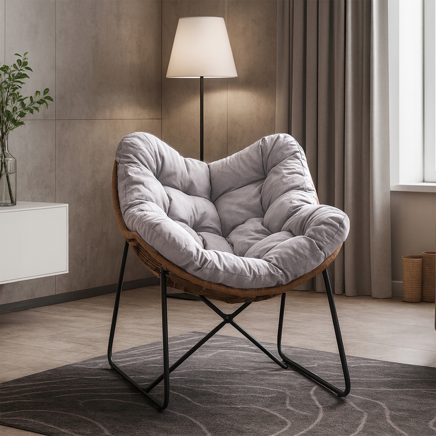 Fotel FIN to idealne miejsce na relaks - świetnie sprawdzi się w salonie. Jego konstrukcja opiera się na stabilnym, metalowym stelażu pokrytym plecionką, która dodaje mu ciepła i naturalnego wyglądu.