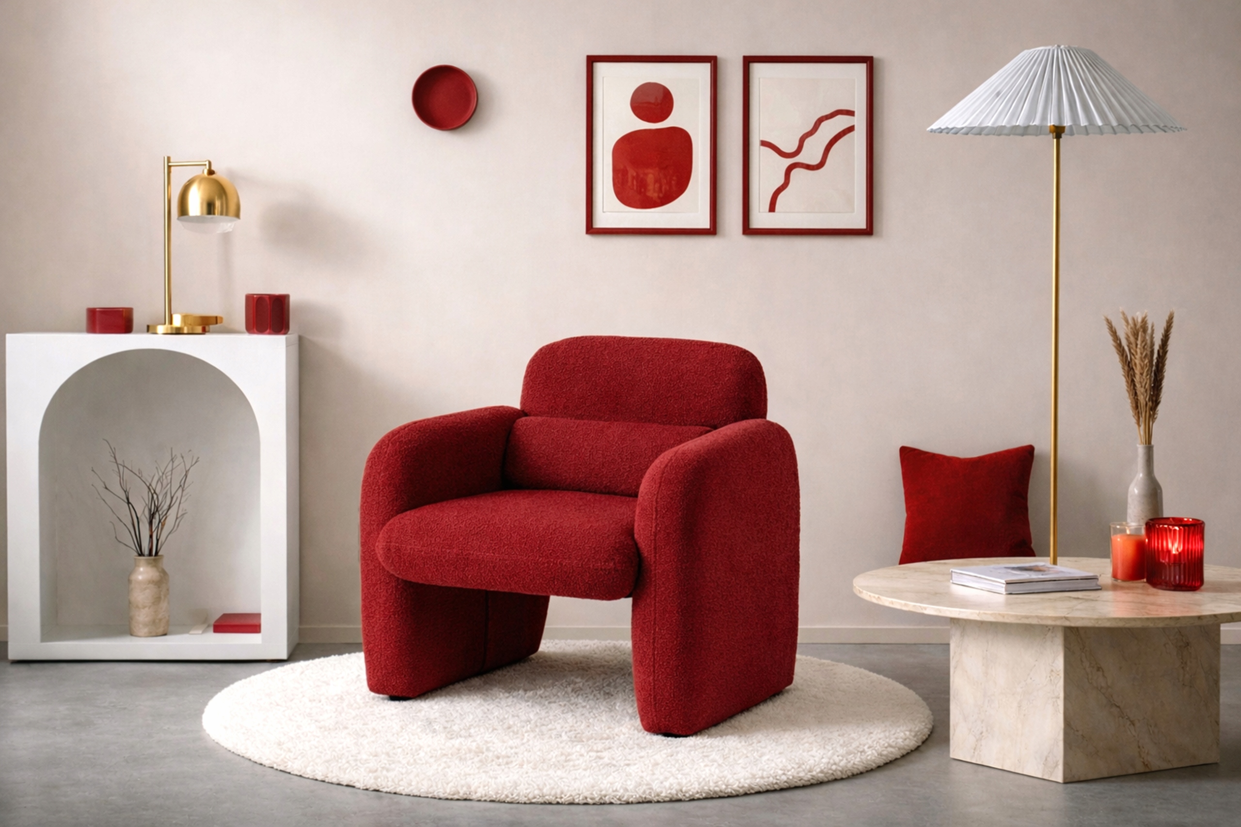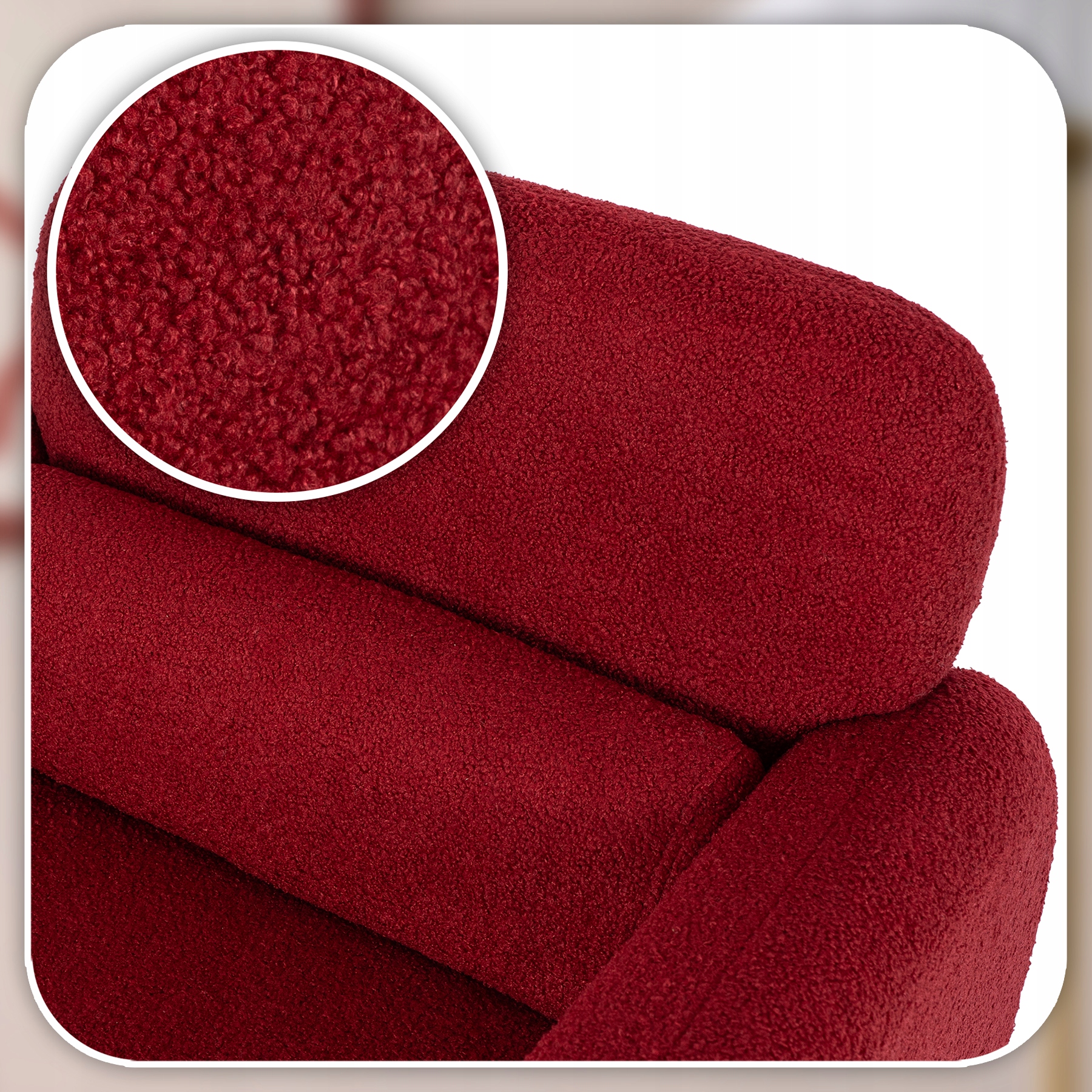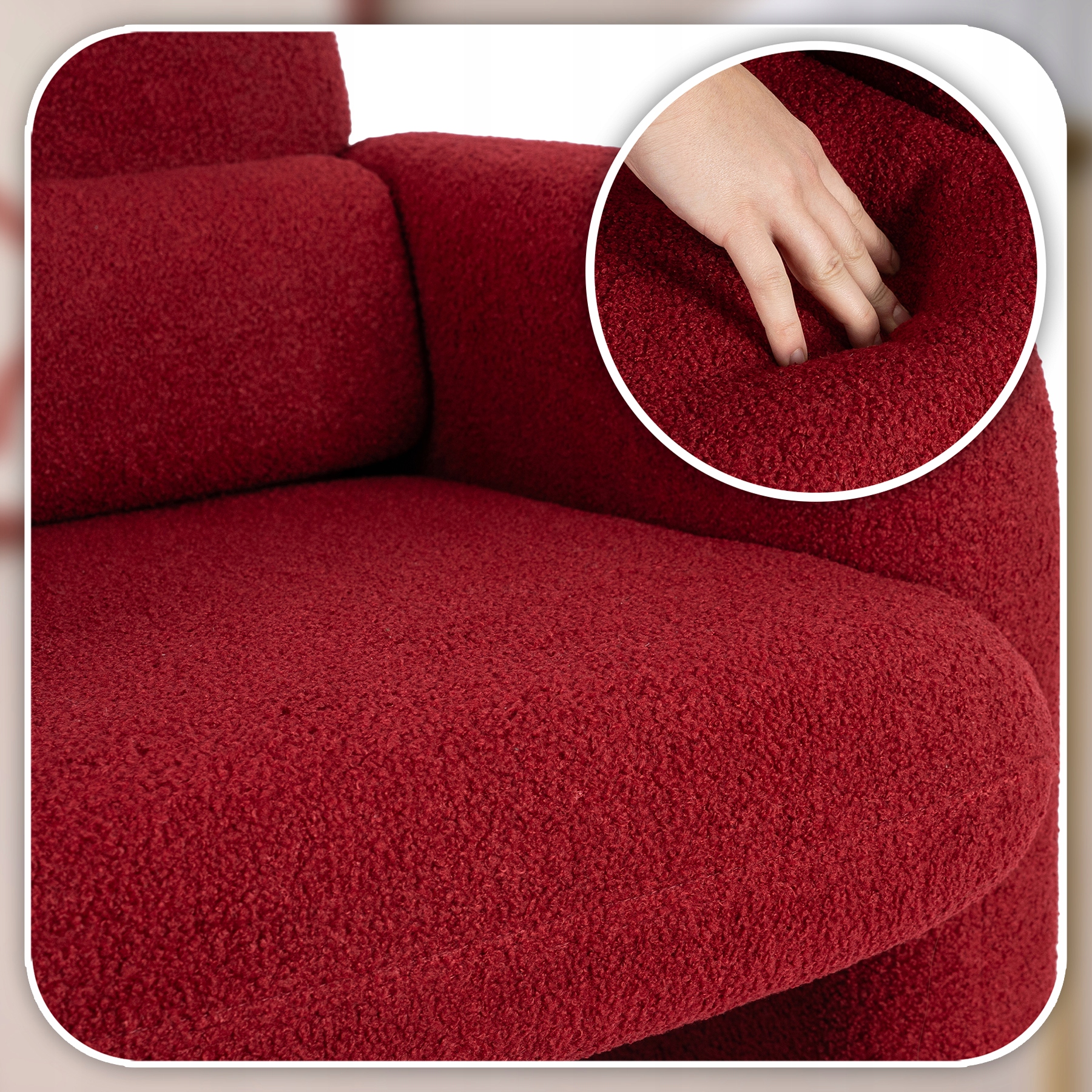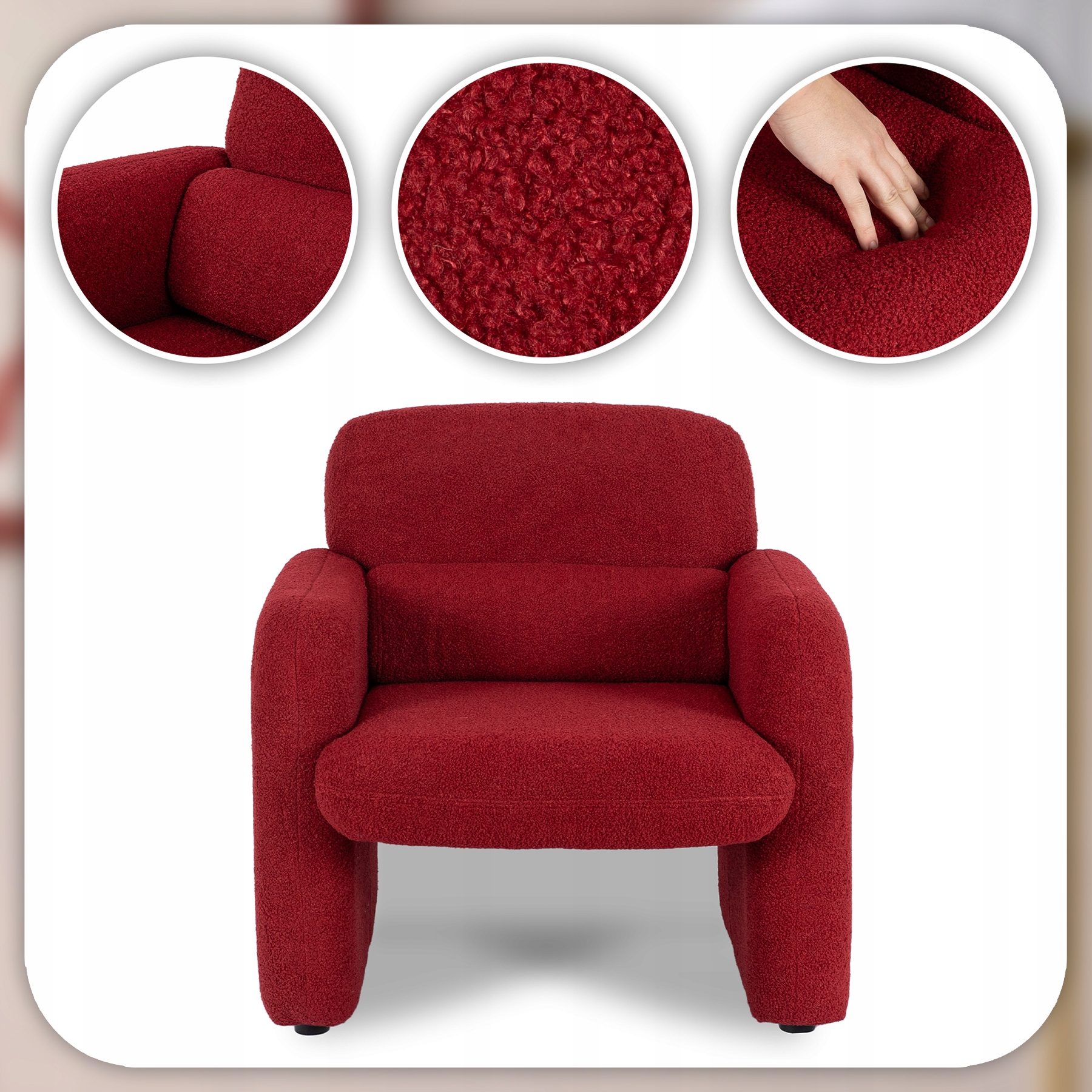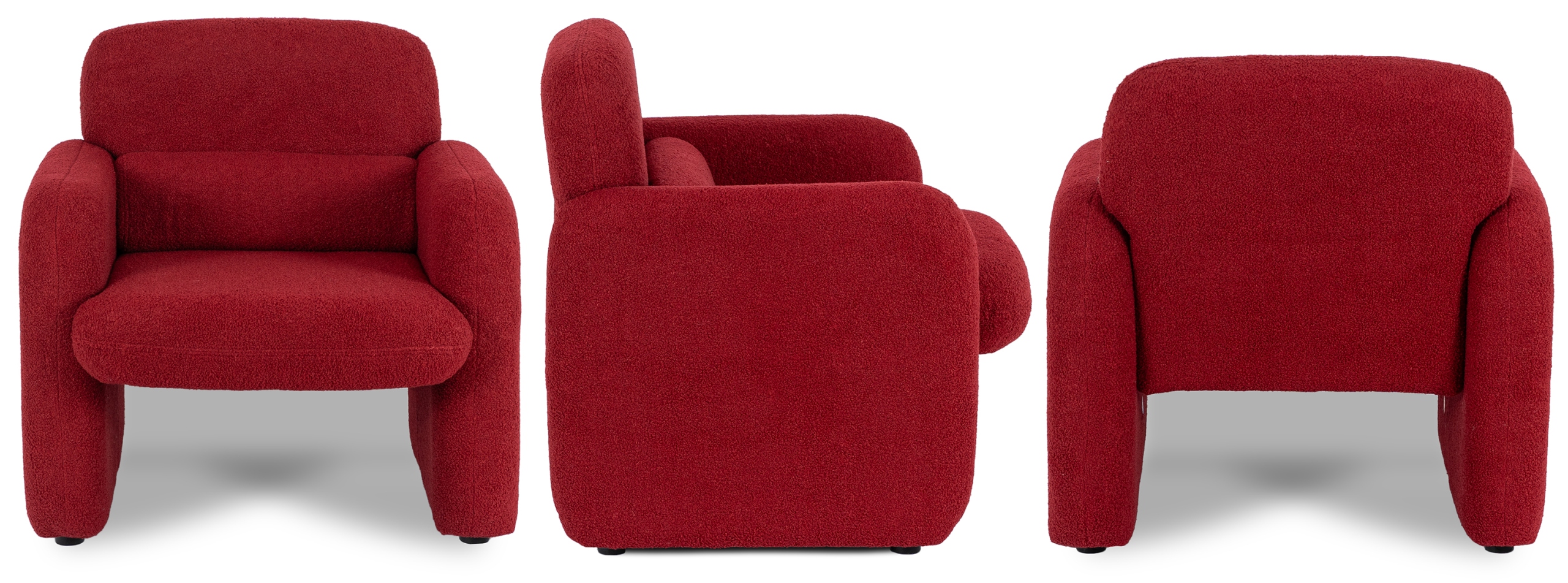 Fotel TOGO zachwyca swoją nowoczesną formą i subtelną elegancją. Piękne siedzisko i zaokrąglone oparcie sprawiają, że fotel przyciąga wzrok i dodaje wnętrzu wyjątkowego charakteru. Bordowa tkanina teddy komponuje się z różnymi stylami – do nowoczesnego po minimalistyczne aranżacje.