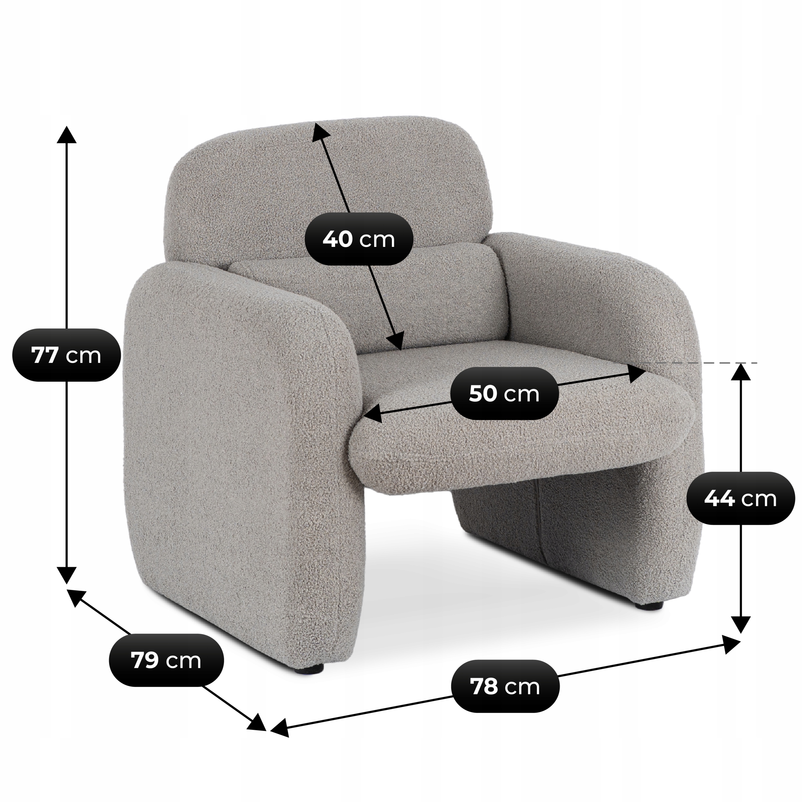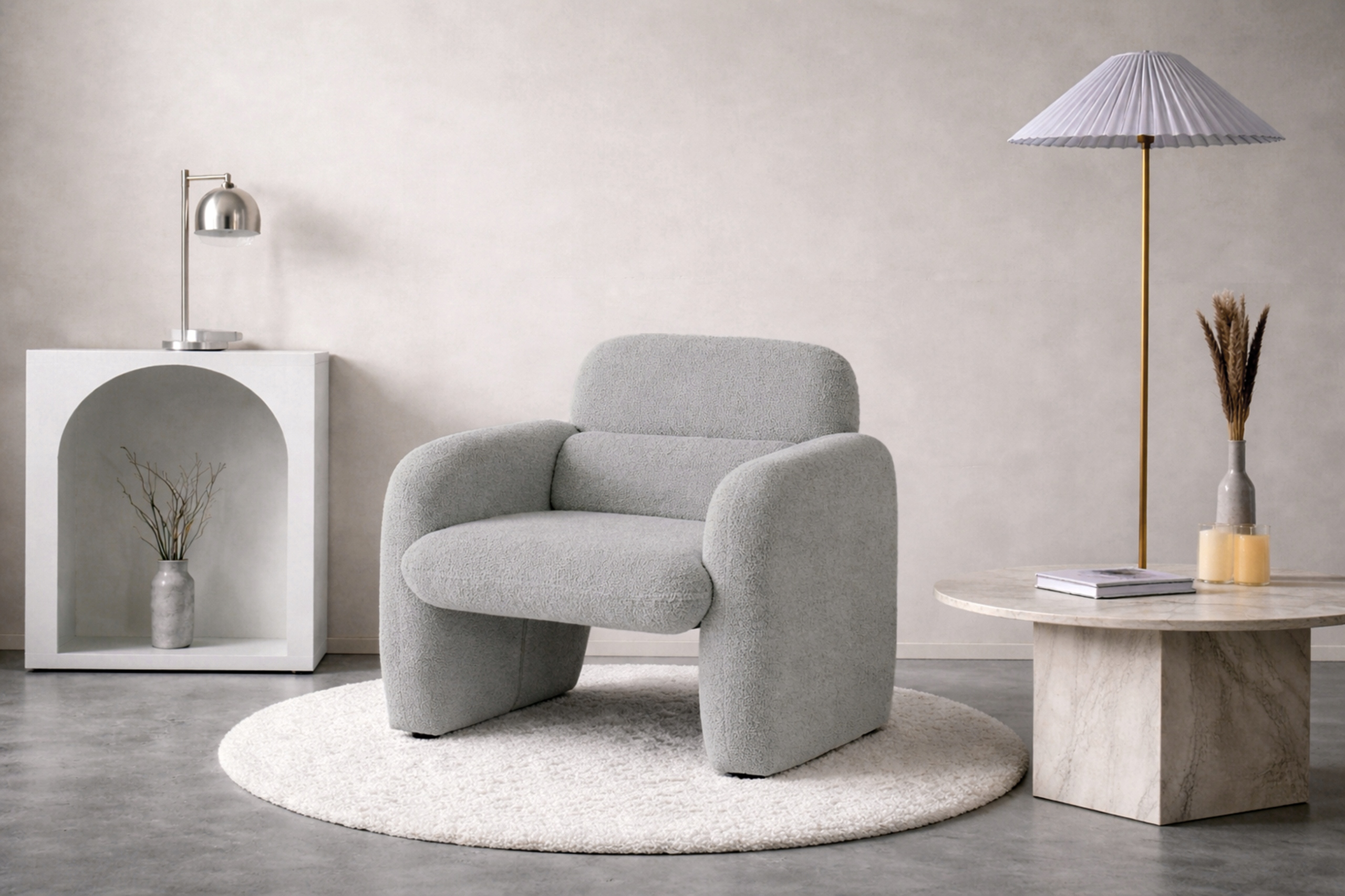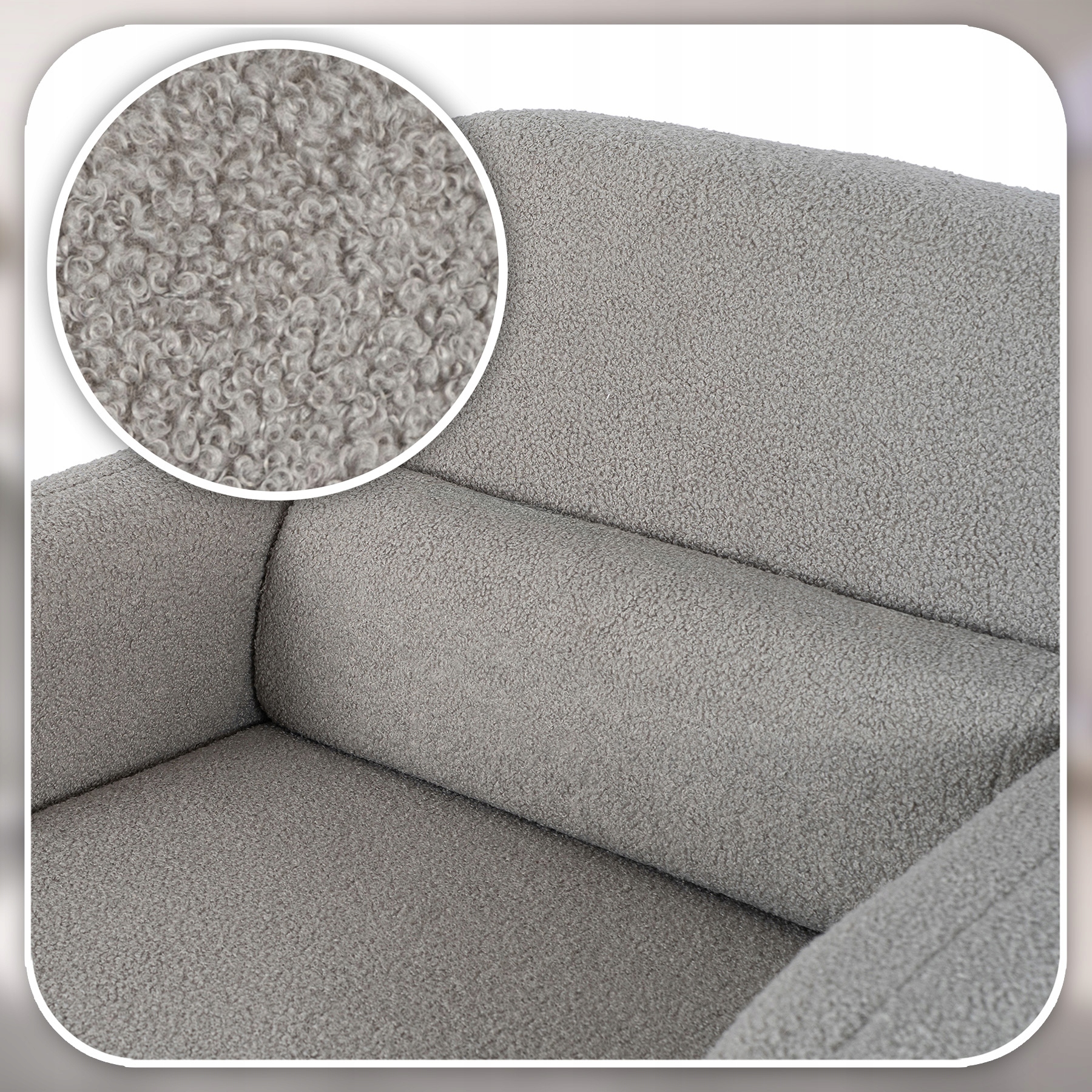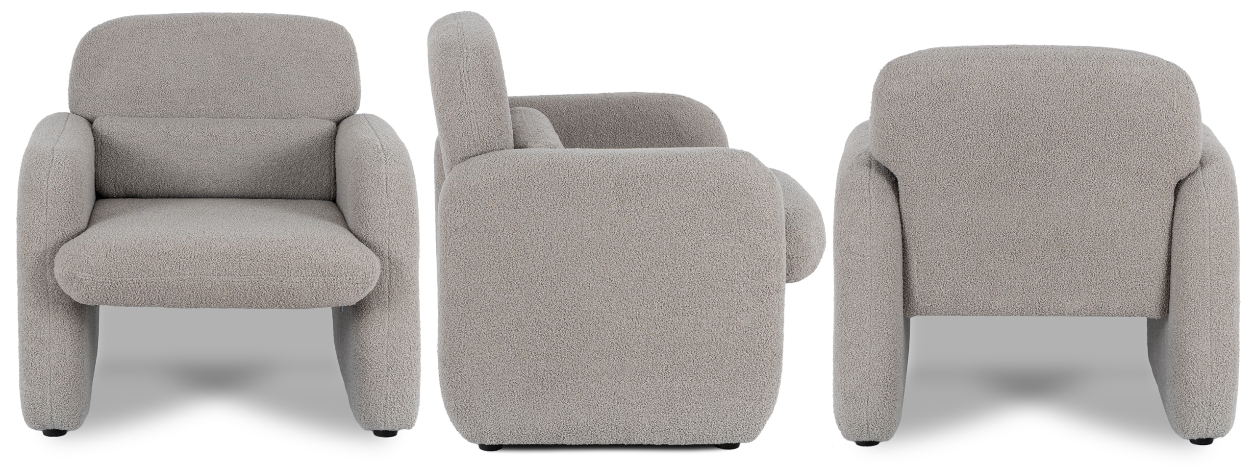 Fotel TOGO zachwyca swoją nowoczesną formą i subtelną elegancją. Piękne siedzisko i zaokrąglone oparcie sprawiają, że fotel przyciąga wzrok i dodaje wnętrzu wyjątkowego charakteru. Szara tkanina teddy komponuje się z różnymi stylami – do nowoczesnego po minimalistyczne aranżacje.