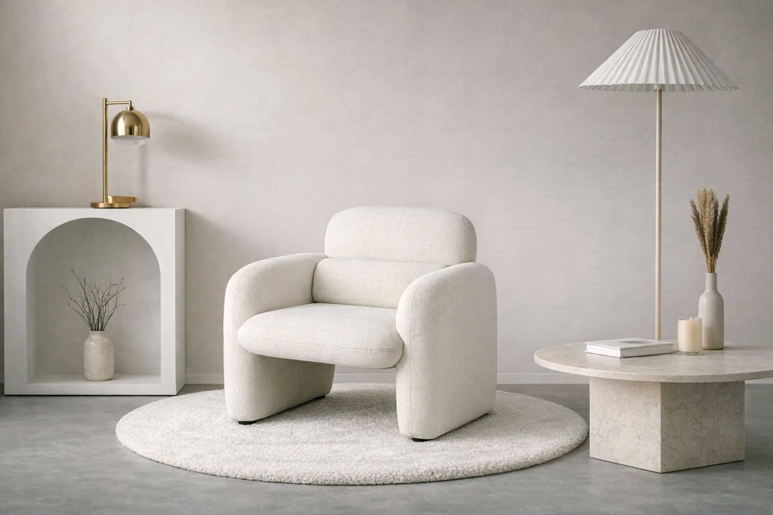 Fotel TOGO zachwyca swoją nowoczesną formą i subtelną elegancją. Piękne siedzisko i zaokrąglone oparcie sprawiają, że fotel przyciąga wzrok i dodaje wnętrzu wyjątkowego charakteru. Kremowa tkanina komponuje się z różnymi stylami – do nowoczesnego po minimalistyczne aranżacje.
