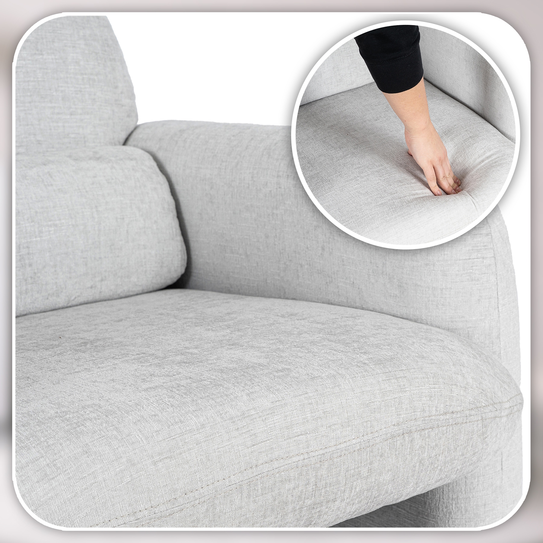 Fotel TOGO zachwyca swoją nowoczesną formą i subtelną elegancją. Piękne siedzisko i zaokrąglone oparcie sprawiają, że fotel przyciąga wzrok i dodaje wnętrzu wyjątkowego charakteru. Szara tkanina komponuje się z różnymi stylami – do nowoczesnego po minimalistyczne aranżacje.