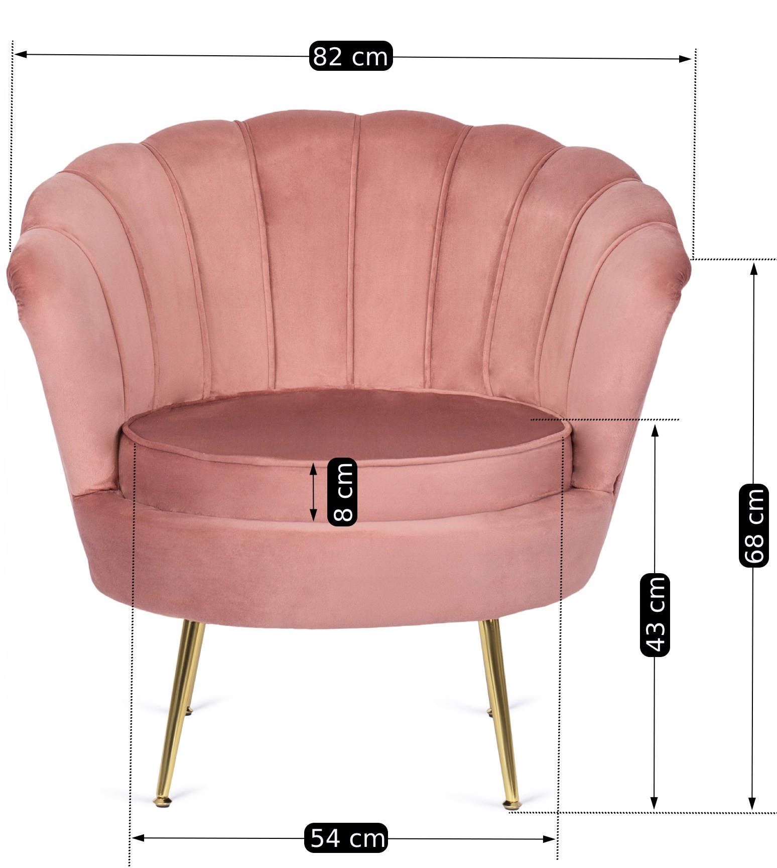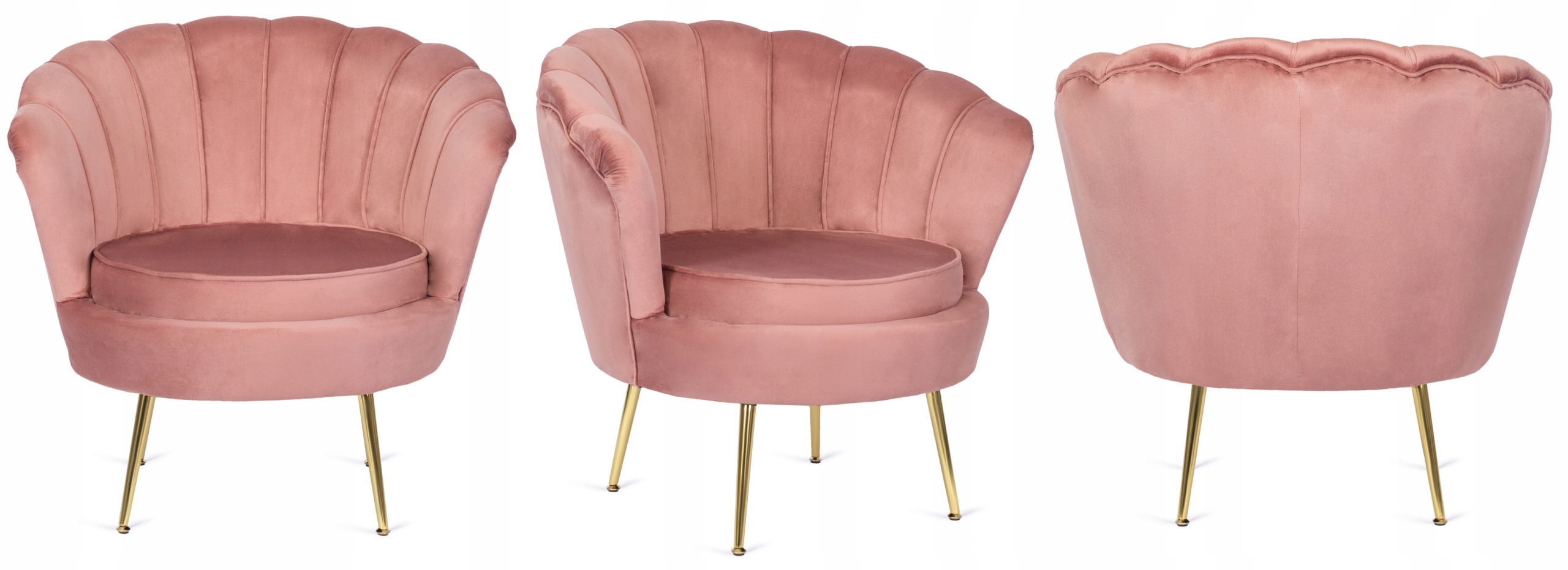 Fotel Wypoczynkowy Muszelka ANGEL Welurowy Różowy Złote Nogi Glamour ⭐⭐⭐⭐⭐