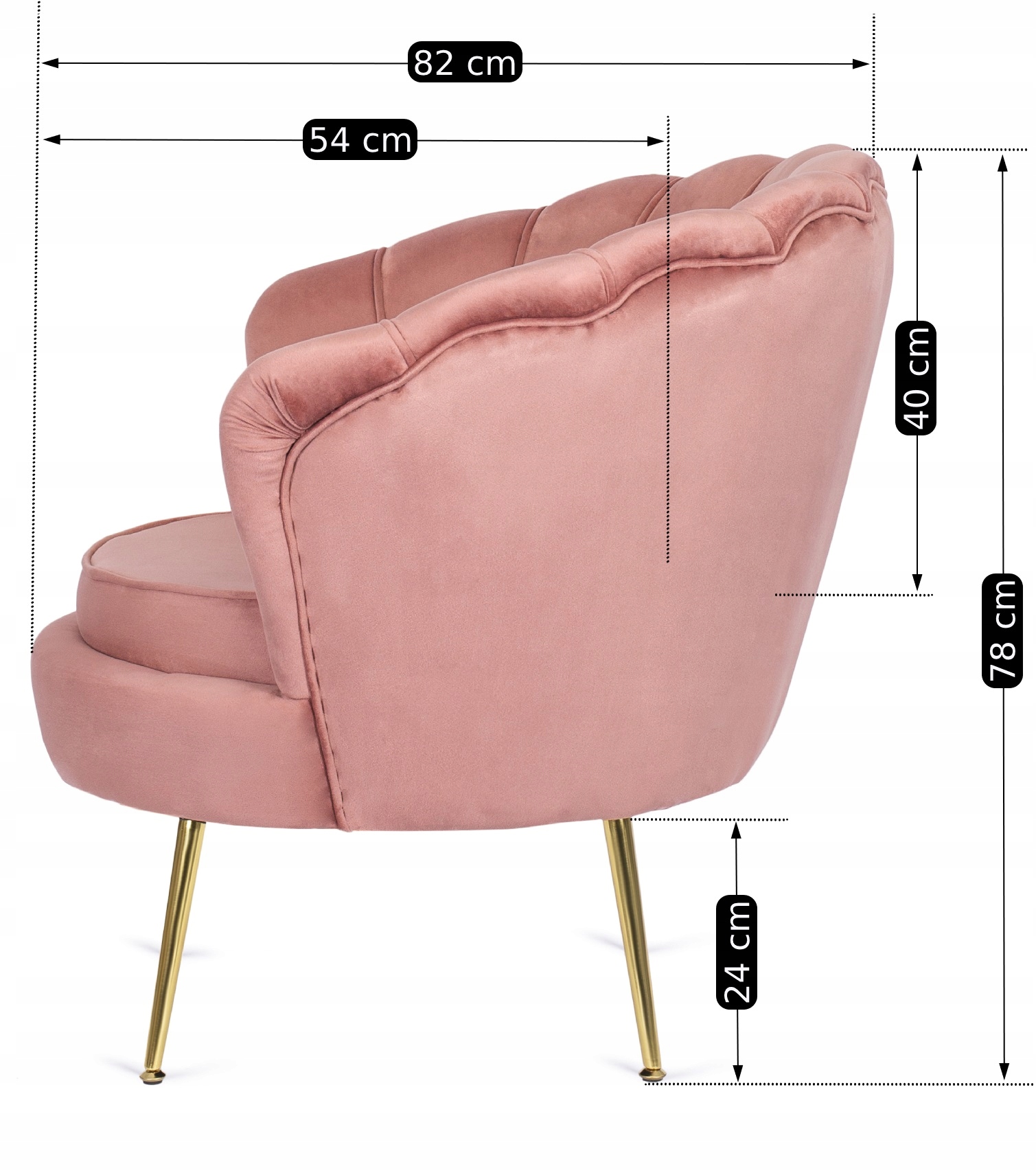 - Wypoczynkowy fotel muszelka ANGEL kolor różowy - złoty