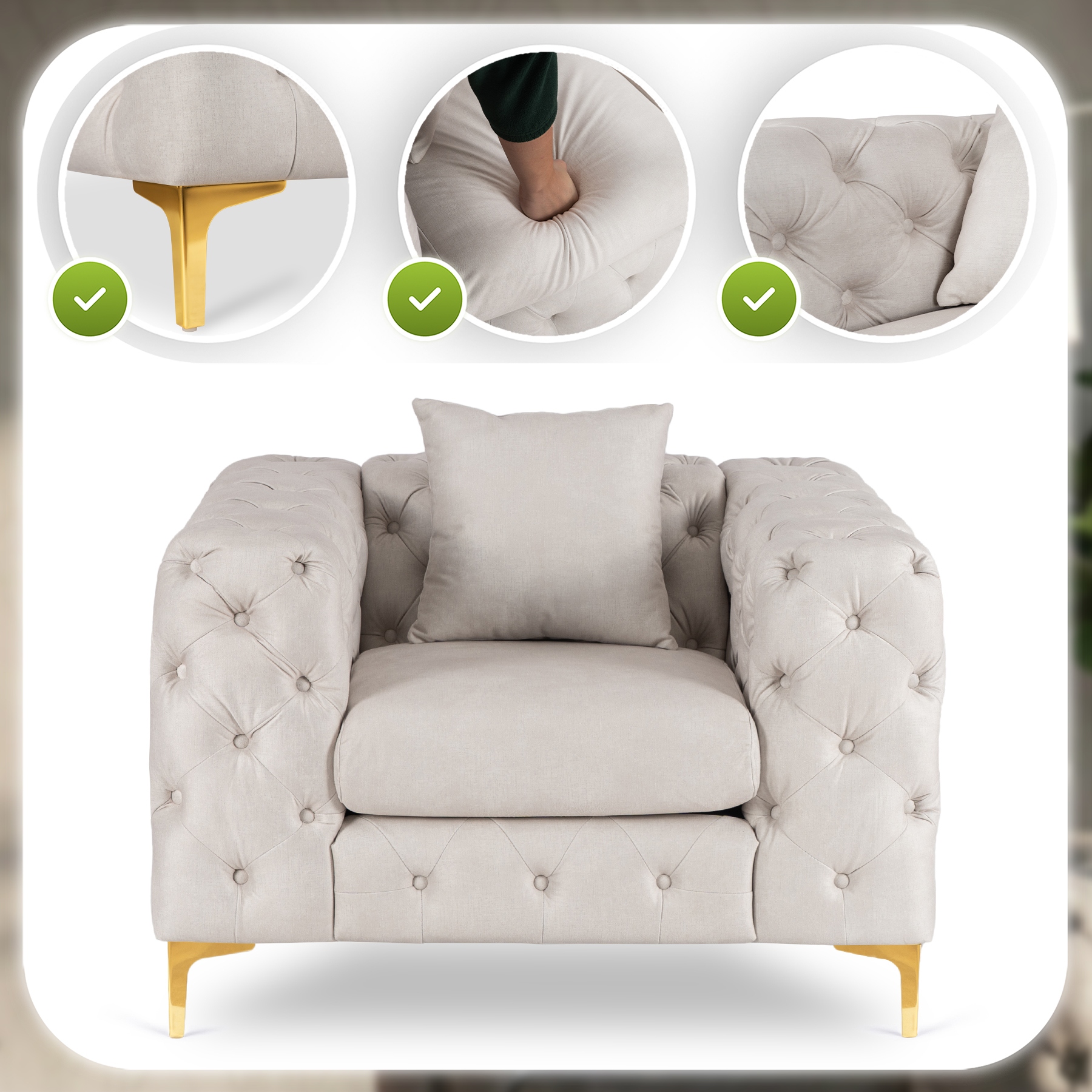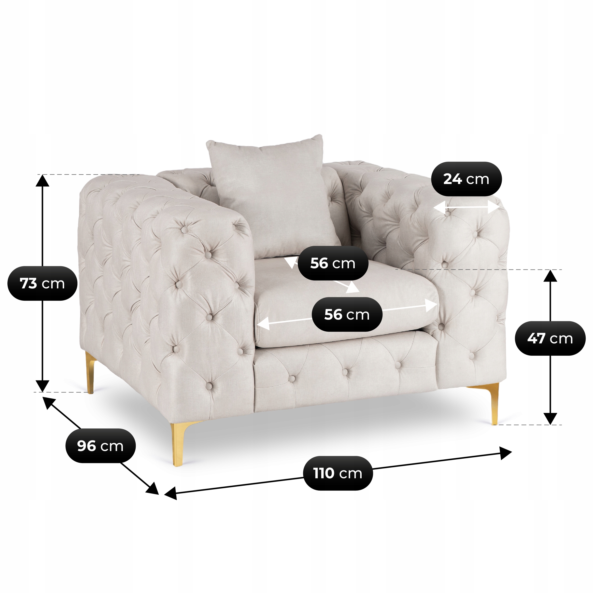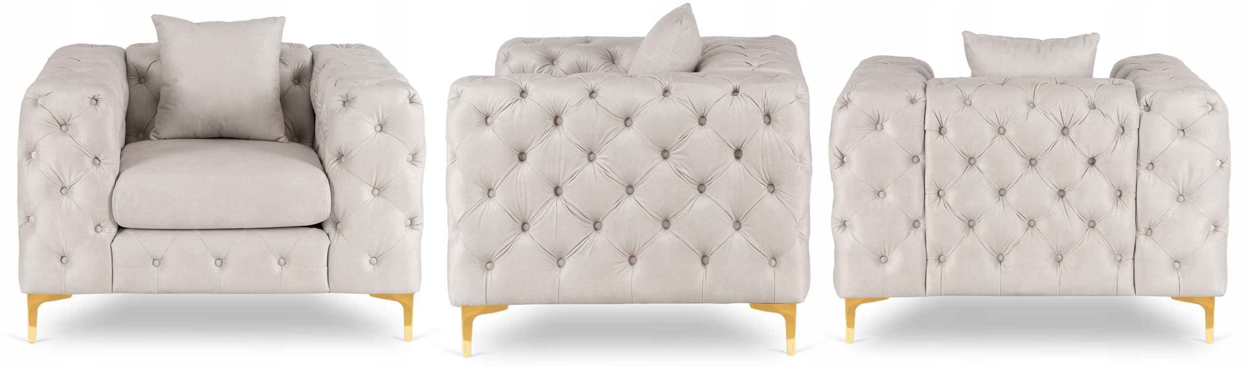Fotel SORRENTO 1S łączy w sobie luksusowy wygląd z najwyższym poziomem komfortu. Jego kremowy, subtelny odcień wprowadza do pomieszczenia spokój i ciepło, a głębokie pikowania nadają jej wyjątkowy charakter. To mebel, który zachwyca od pierwszego spojrzenia i zaprasza do relaksu.