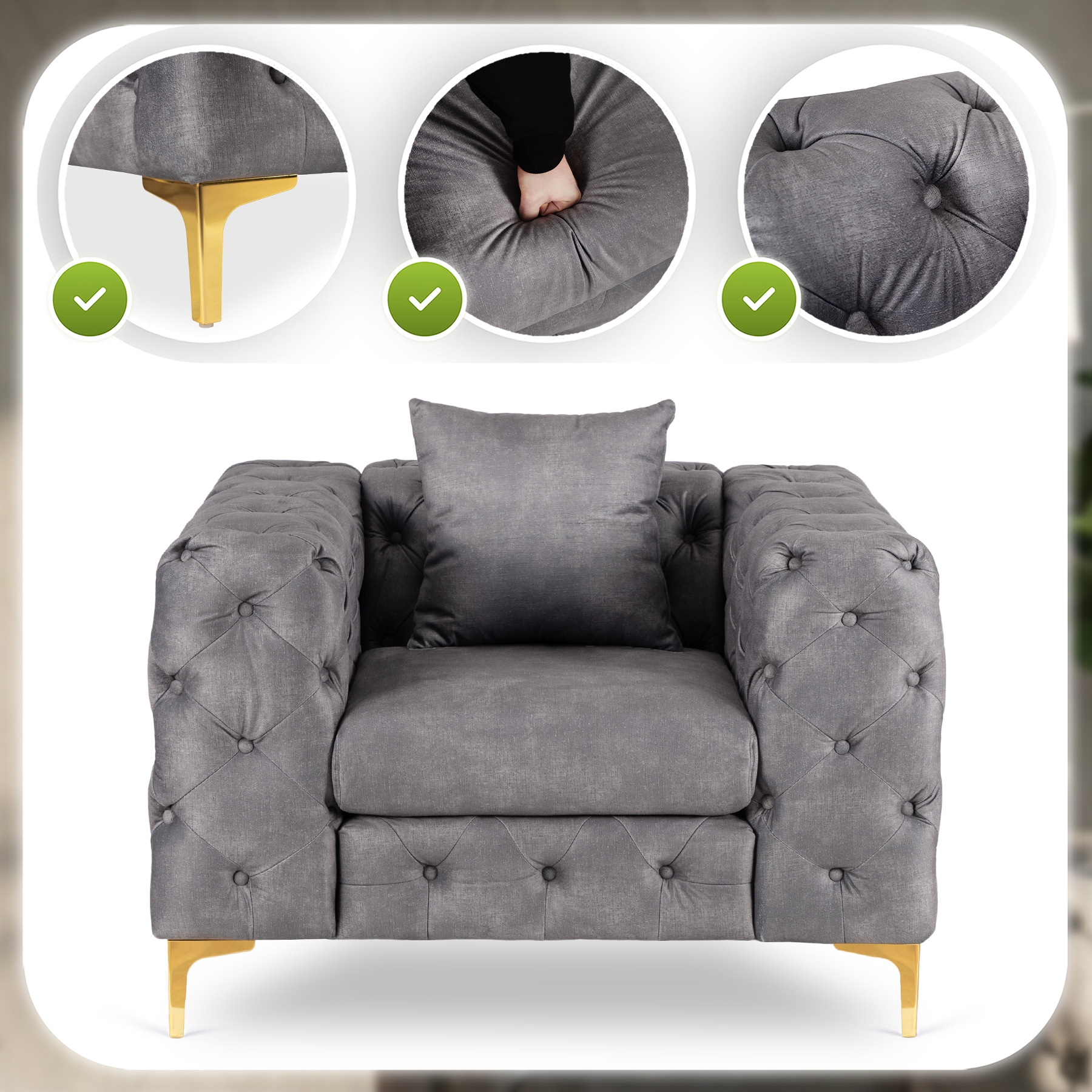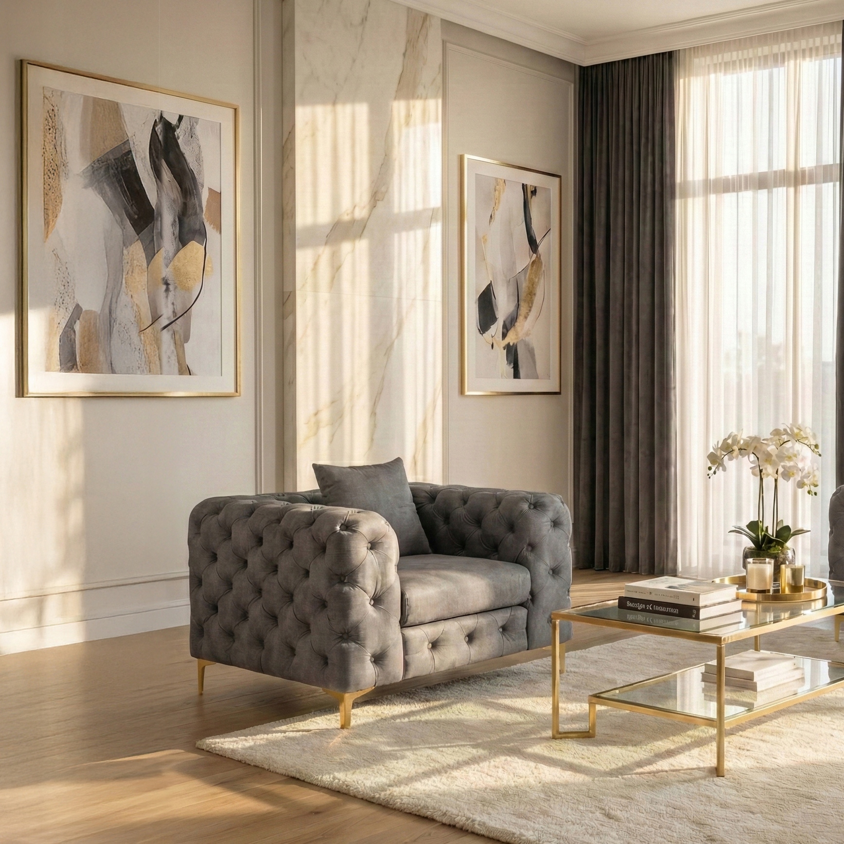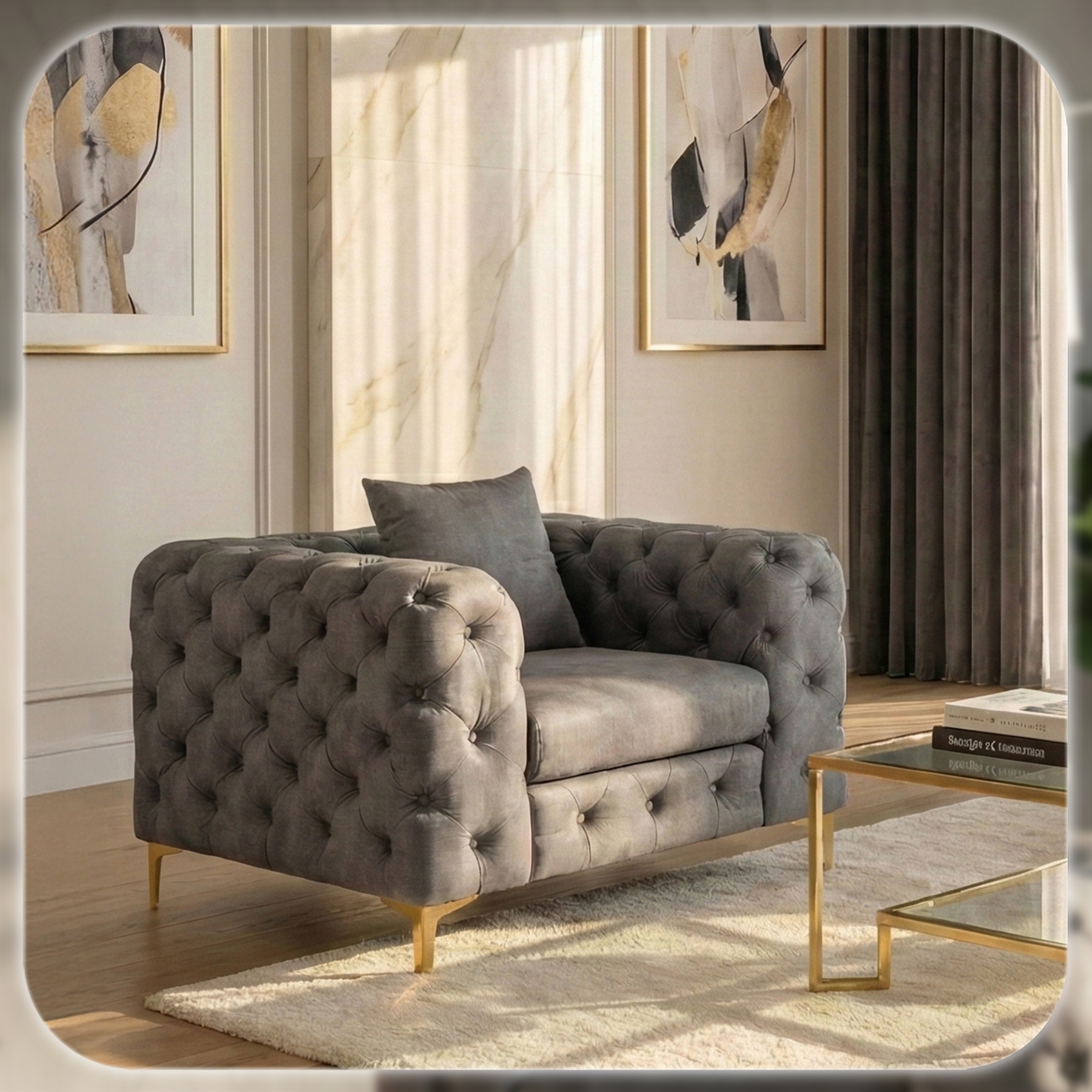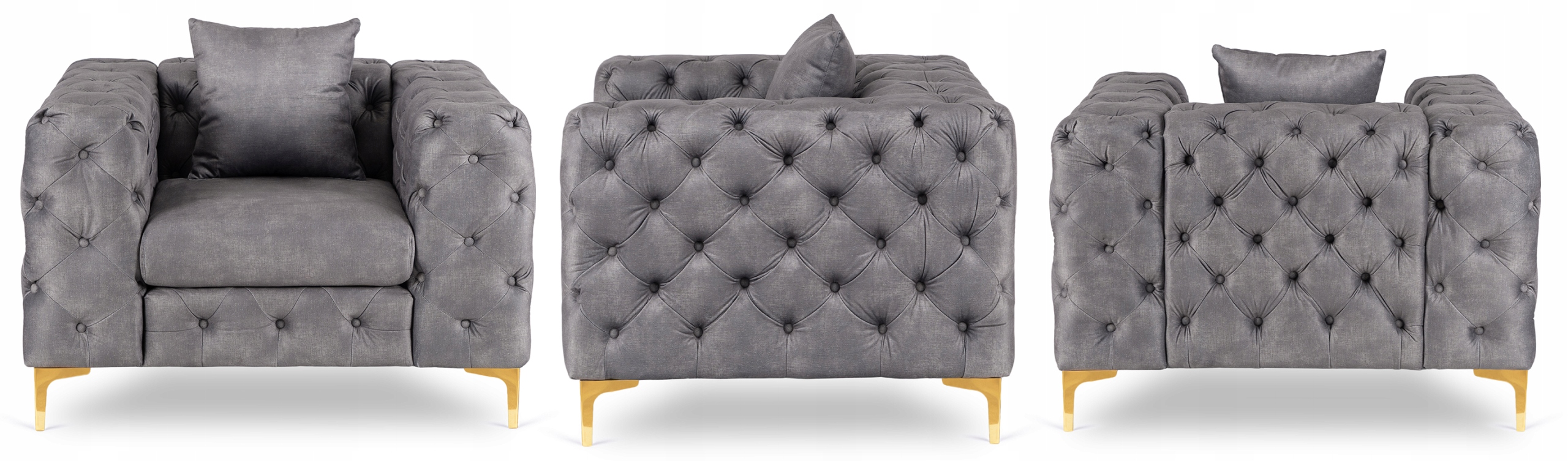 Fotel SORRENTO 1S łączy w sobie luksusowy wygląd z najwyższym poziomem komfortu. Jego szary, subtelny odcień wprowadza do pomieszczenia spokój i ciepło, a głębokie pikowania nadają jej wyjątkowy charakter. To mebel, który zachwyca od pierwszego spojrzenia i zaprasza do relaksu.