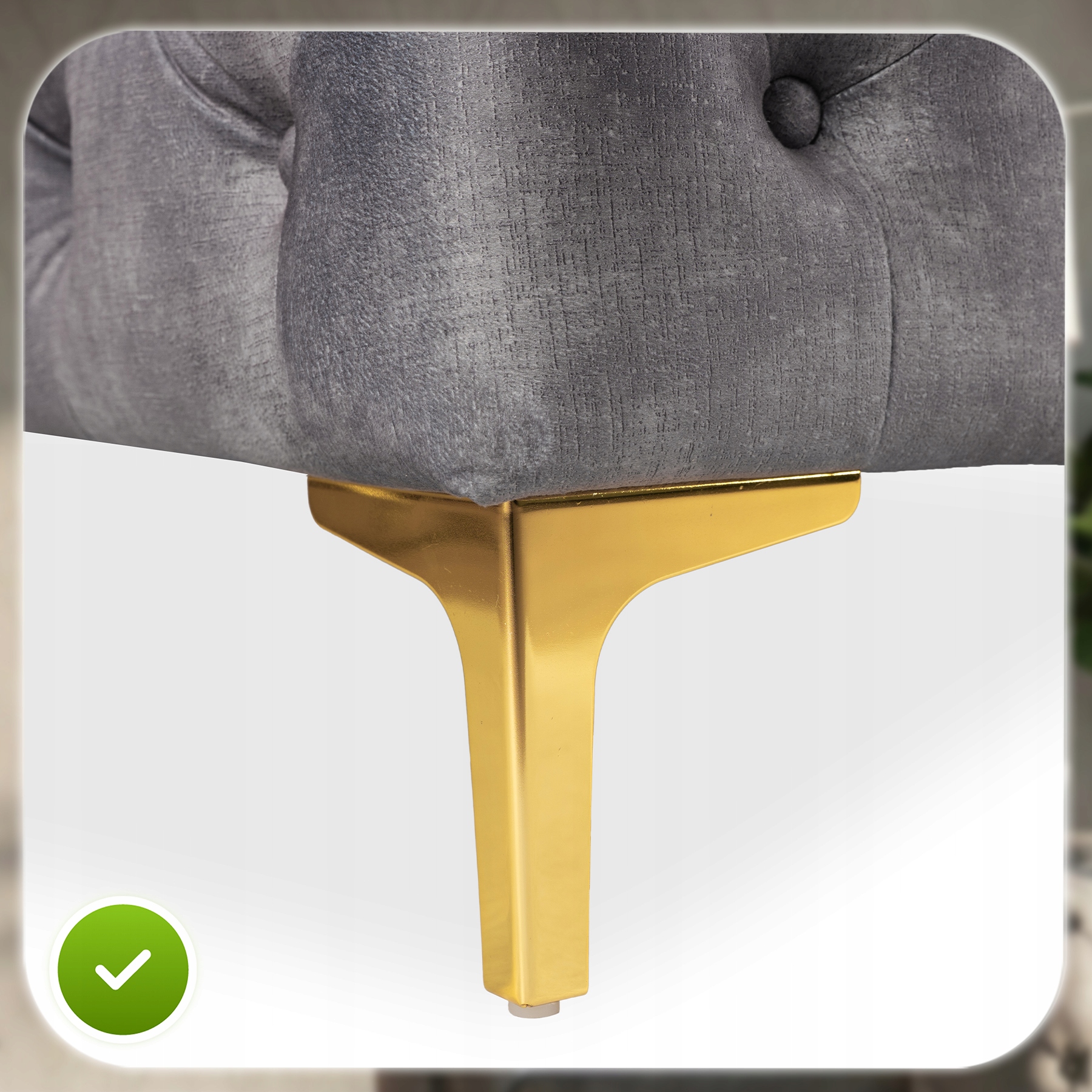 Fotel SORRENTO 1S został osadzony na wysokich nóżkach, które gwarantują pełną stabilność i trwałość konstrukcji. Ich złoty kolor tworzy elegancki kontrast z jasną tkaniną, dodając kanapie wyrafinowanego charakteru.