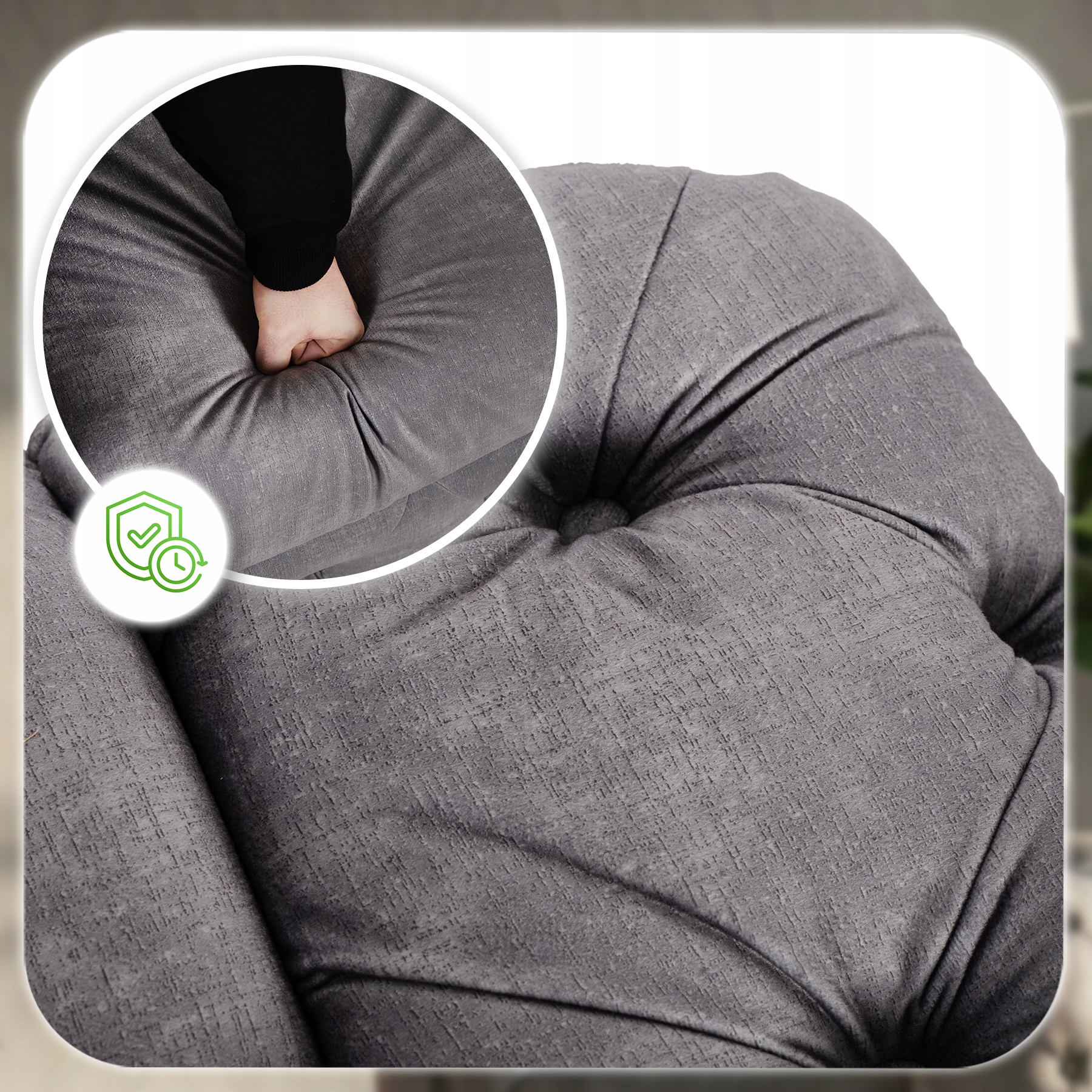 - Elegancki wygląd – delikatny połysk tkaniny nadaje fotelowi nowoczesny i stylowy charakter, idealnie pasujący do współczesnych wnętrz.