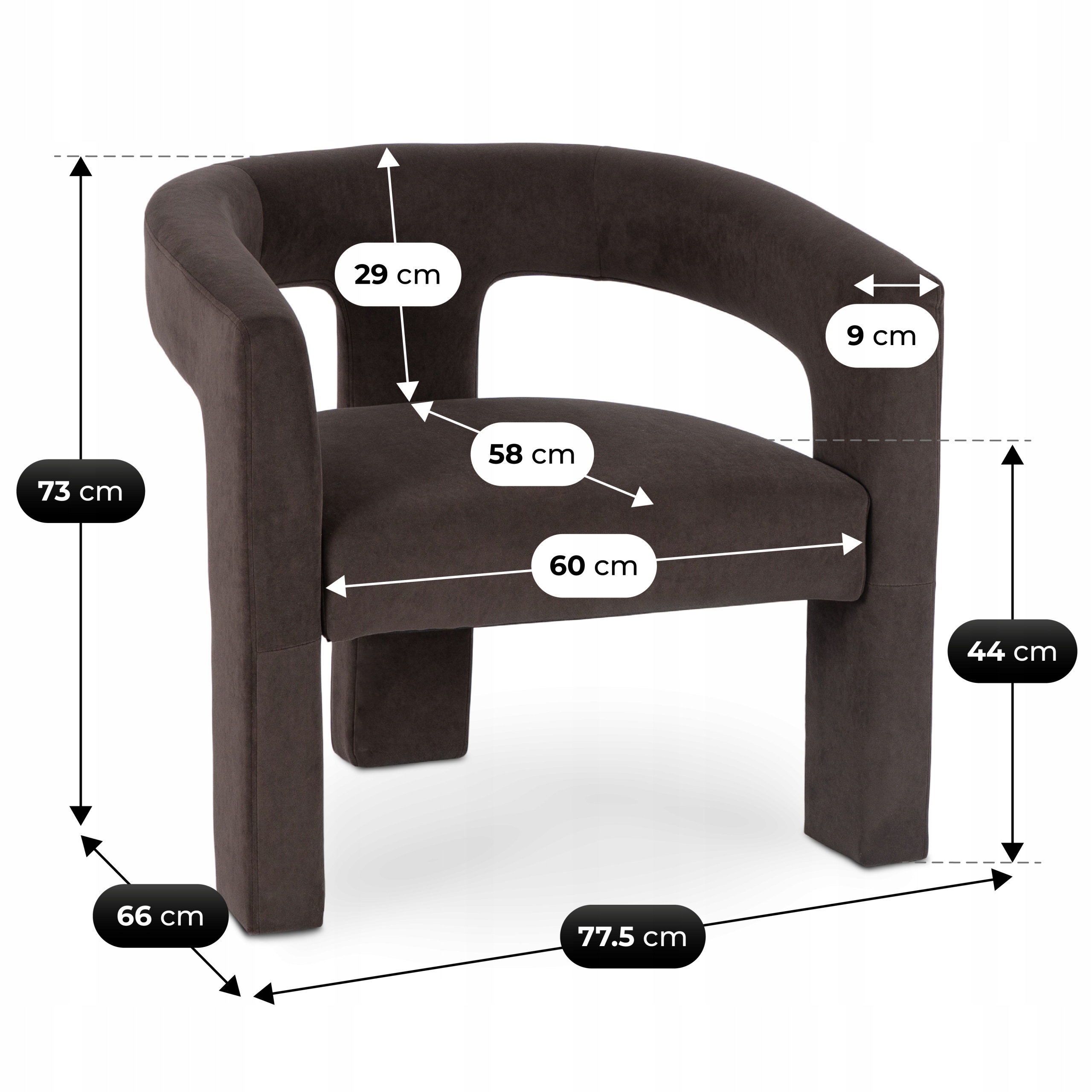 - Wysokość fotela: 73 cm