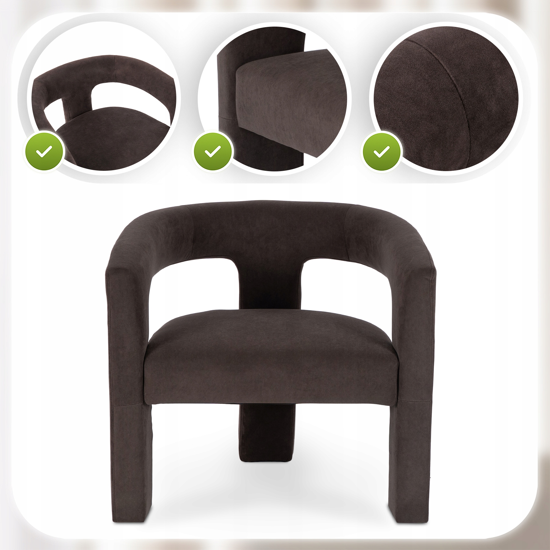 Fotel LILLE zachwyca swoją nowoczesną formą i subtelną elegancją. Piękne siedzisko i zaokrąglone oparcie sprawiają, że fotel przyciąga wzrok i dodaje wnętrzu wyjątkowego charakteru. Brązowa tkanina komponuje się z różnymi stylami – do nowoczesnego po minimalistyczne aranżacje.