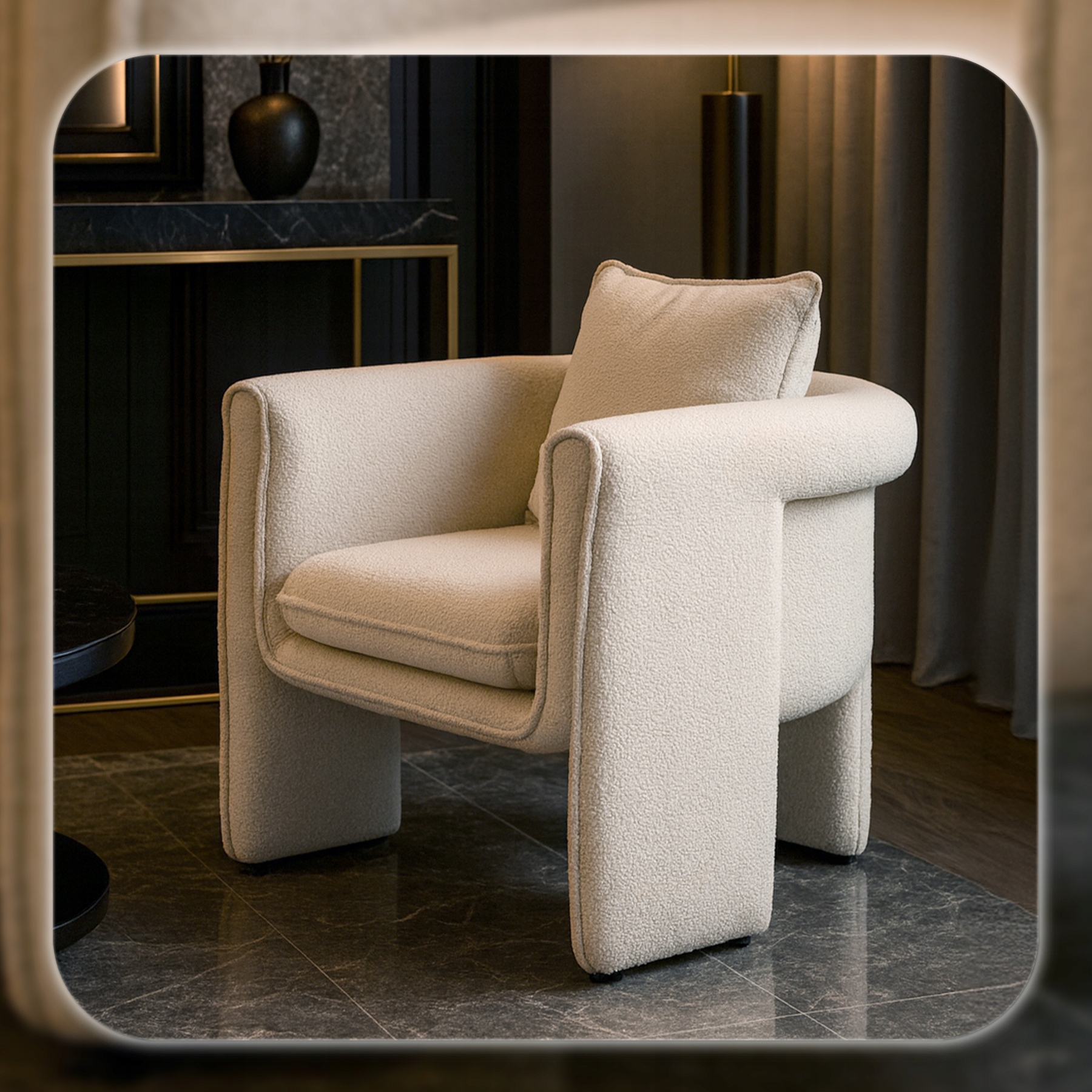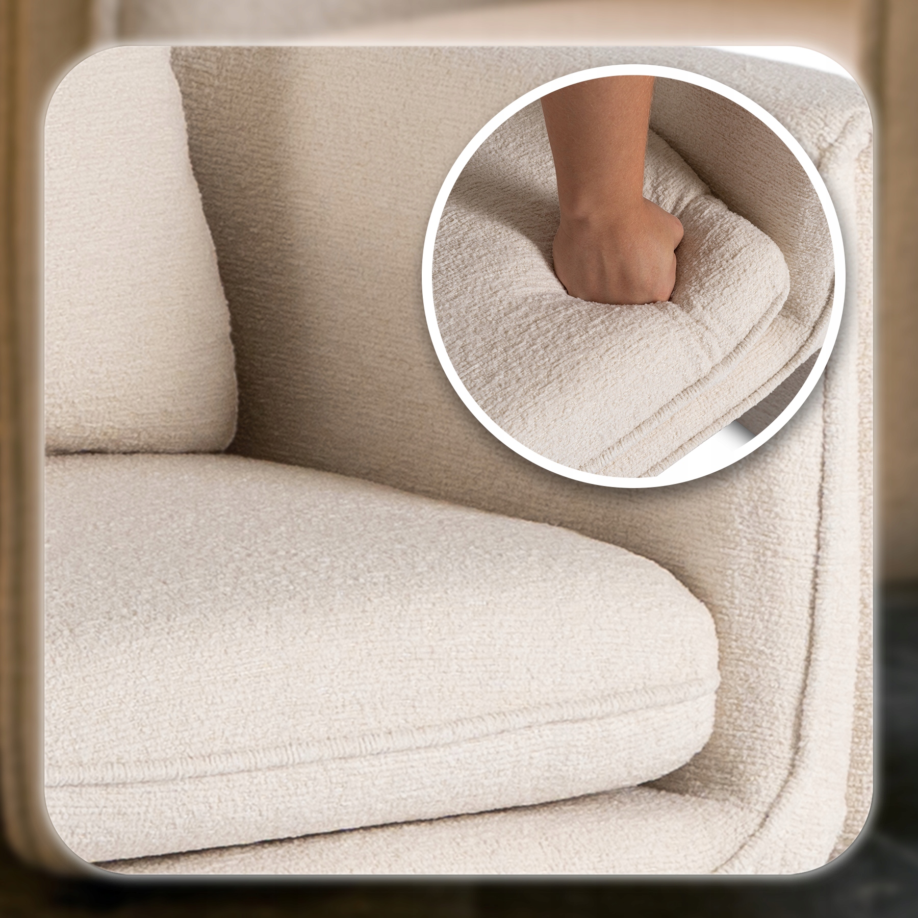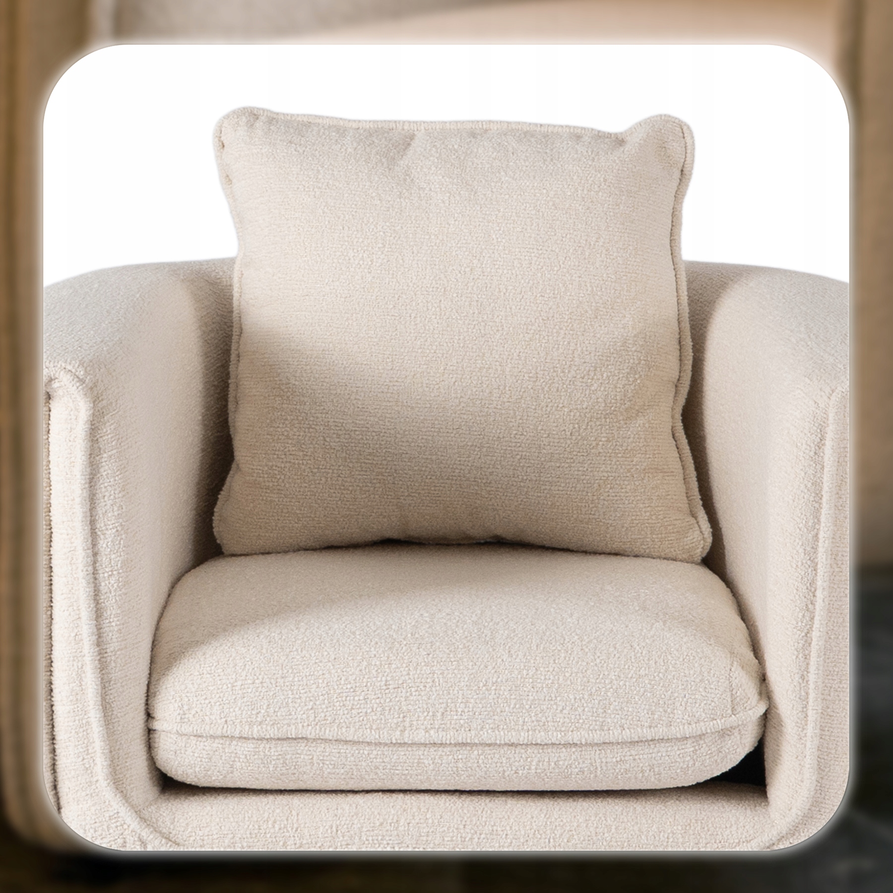 Obszerne, miękkie siedzisko o wspierającej strukturze gwarantuje niezrównany komfort użytkowania. Dzięki wysokiej jakości wypełnieniu dopasowuje się do ciała, odciąża plecy i pozwala na wygodne siedzenie przez długi czas – zarówno podczas spotkań przy kawie, jak i chwil relaksu w ciągu dnia. Miękkie siedzisko sprawia, że każda chwila staje się wyjątkowo komfortowa.