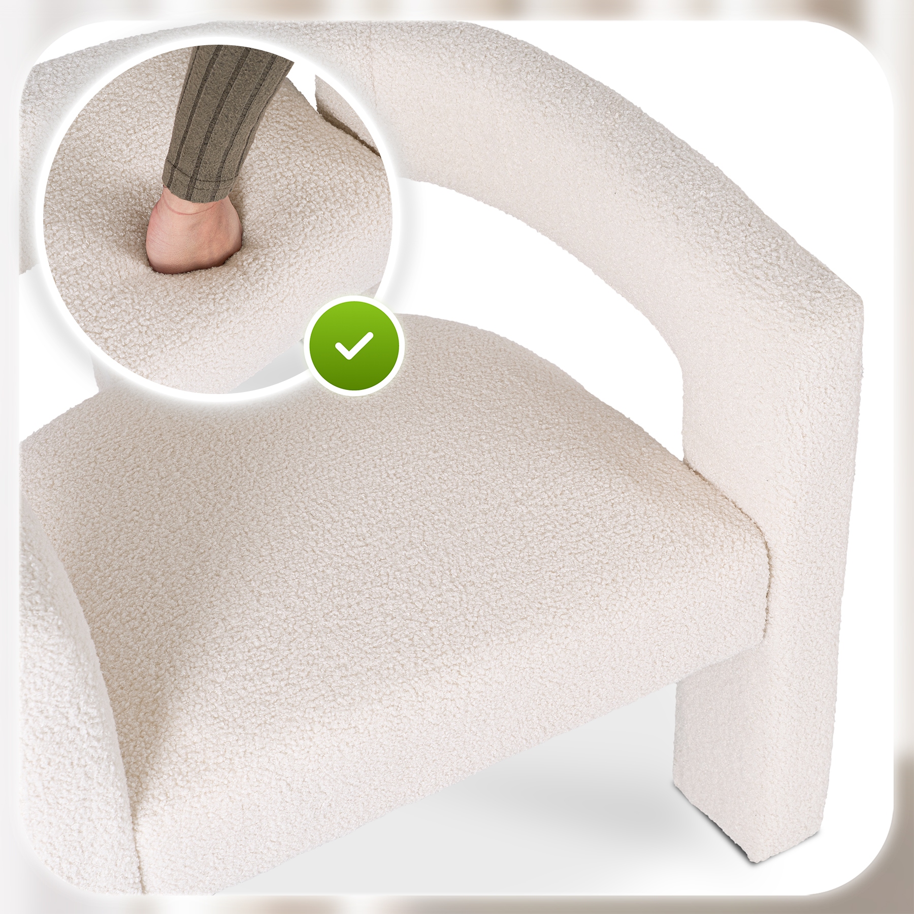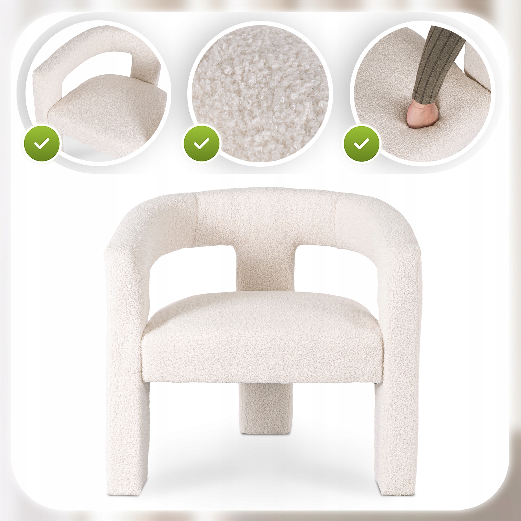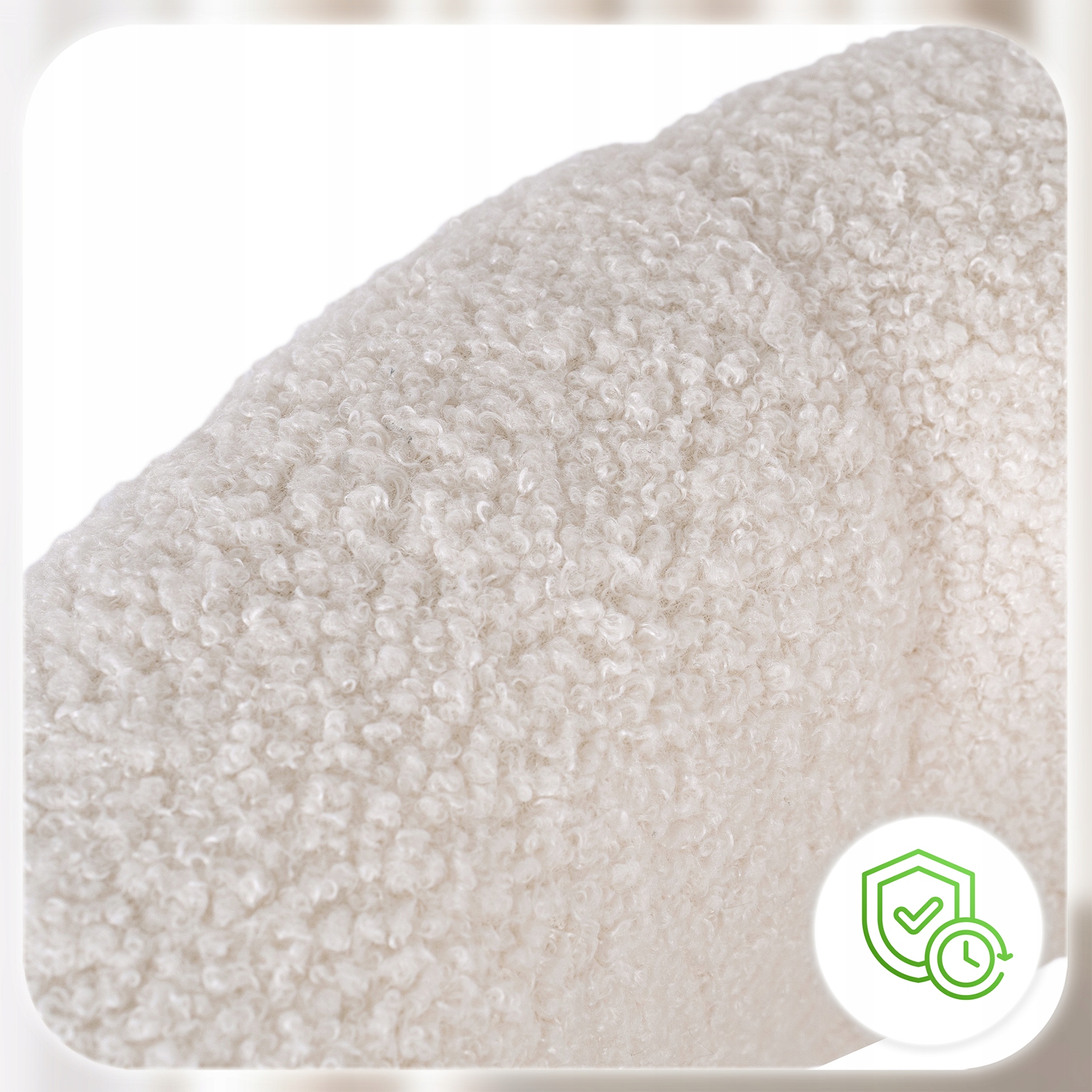 Fotel został obity wyjątkowo przyjemną w dotyku tkaniną typu teddy, która nie tylko podkreśla elegancki charakter mebla, ale także dodaje mu ciepła i przytulności. Jej miękka faktura sprawia, że codzienny odpoczynek staje się jeszcze bardziej komfortowy, a wnętrze zyskuje stylowy i nowoczesny wygląd.