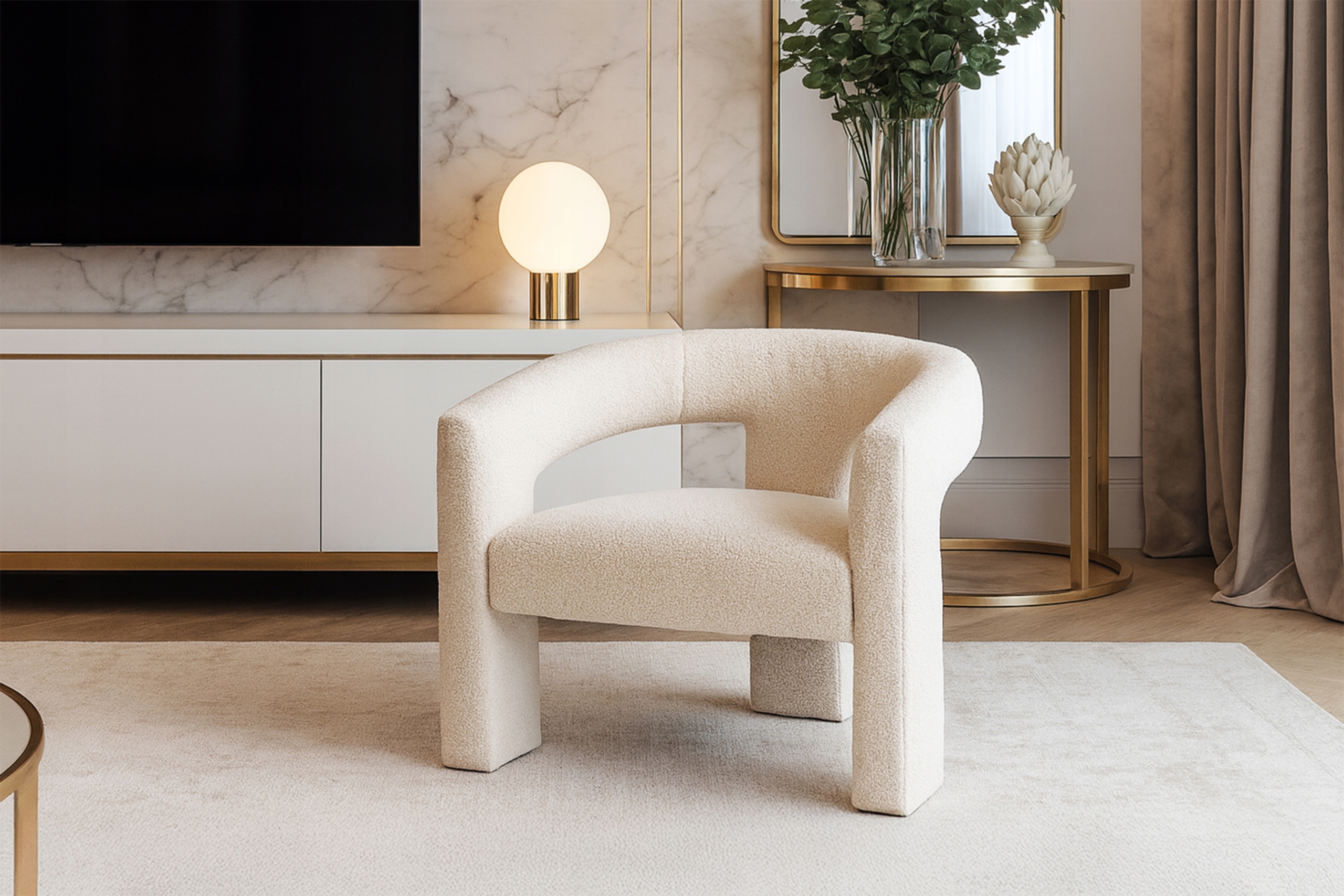 Fotel LILE zachwyca swoją nowoczesną formą i subtelną elegancją. Piękne siedzisko i zaokrąglone oparcie sprawiają, że fotel przyciąga wzrok i dodaje wnętrzu wyjątkowego charakteru. Kremowa tkanina komponuje się z różnymi stylami – do nowoczesnego po minimalistyczne aranżacje.