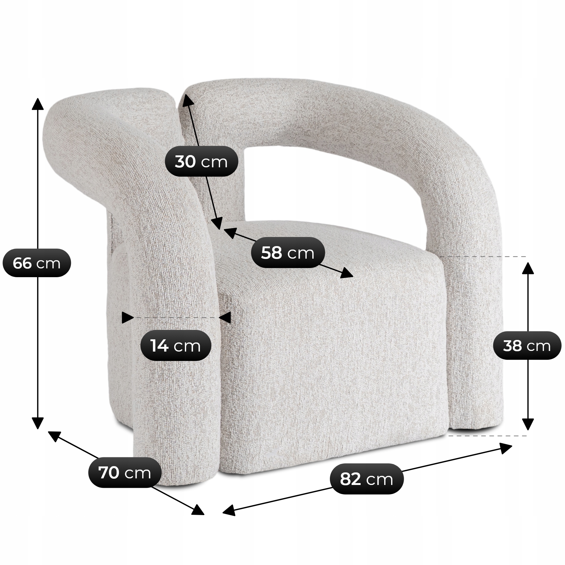 - Wysokość oparcia: 30 cm