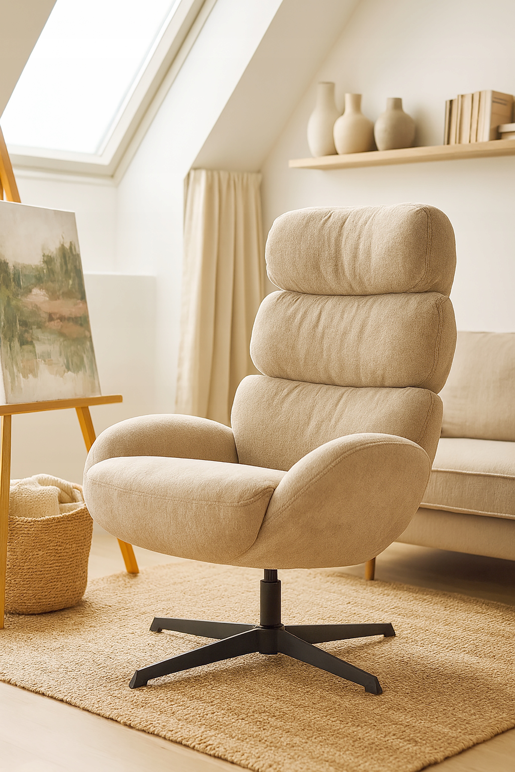 MATERIAŁOWY FOTEL OBROTOWY WYPOCZYNKOWY