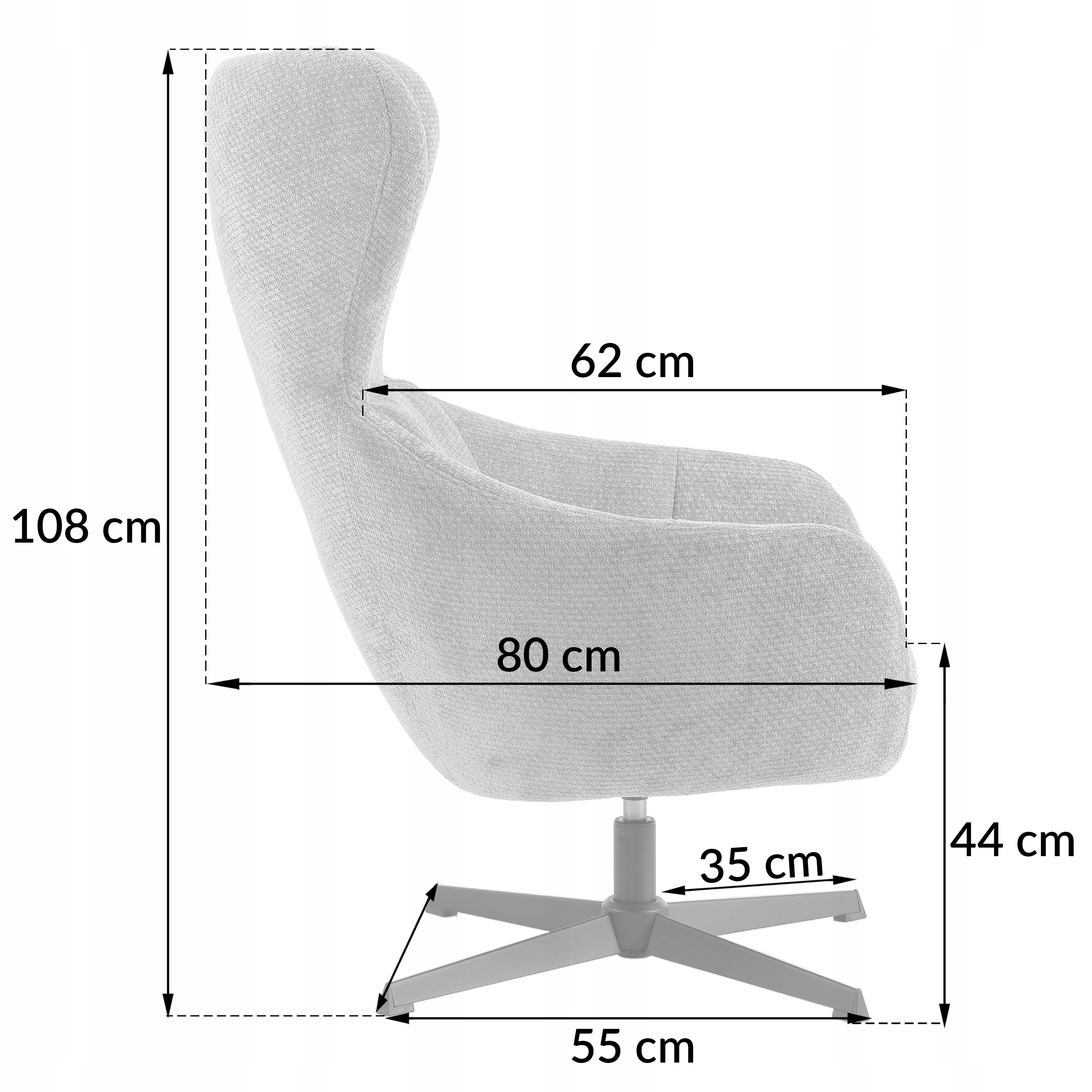 - Wysokość do siedziska: 44 cm
