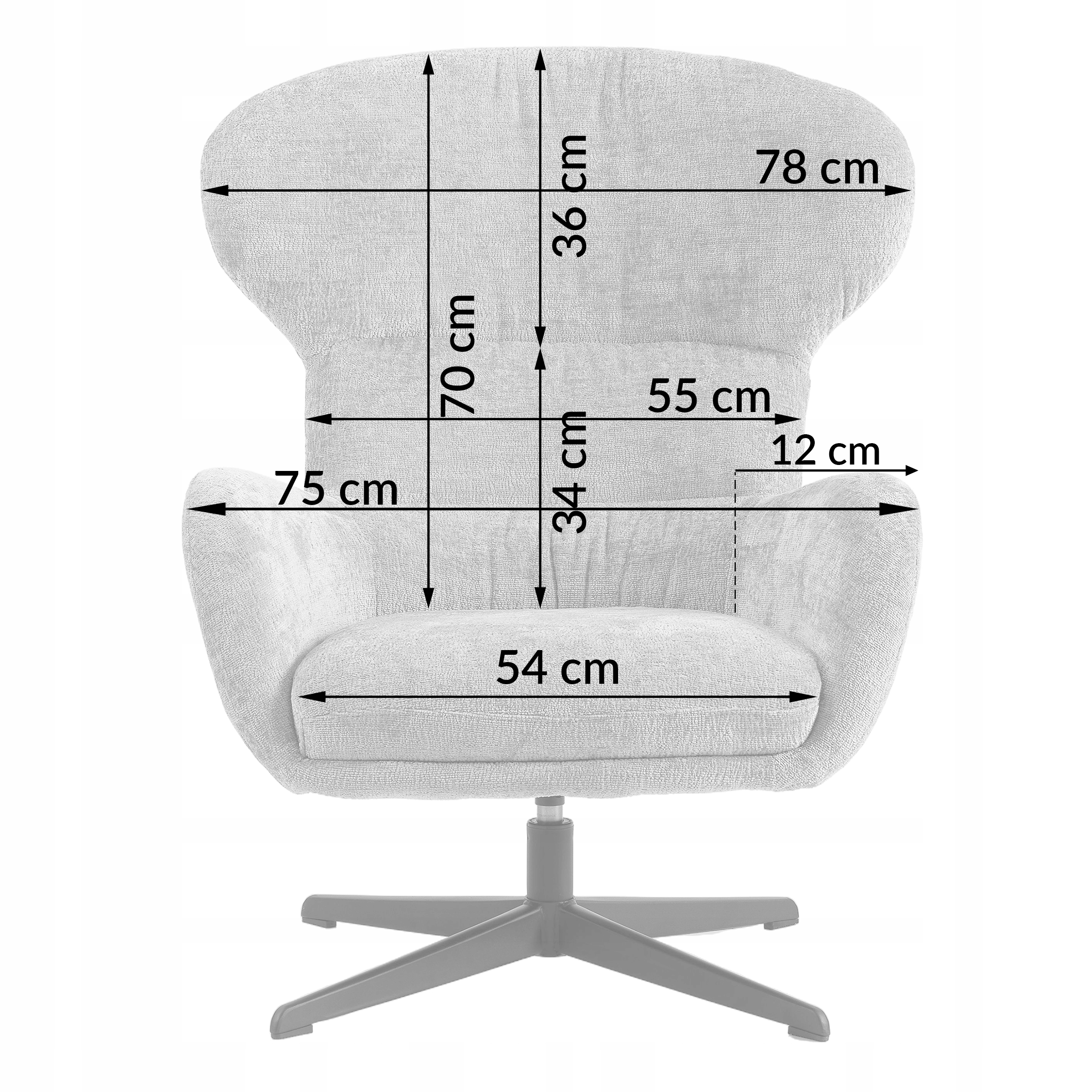- Wysokość oparcia: 70 cm