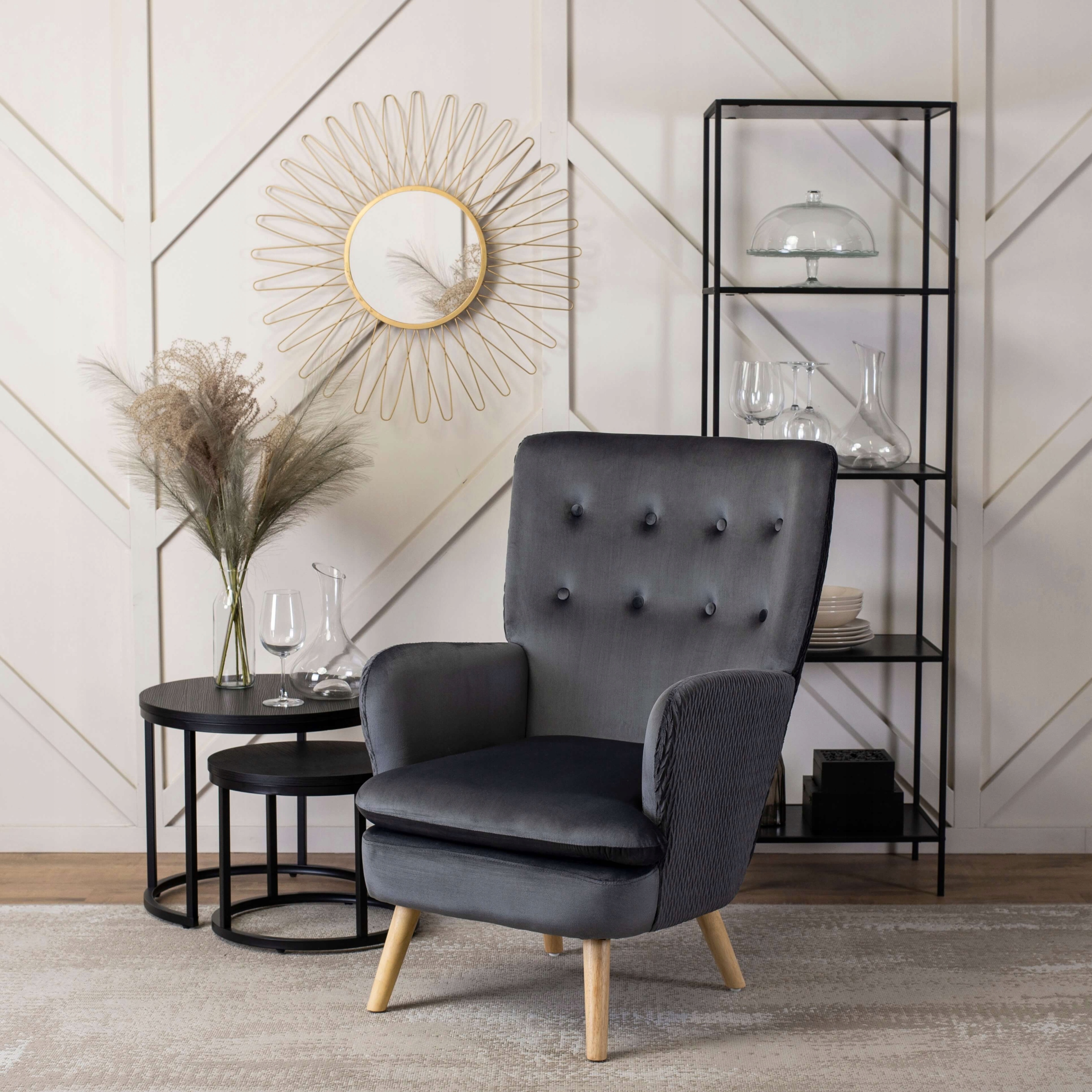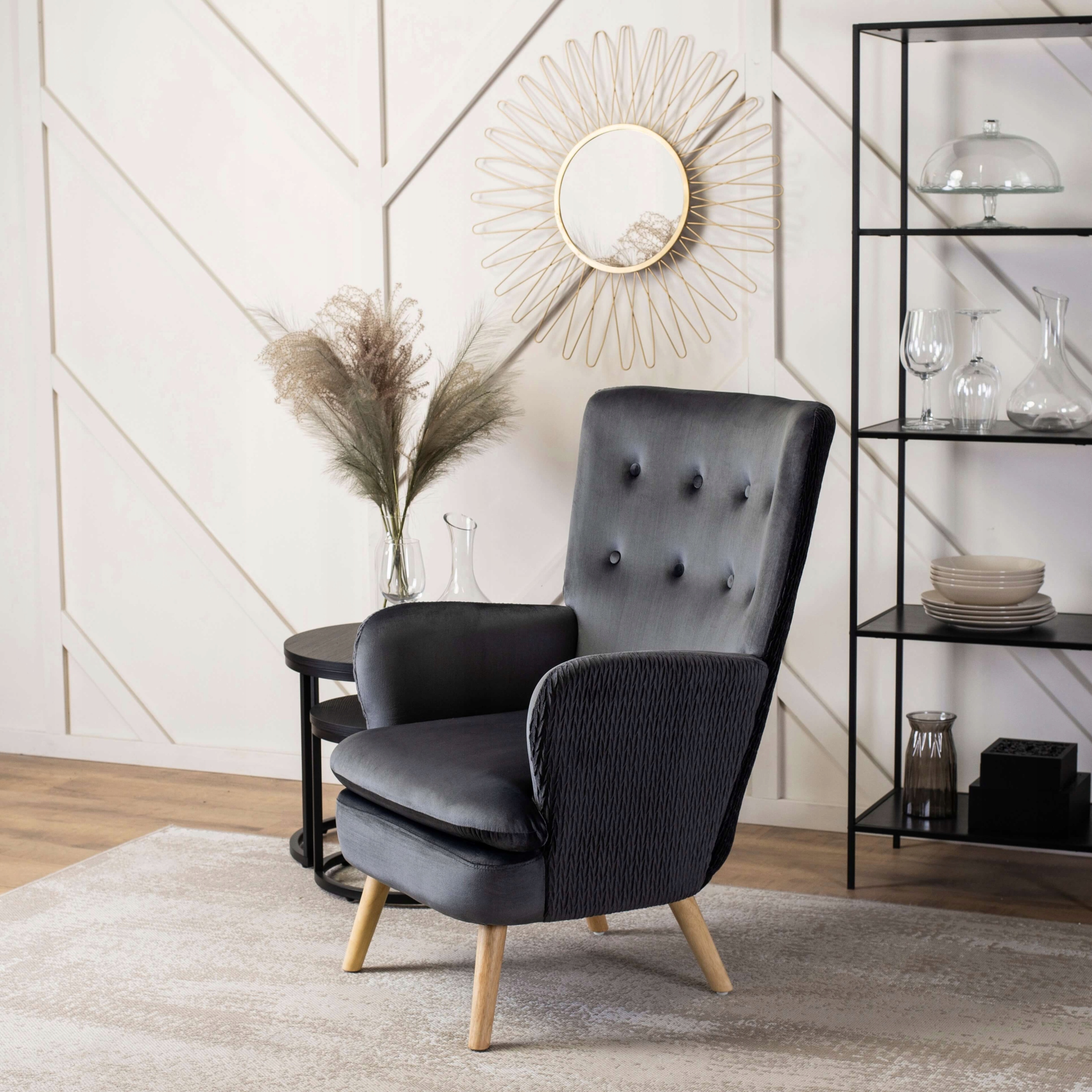 Fotel Wypoczynkowy Welurowy Uszak Do Salonu Loft Tapicerowany Szary SANTOS ⭐⭐⭐⭐⭐