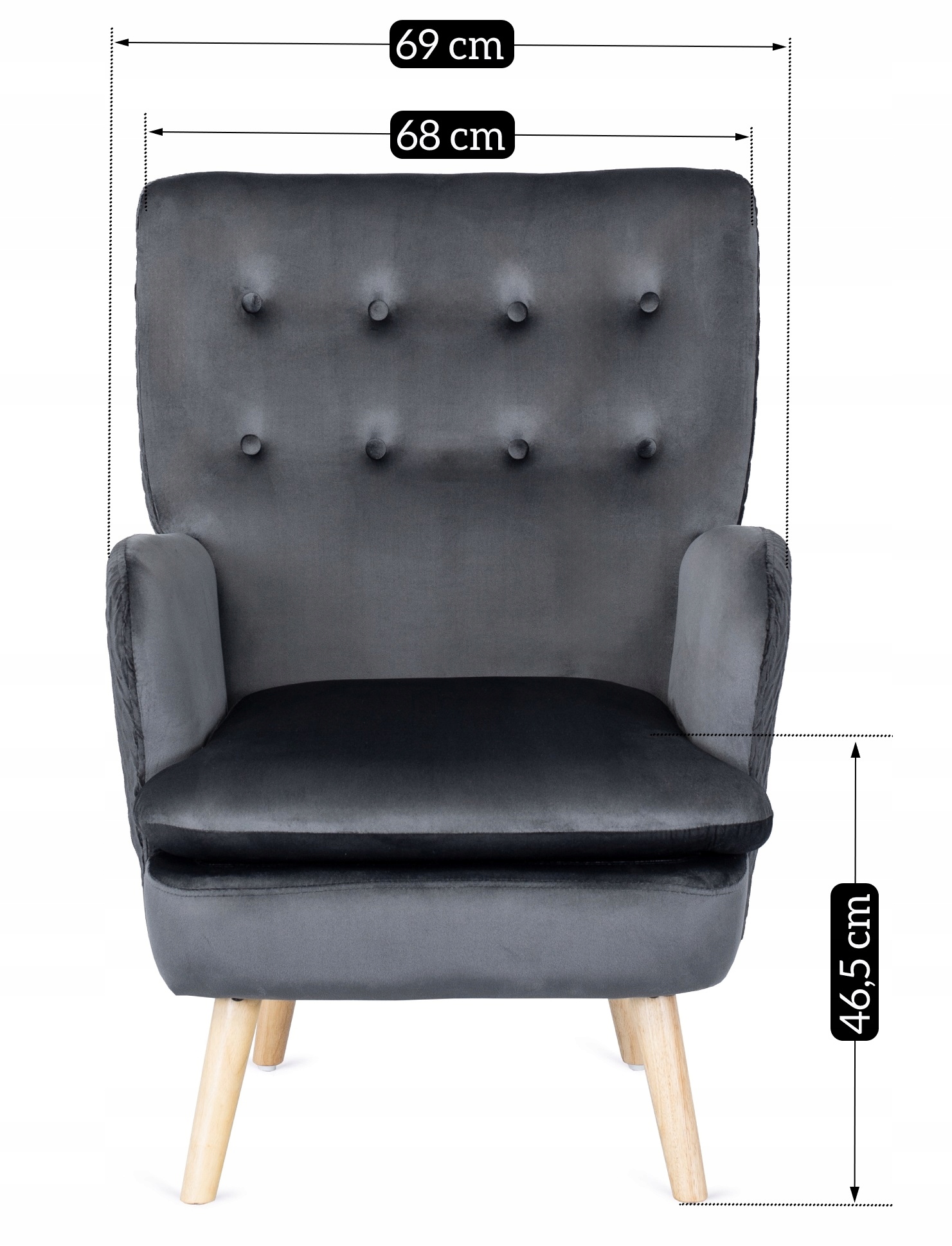 - Szerokość fotela: 69 cm