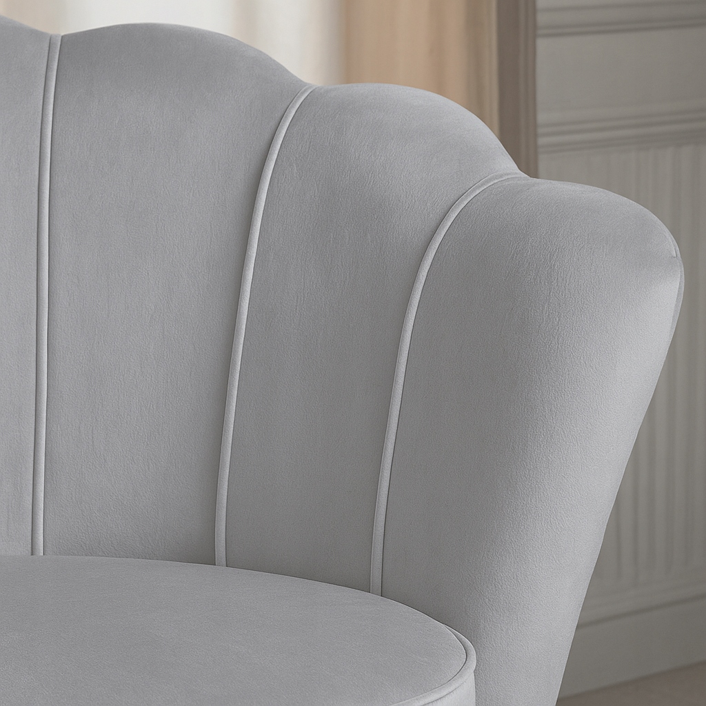 - Efektowne oparcie w stylu muszelka – falisty kształt oparcia i estetyczne zdobienia materiału tworzą modny, schludny wygląd i dodają stylu.
