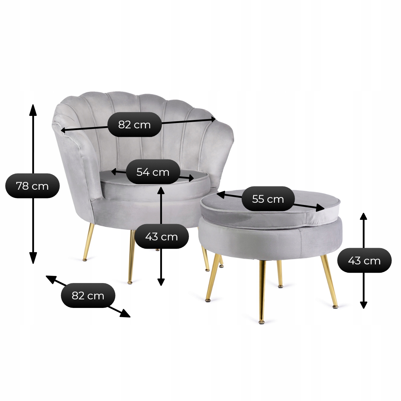 - Głębokość fotela: 82 cm
