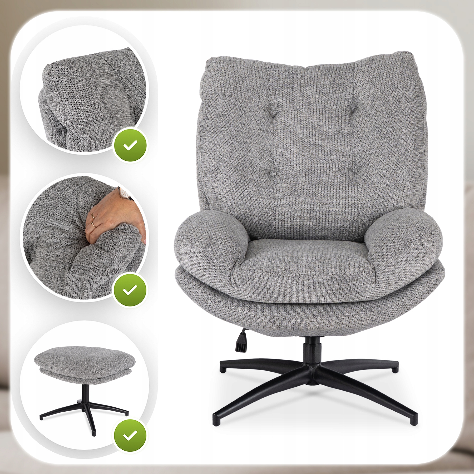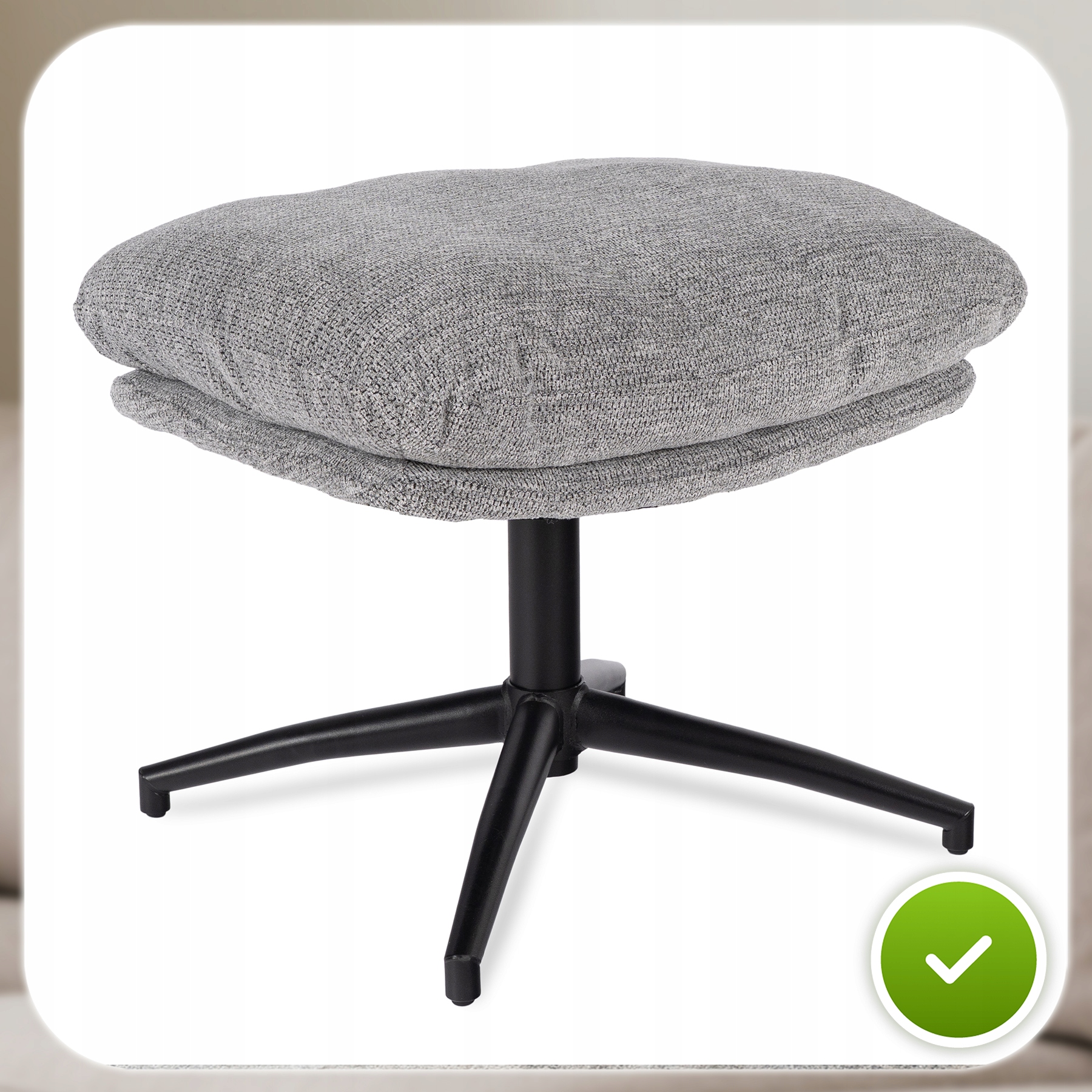 ✨ Fotel Z Podnóżkiem Obrotowy Wypoczynkowy Tapicerowany Szary FREMONT