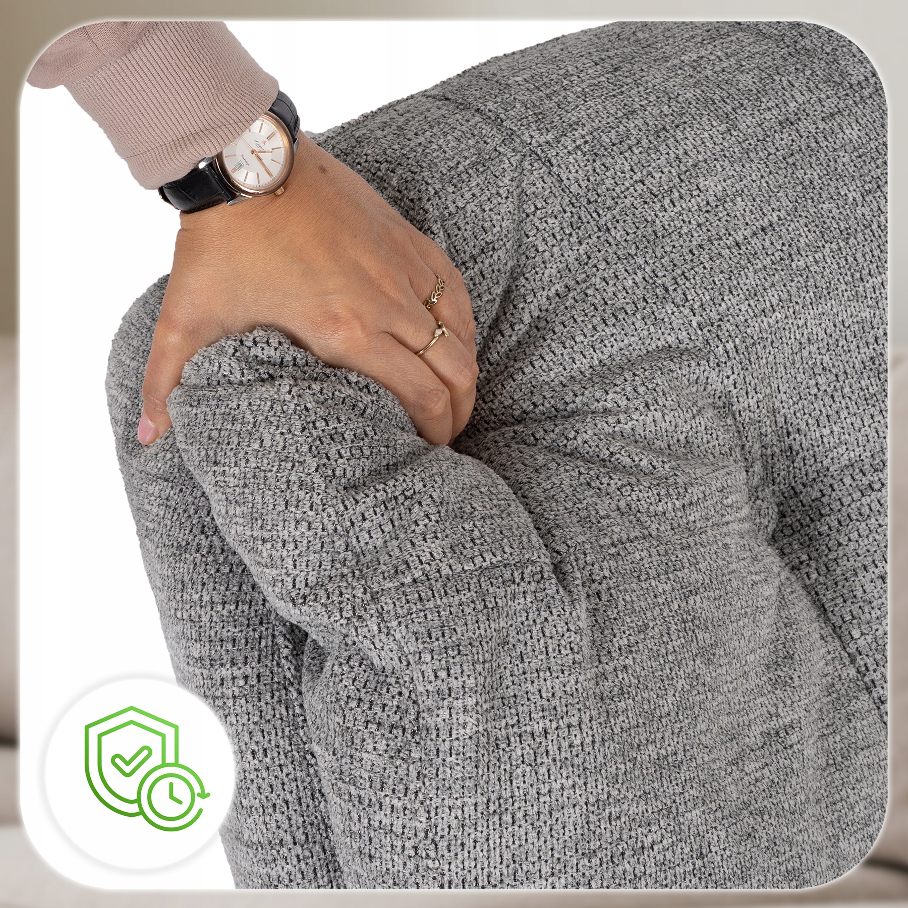 - Wytrzymałość na lata – odporna na mechacenie, przetarcia i intensywne użytkowanie. Świetnie sprawdzi się w domu z dziećmi.