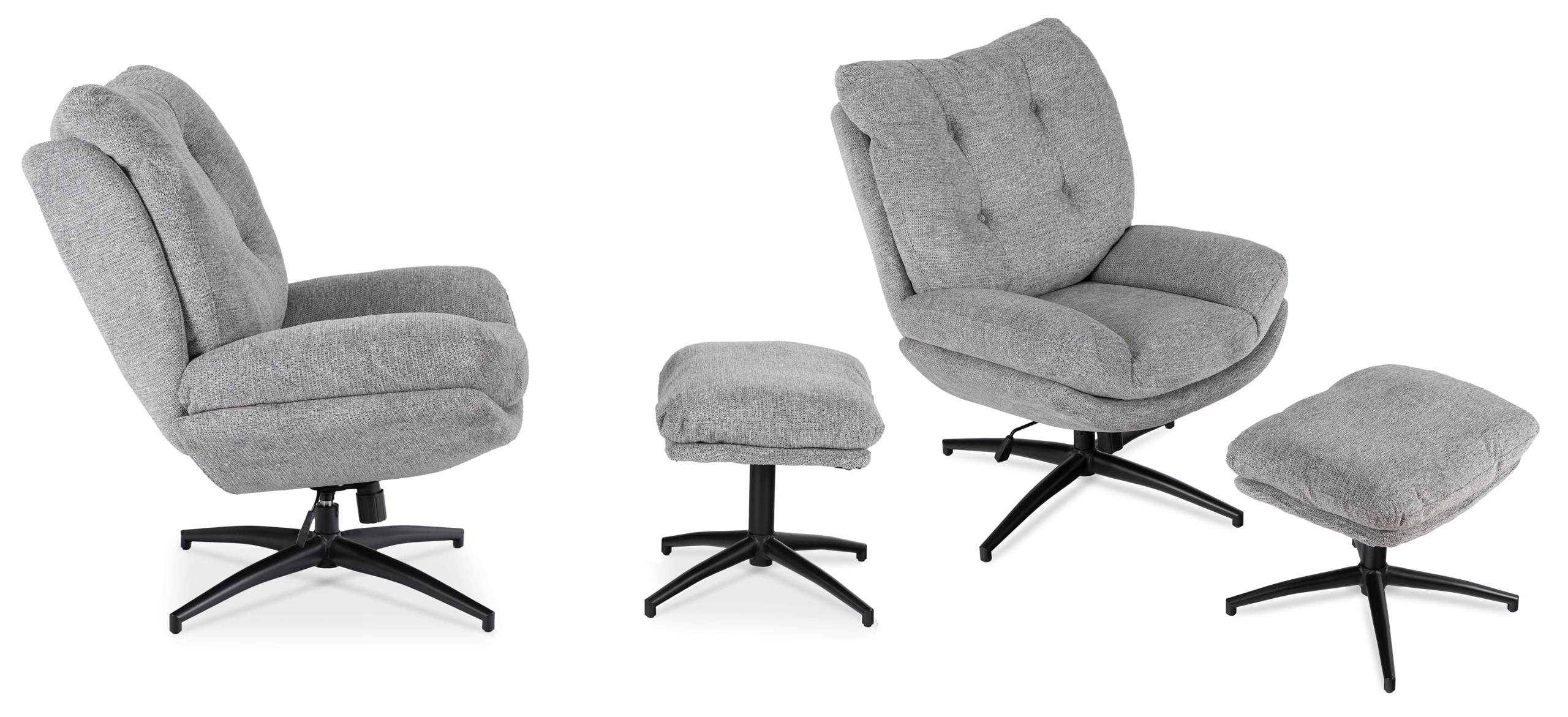 W zestawie z fotelem FREMONT znajduje się praktyczny podnóżek, który podnosi komfort codziennego wypoczynku. Przyjemne w dotyku siedzisko podnóżka pozwala wygodnie ułożyć nogi i w pełni się odprężyć po długim dniu. Dzięki stabilnej konstrukcji i eleganckiemu wykończeniu tkaniną, podnóżek doskonale komponuje się z fotelem, tworząc harmonijny i stylowy zestaw.