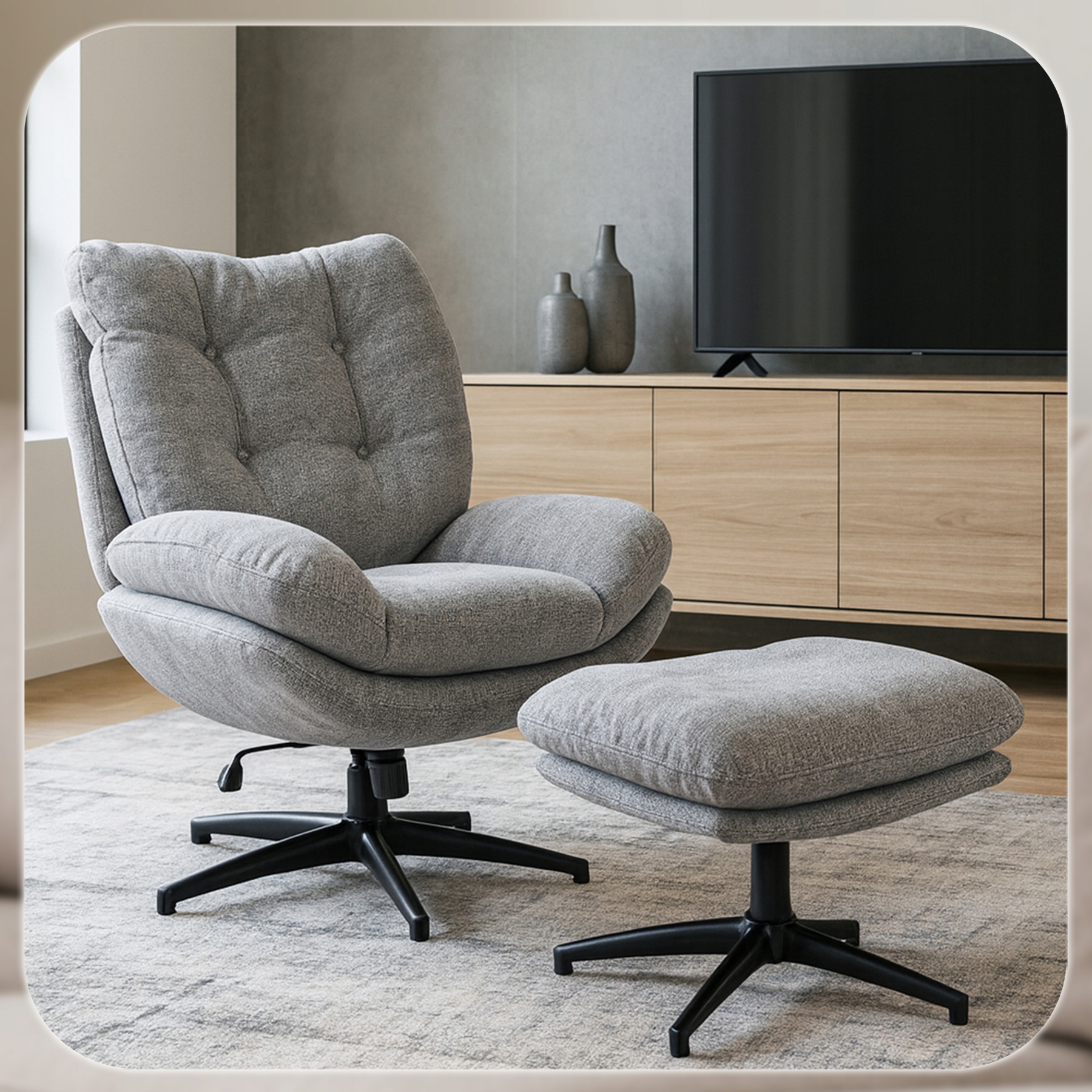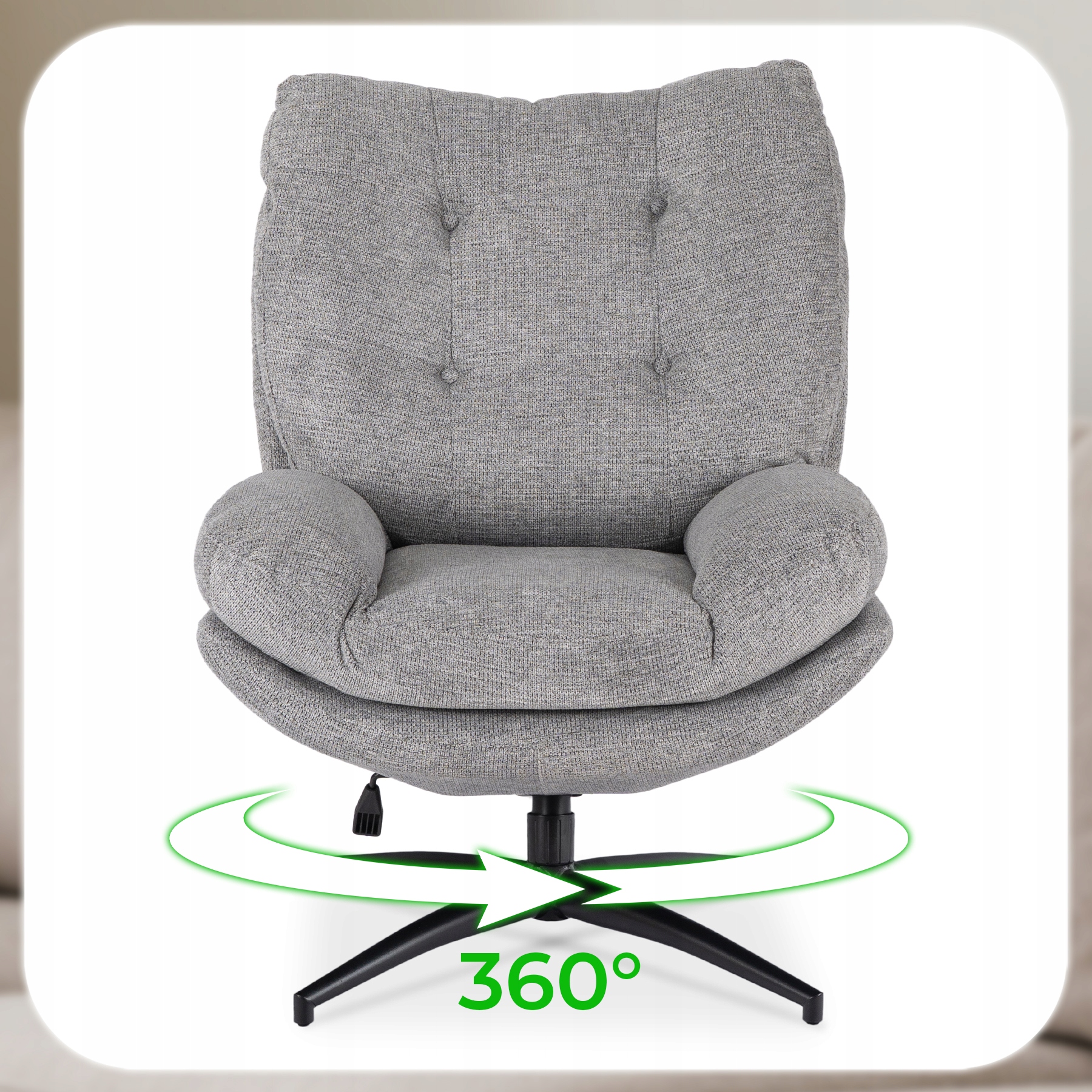 Fotel wyposażony jest w funkcję obrotu o 360°, co zapewnia pełną swobodę ruchu i wygodę w każdej sytuacji. Dzięki stabilnej podstawie i płynnemu mechanizmowi obrotowemu możesz łatwo zmieniać kierunek siedzenia, nie wstając z miejsca. Idealny do salonu, biura lub garderoby – tam, gdzie liczy się komfort i funkcjonalność.