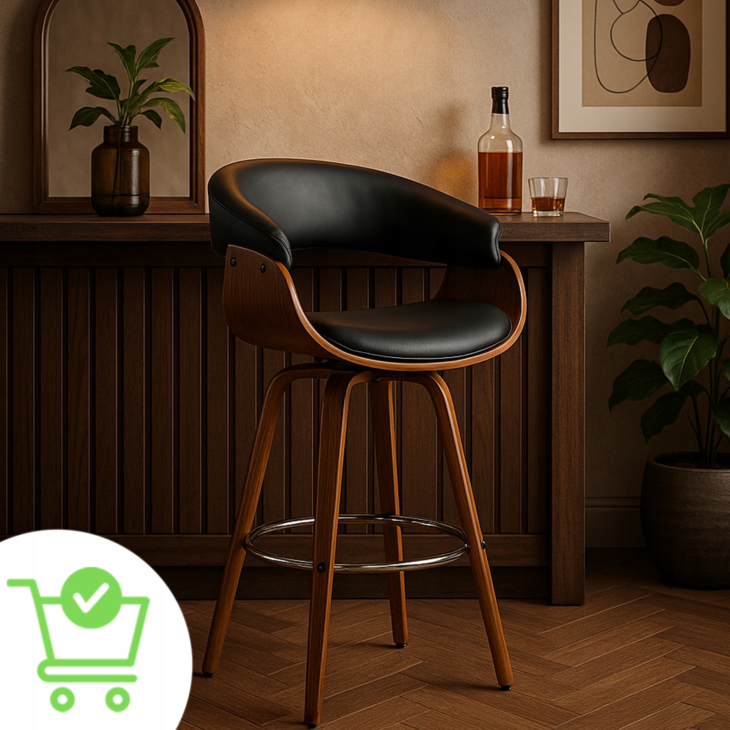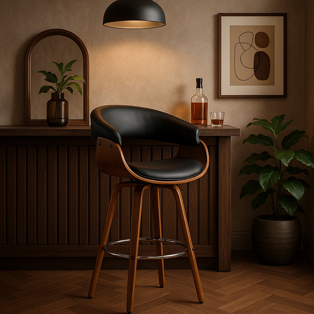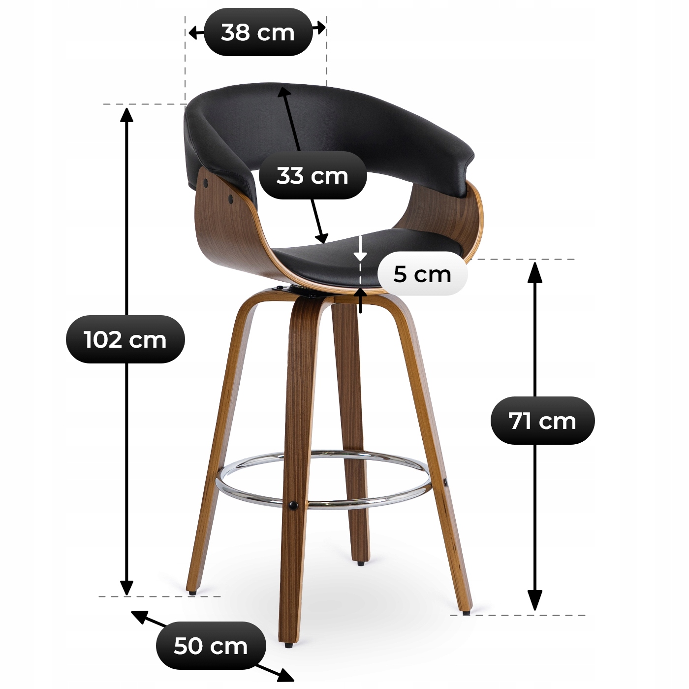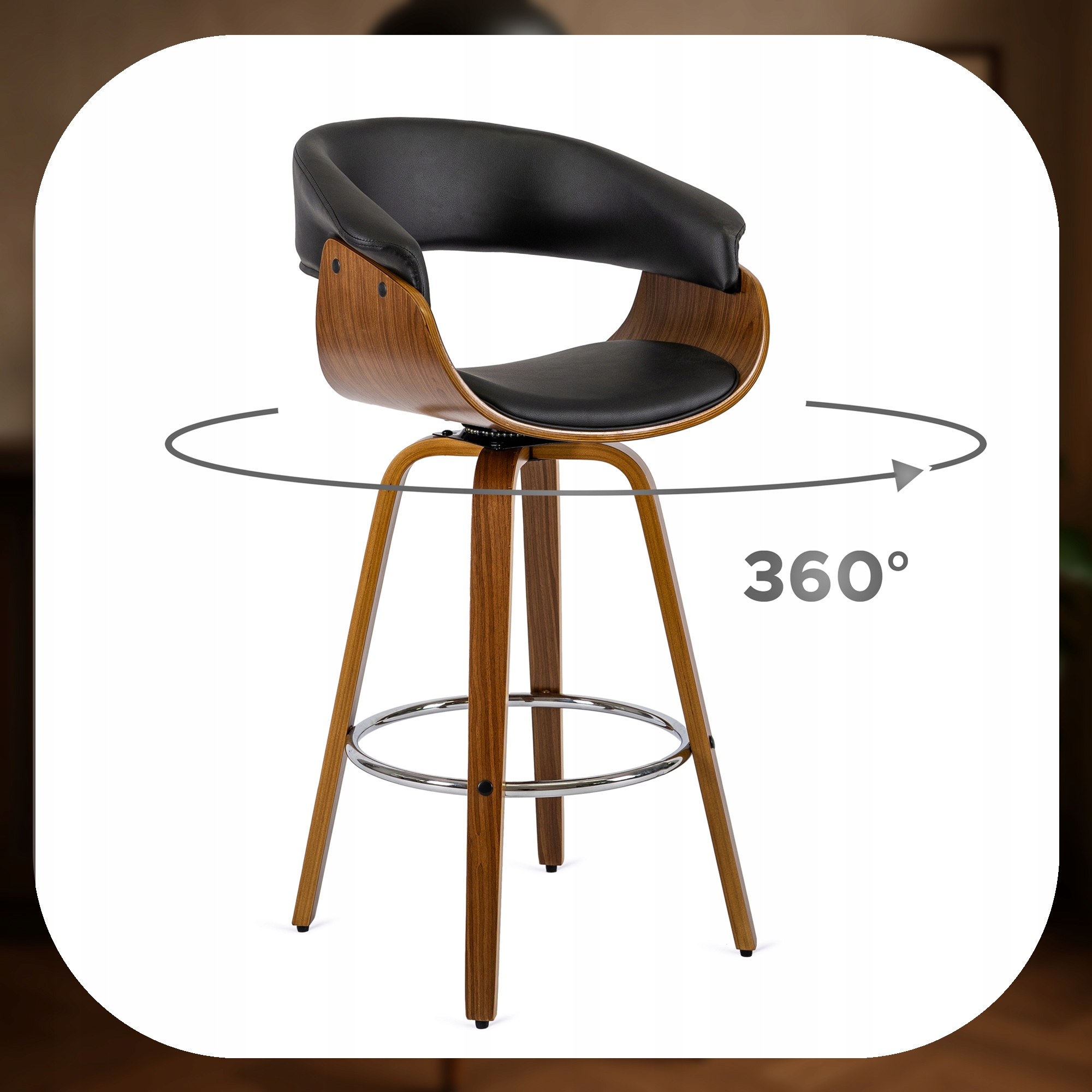 ✨ Hoker Krzesło Barowe Obrotowy Wysokie Stołek Kuchenny Czarne Orzech JERSEY