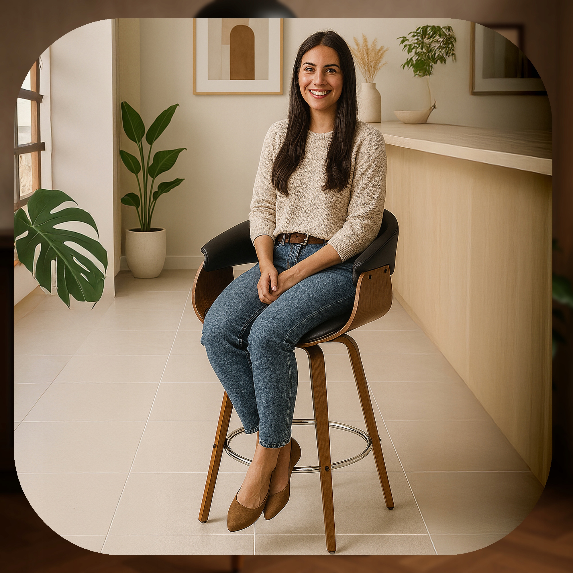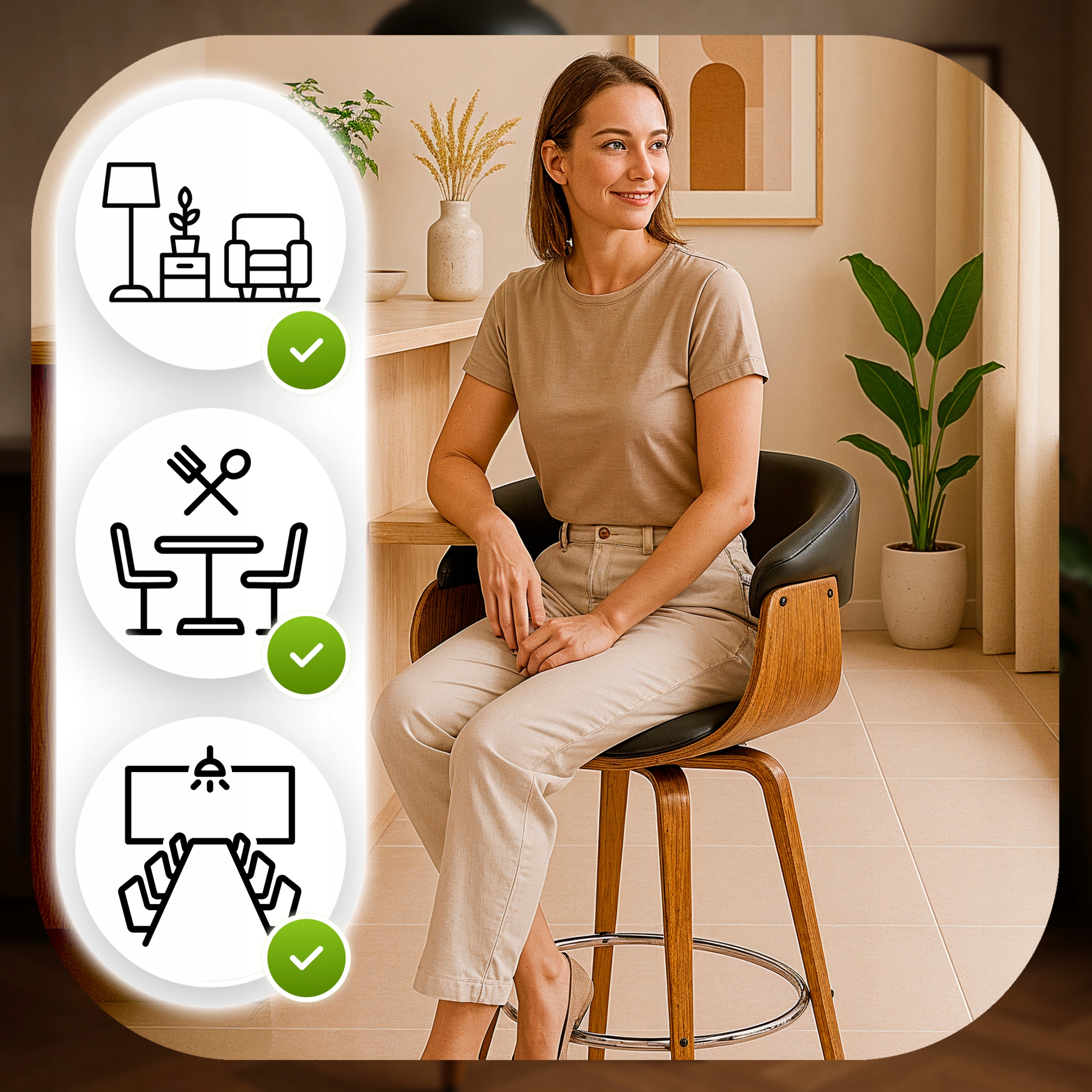 - Łatwo zmienisz kierunek siedzenia, np. w stronę rozmówcy lub blatu,