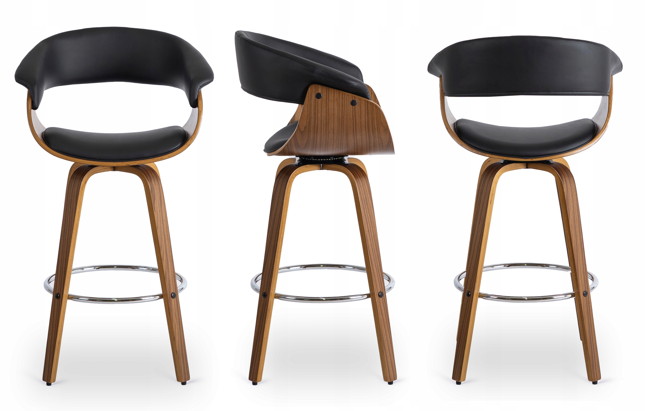 JERSEY to elegancki, obrotowy hoker z giętego drewna. Ma wyprofilowane oparcie oraz miękkie siedzisko, które zapewnia komfort i wygodę. Tapicerowany jest wysokiej jakości ekoskórą w czarnym kolorze, co nadaje mu nowoczesny i stylowy wygląd.