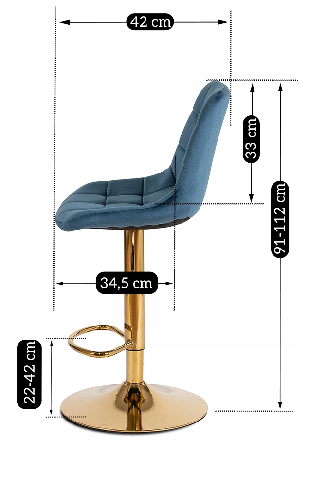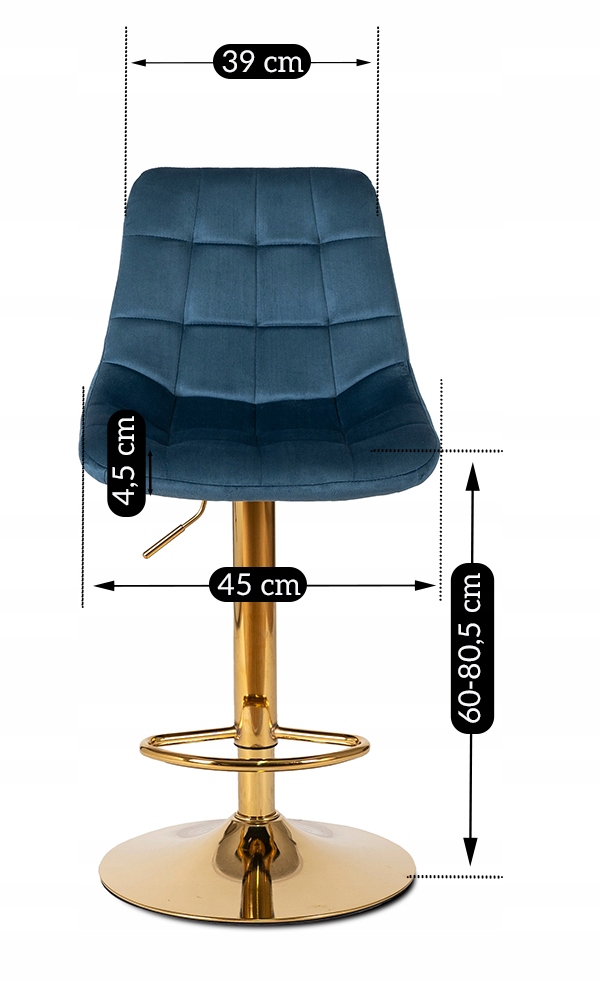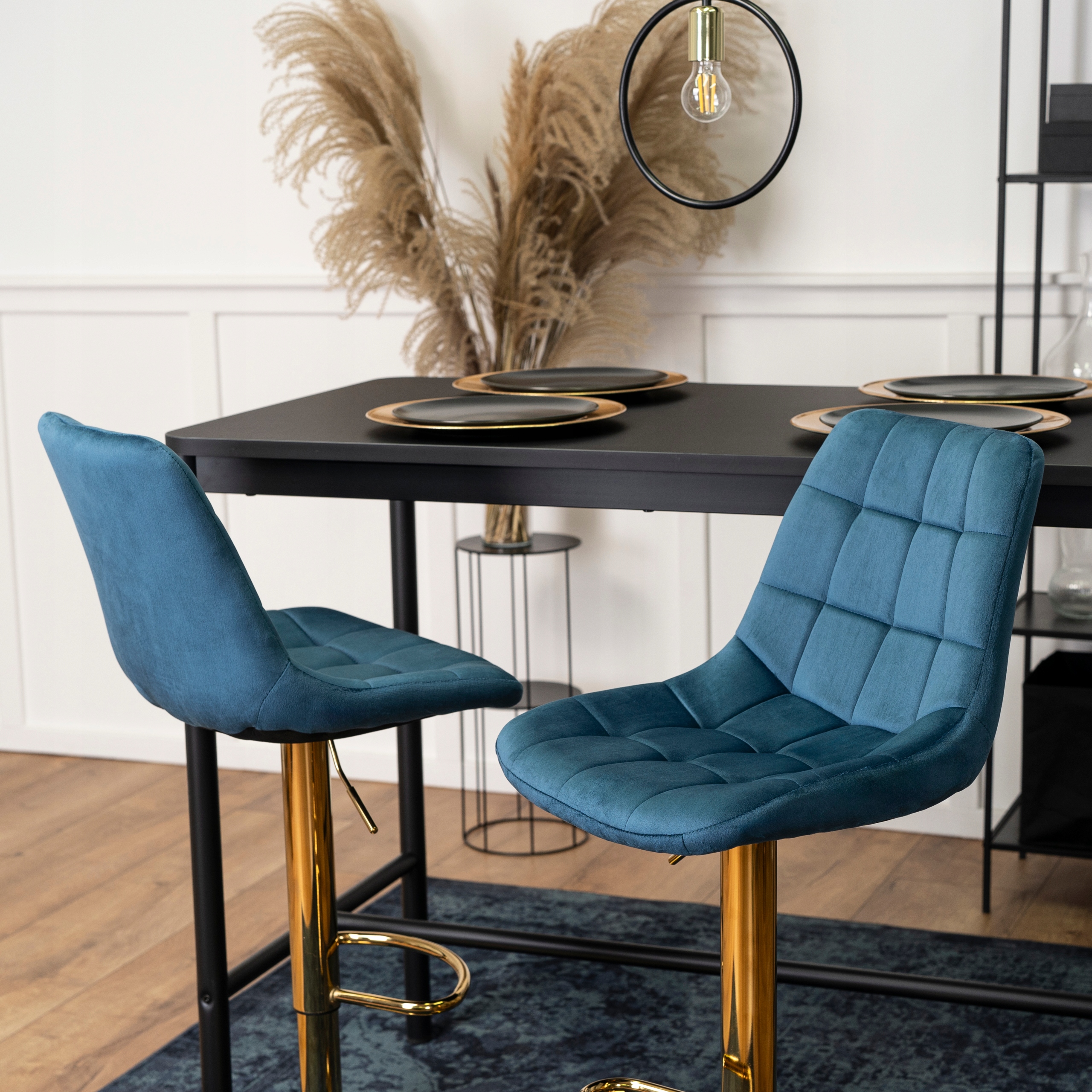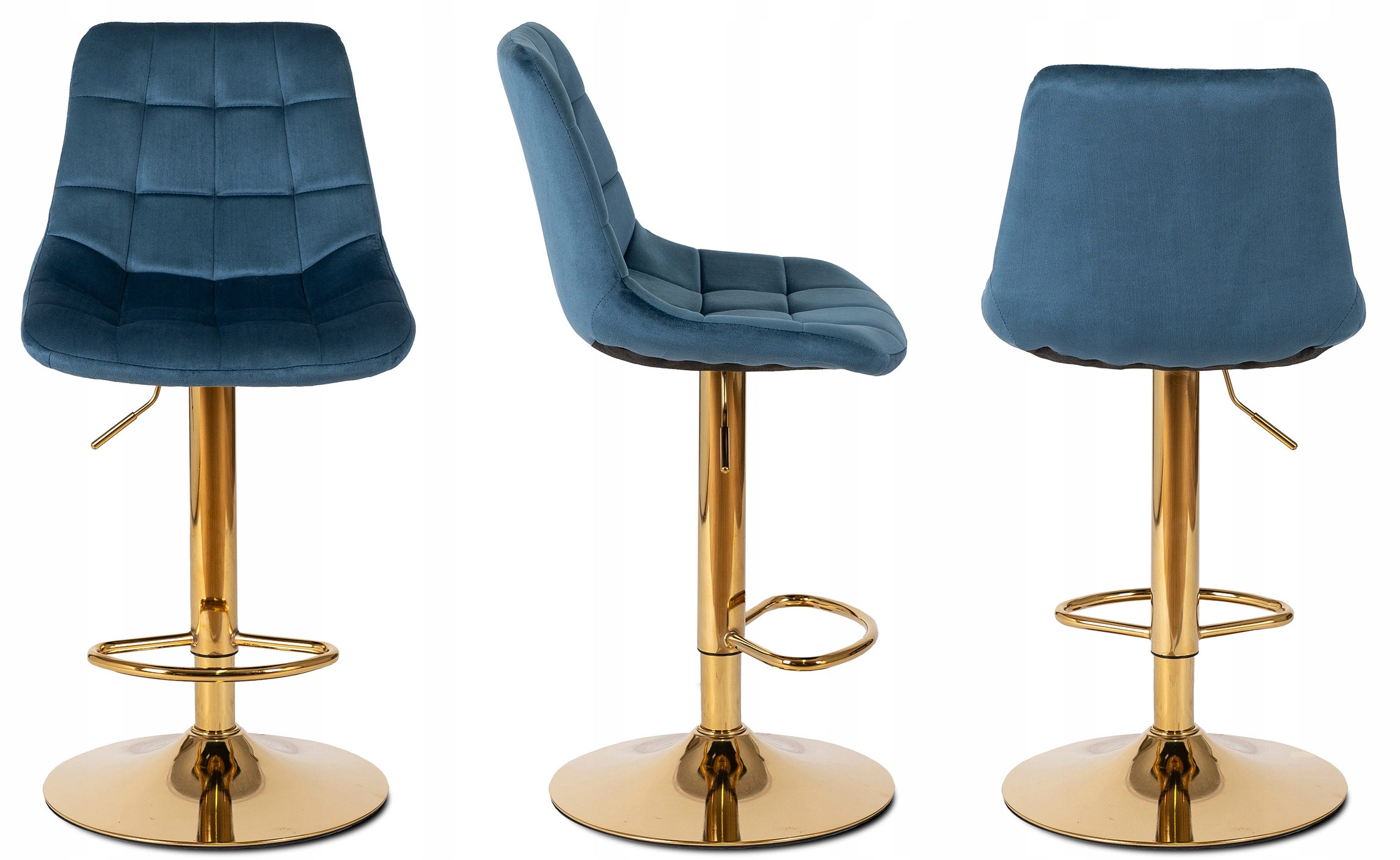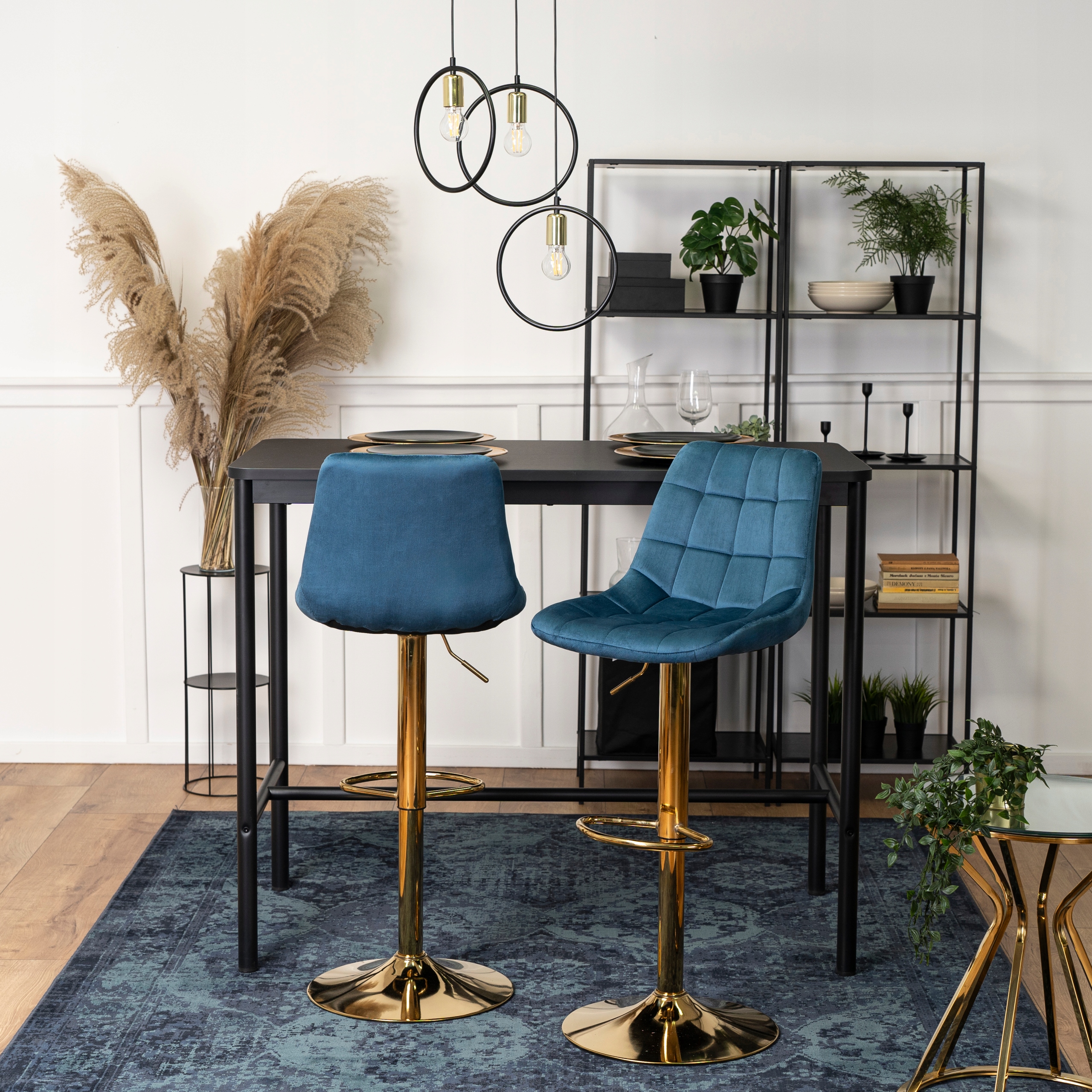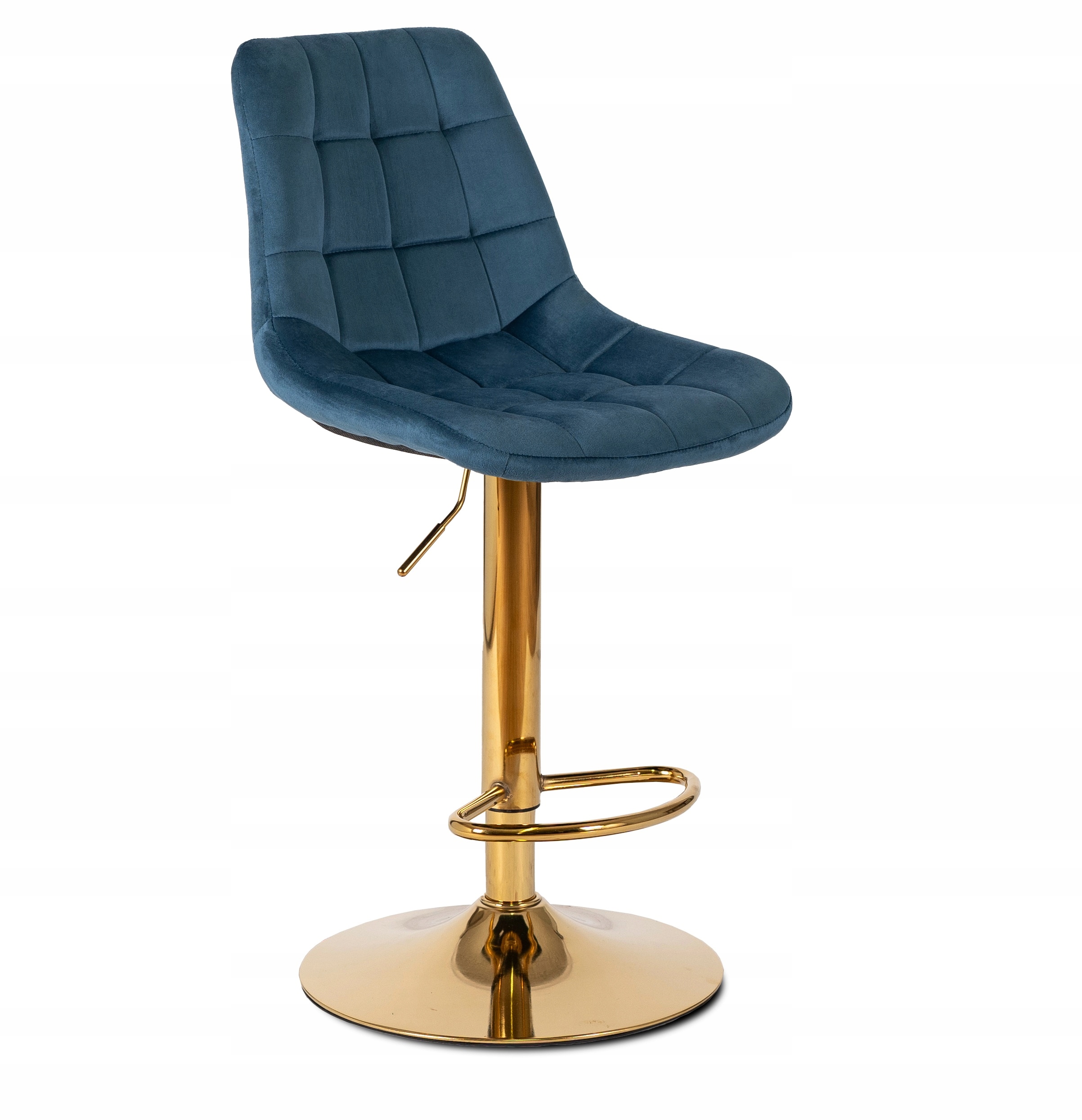 Hoker Krzesło Barowe Do Jadalni Regulowany Welurowy Niebieski Złoty ARCOS ⭐⭐⭐⭐⭐