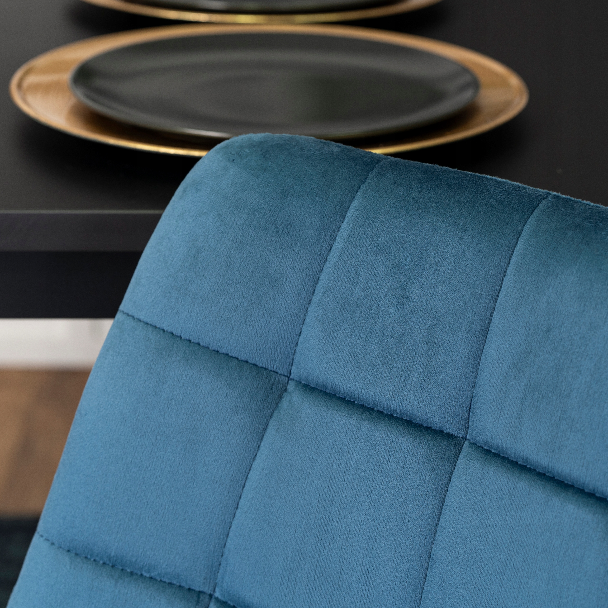 Tapicerkę stanowi wysokiej jakości tkanina welurowa (velvetowa) z efektownym pikowaniem w kratę na oparciu i siedzisku.