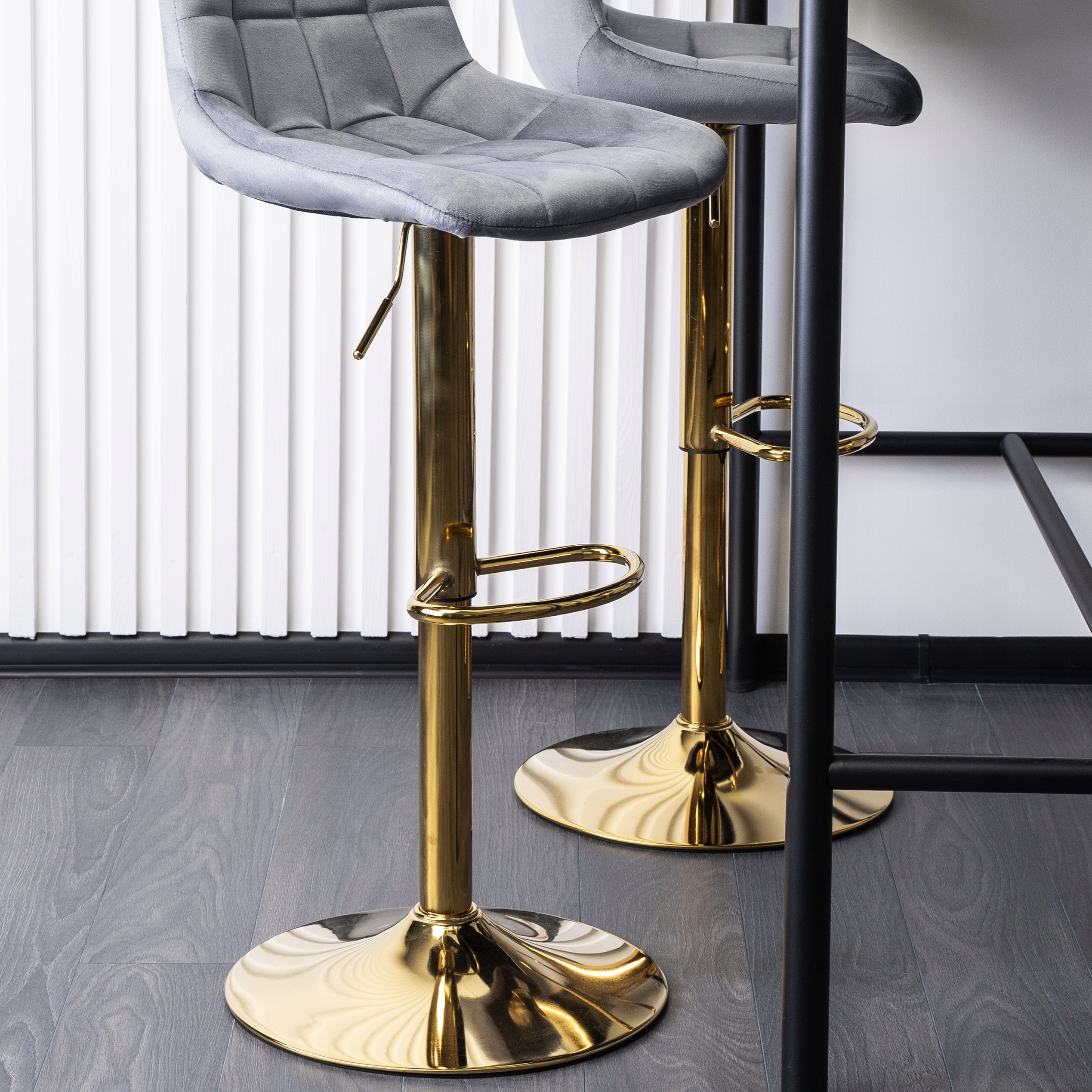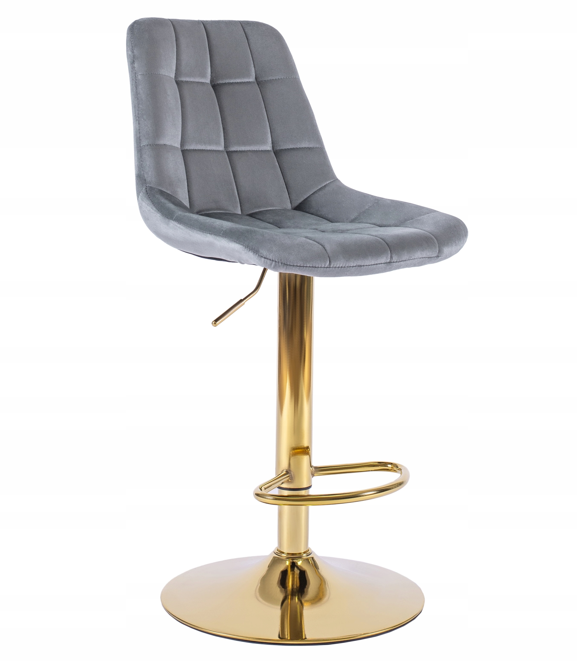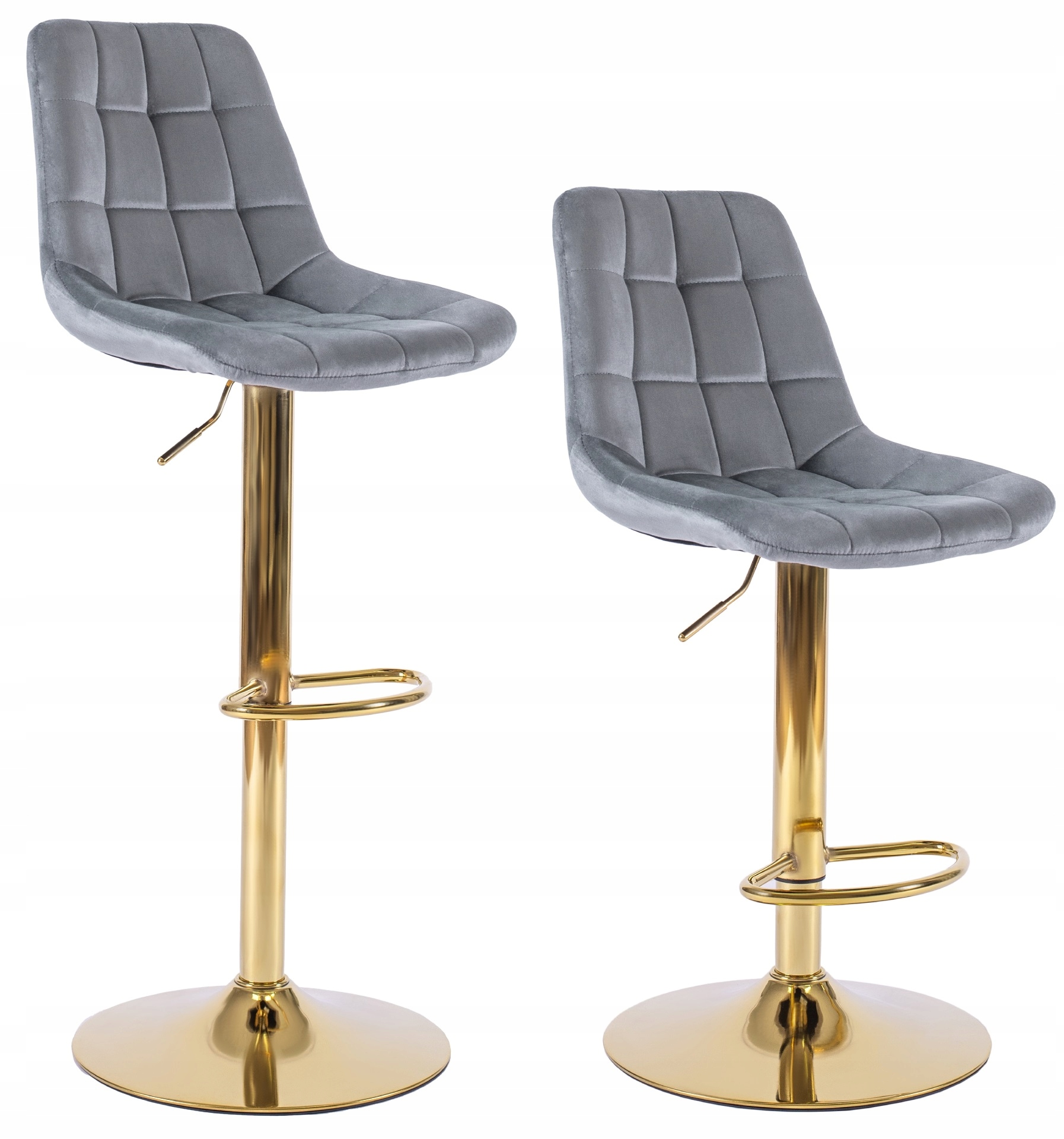 Hoker Krzesło Barowe Do Jadalni Regulowany Welurowy Złoty Szary ARCOS ⭐⭐⭐⭐⭐