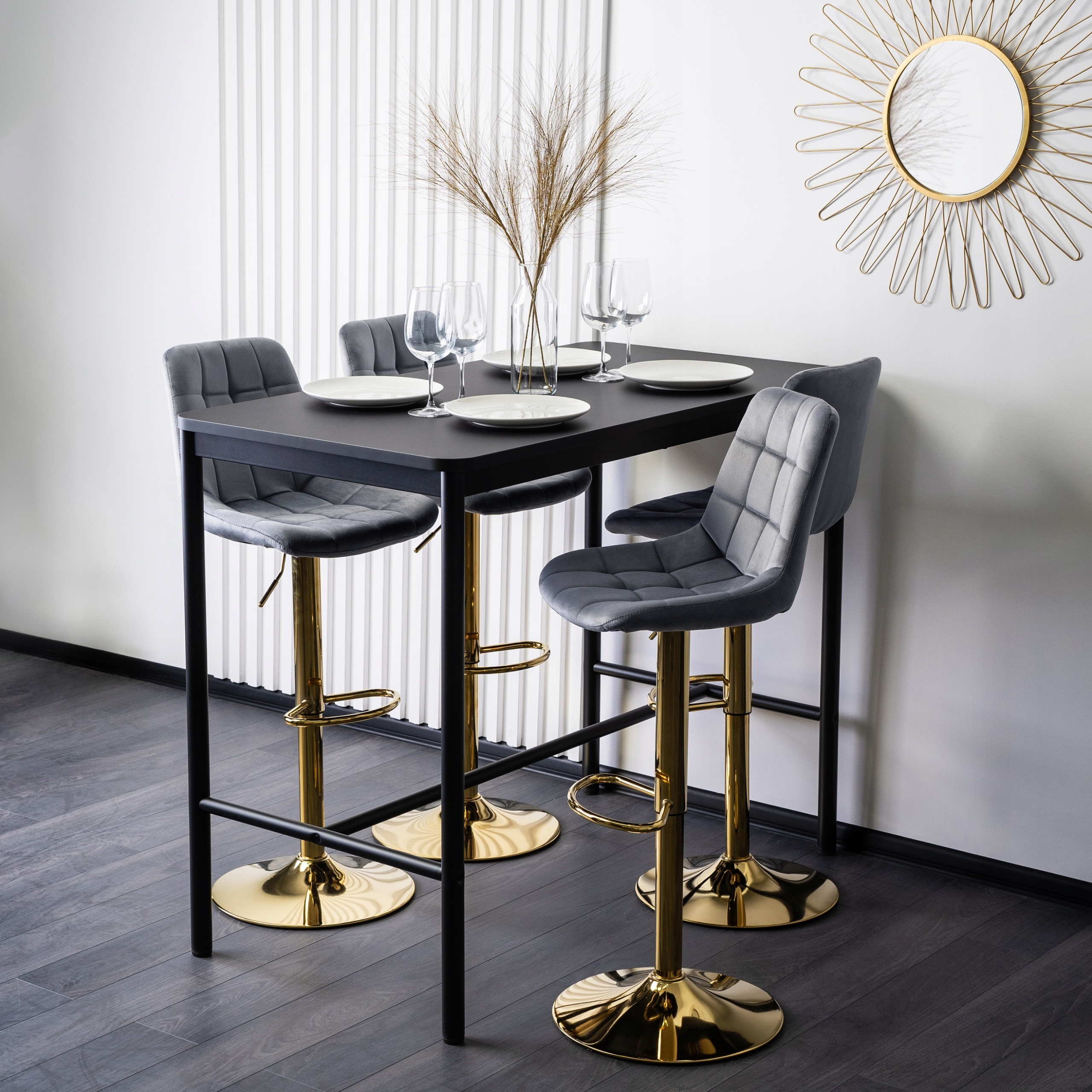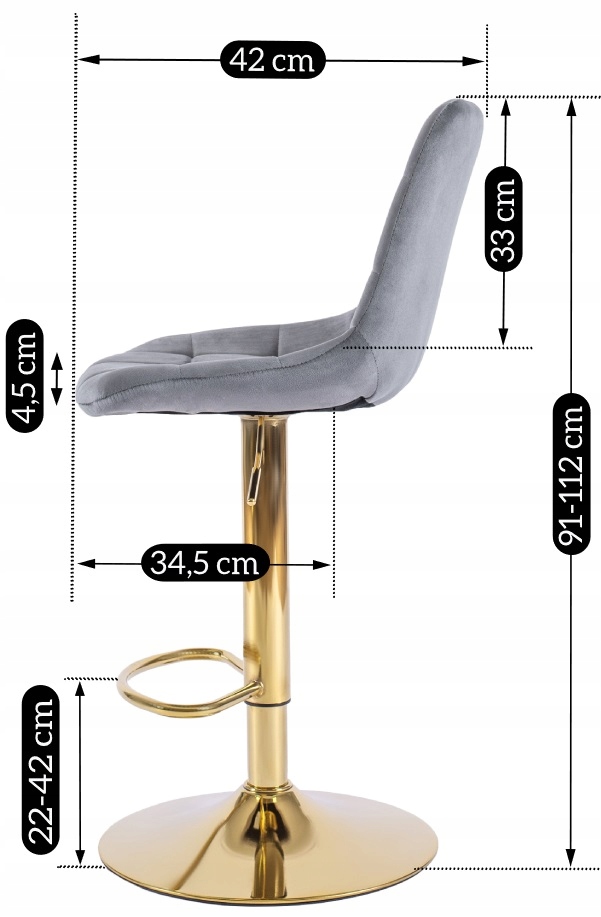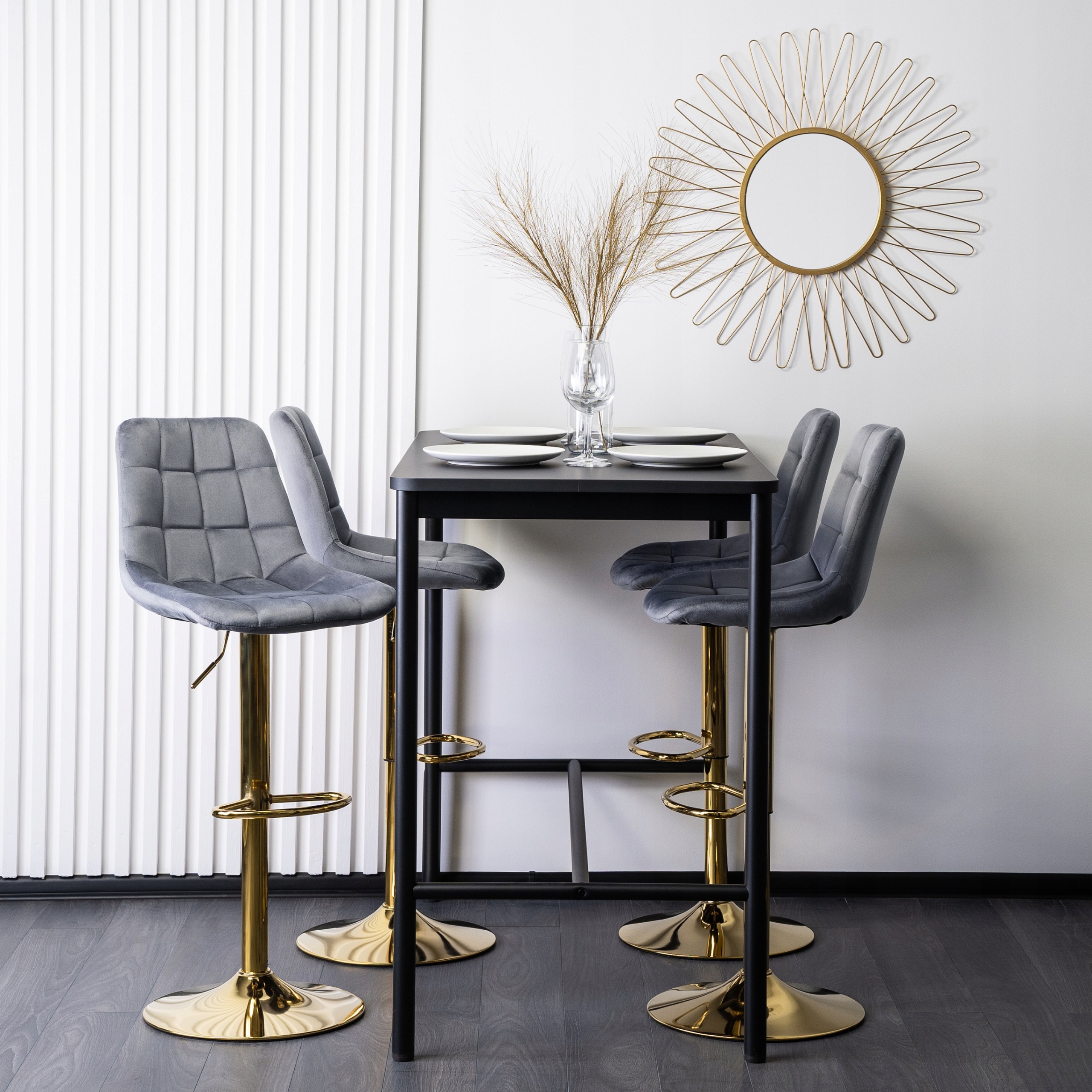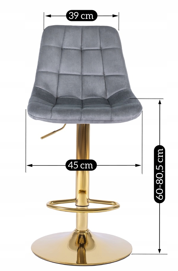 Hoker Krzesło Barowe Do Jadalni Regulowany Welurowy Złoty Szary ARCOS ⭐⭐⭐⭐⭐
