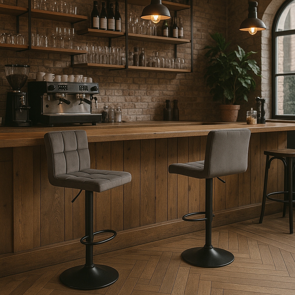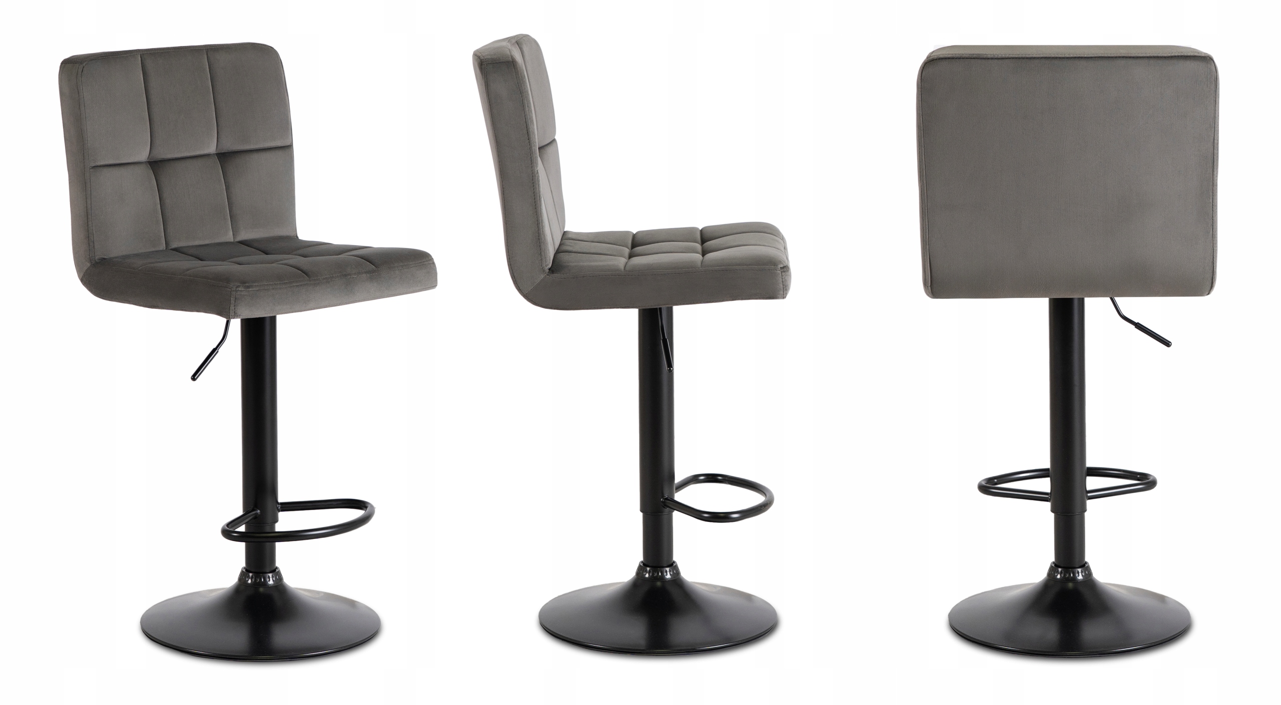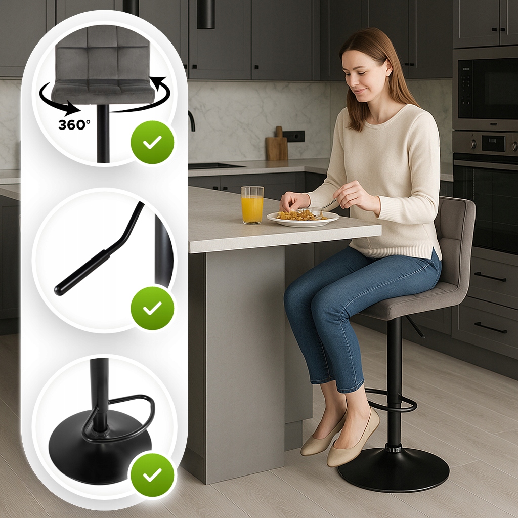 Hoker Krzesło Barowe Obrotowe Kuchenne Regulowane Do Jadalni NERO Popiel ⭐⭐⭐⭐⭐