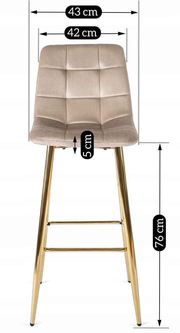 Hoker Krzesło Barowe z Oparciem Do Jadalni Glamour Welur Kremowy Ecru ARIEL ⭐⭐⭐⭐⭐