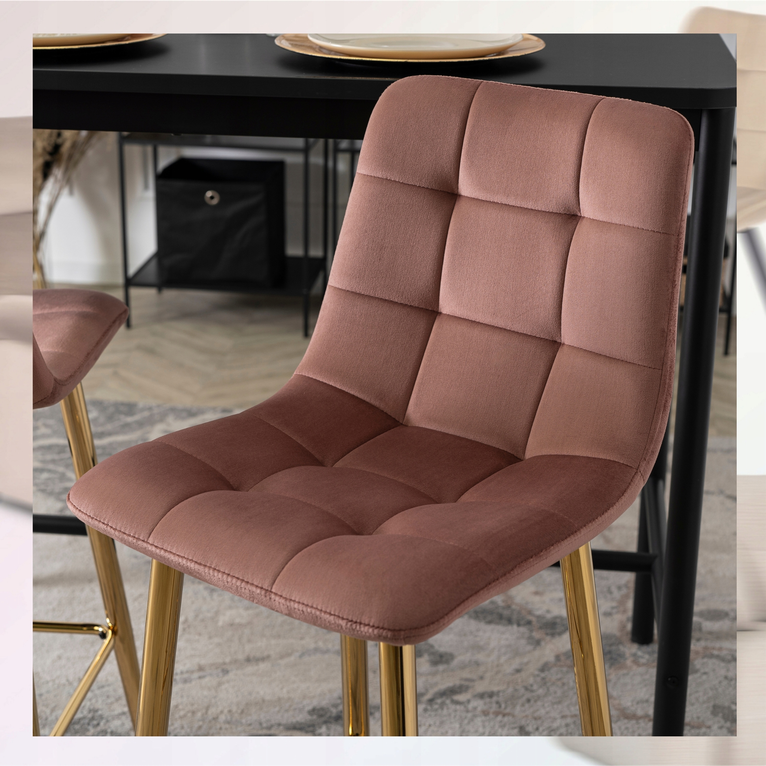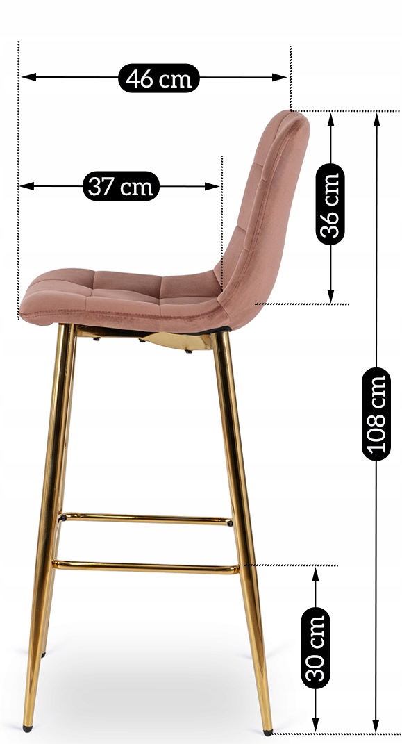 Hoker Krzesło Barowe z Oparciem Do Jadalni Glamour Welur Róż Złoty ARIEL⭐⭐⭐⭐⭐