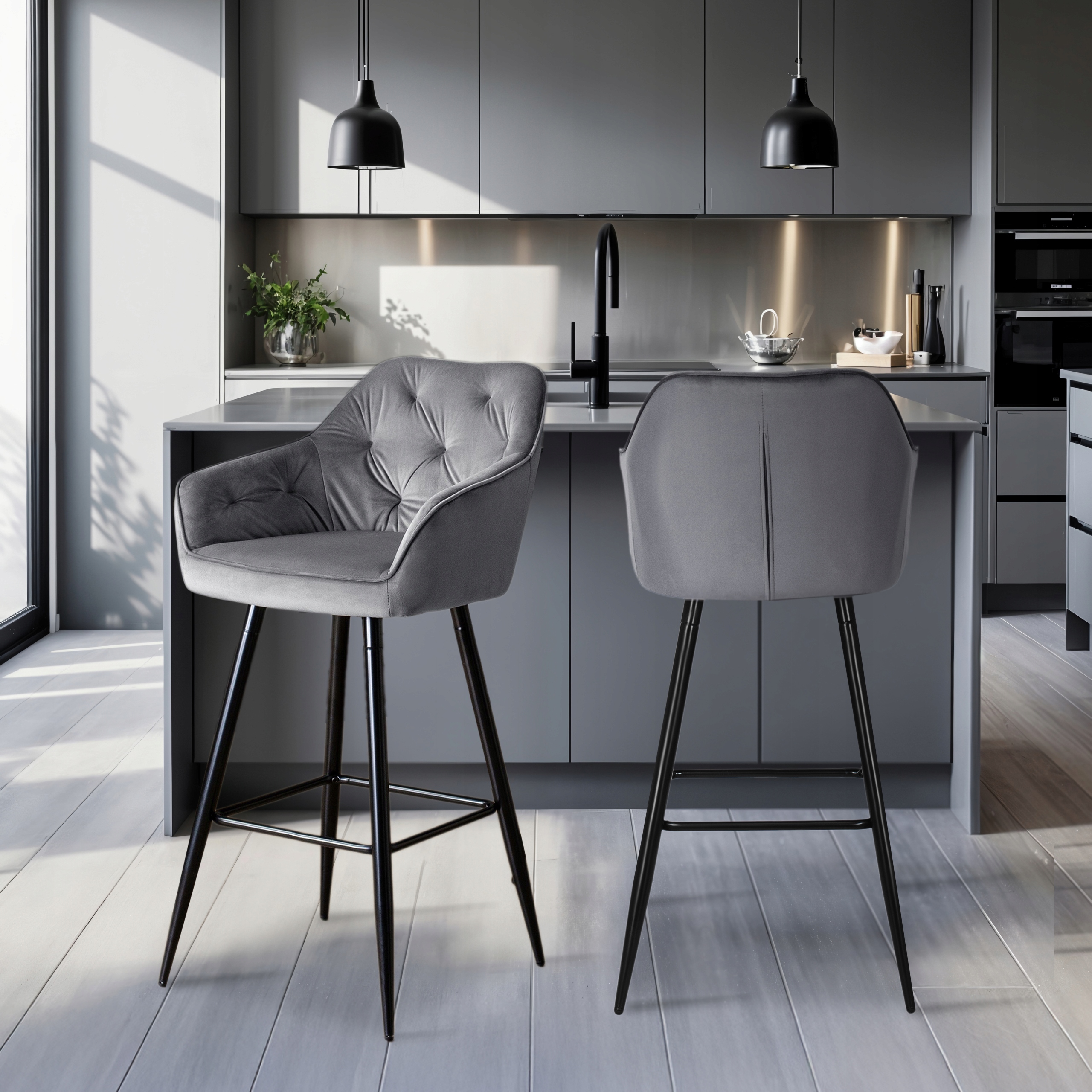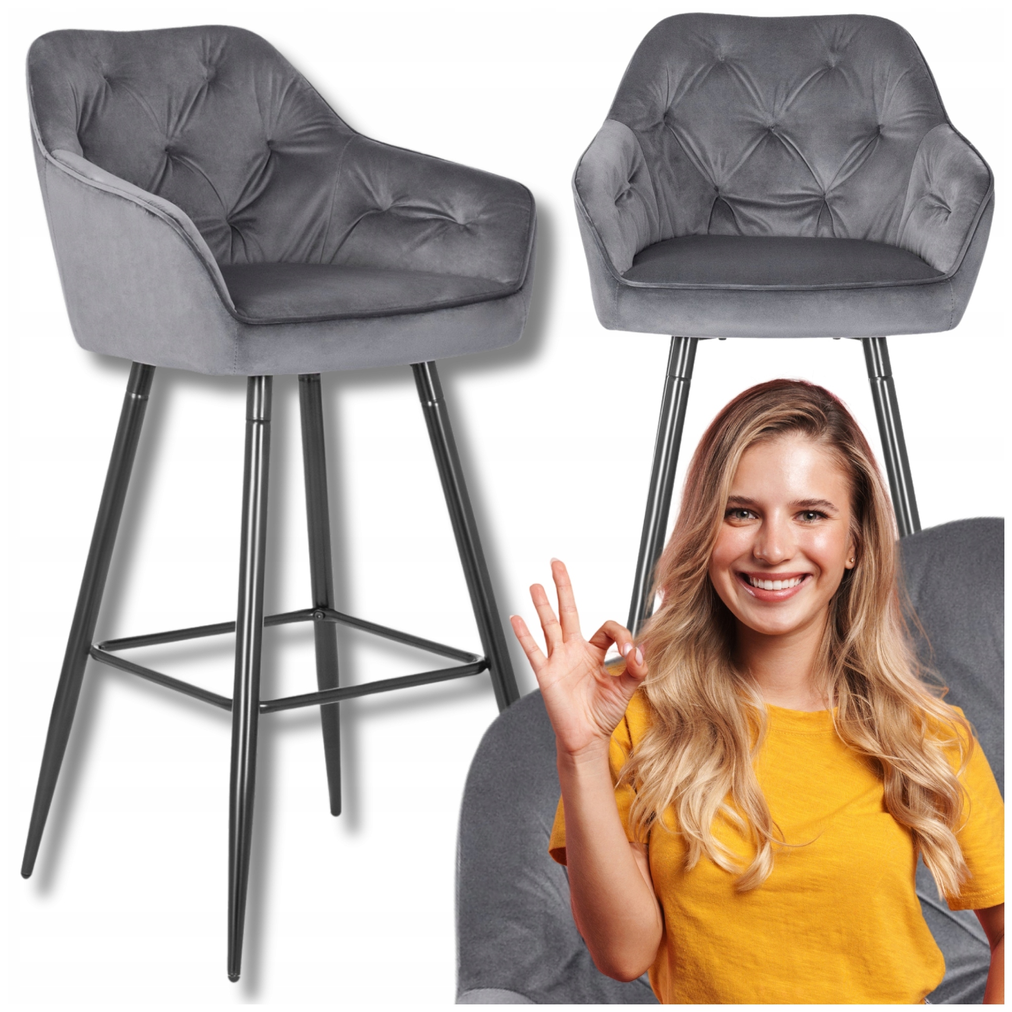 Hoker Krzesło Barowe z Oparciem Do Jadalni Loft Welurowy Szary SALEM ⭐⭐⭐⭐⭐