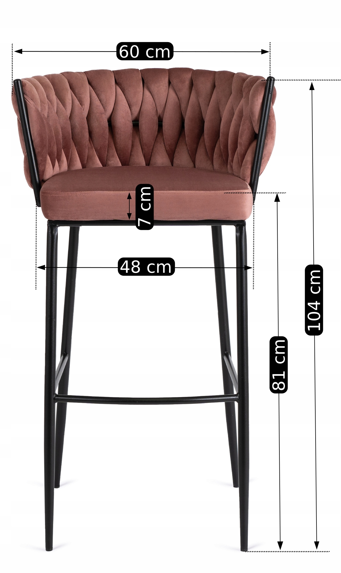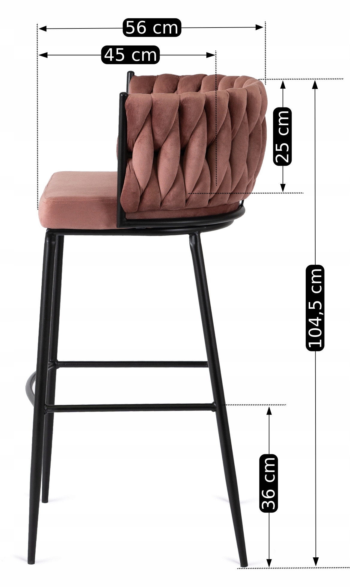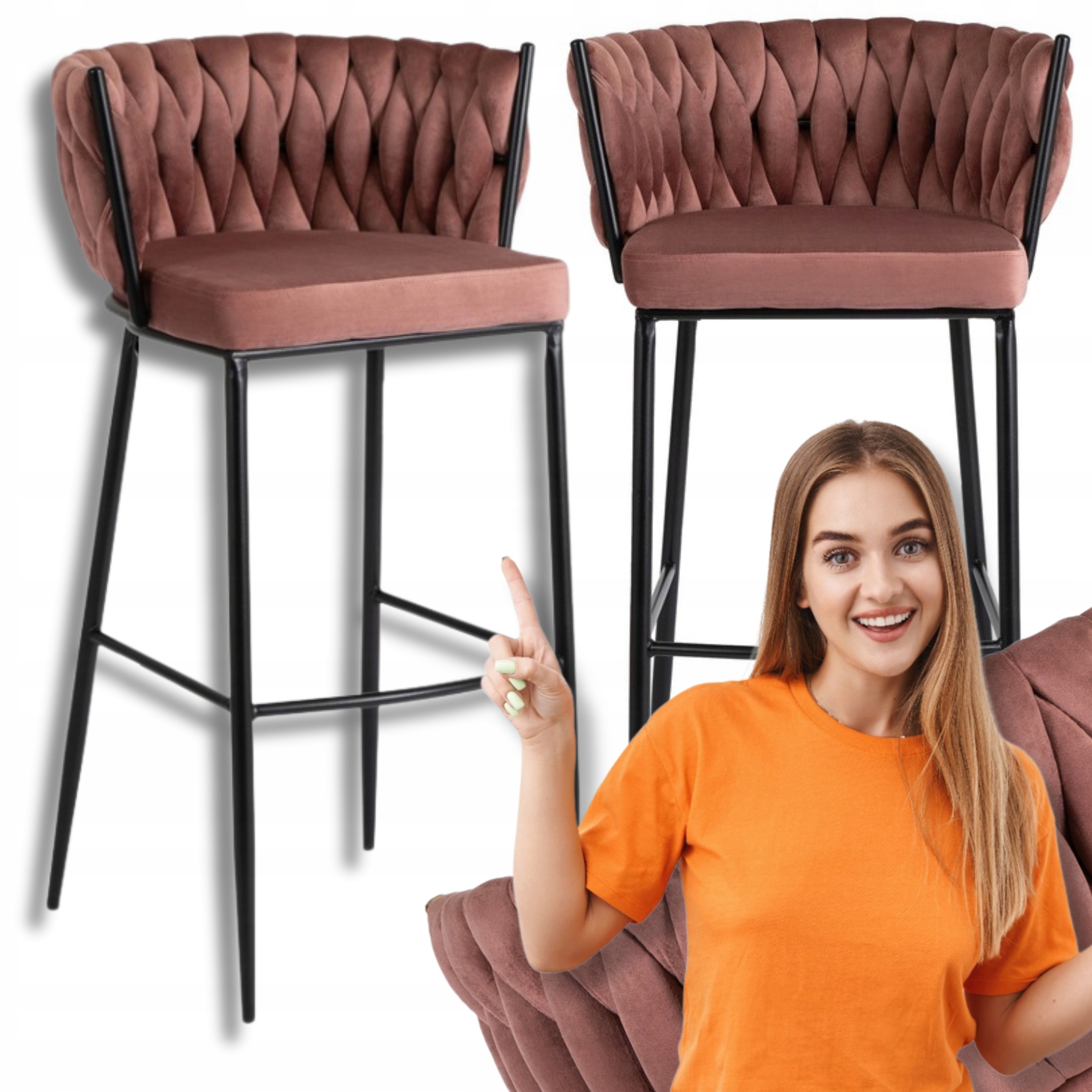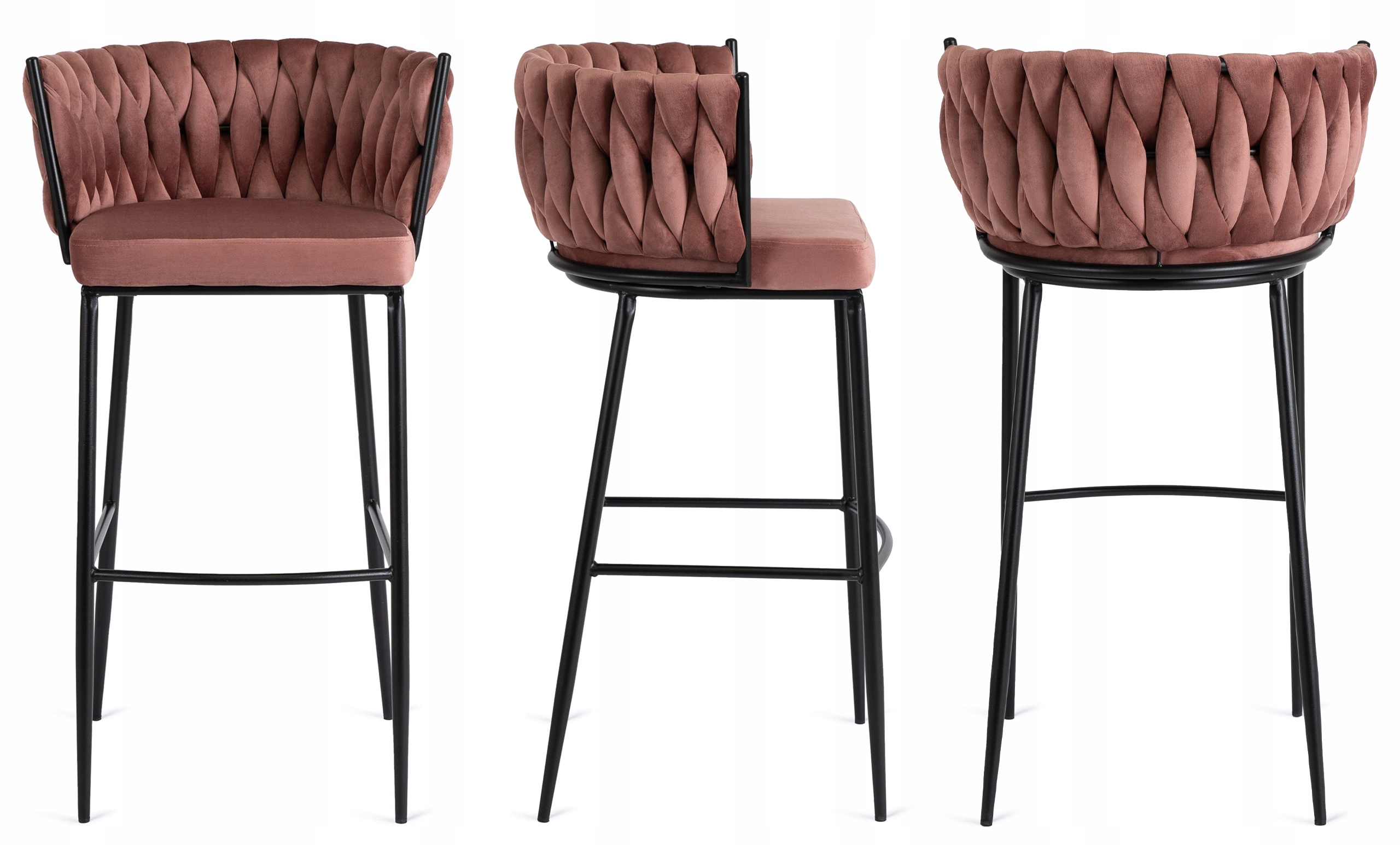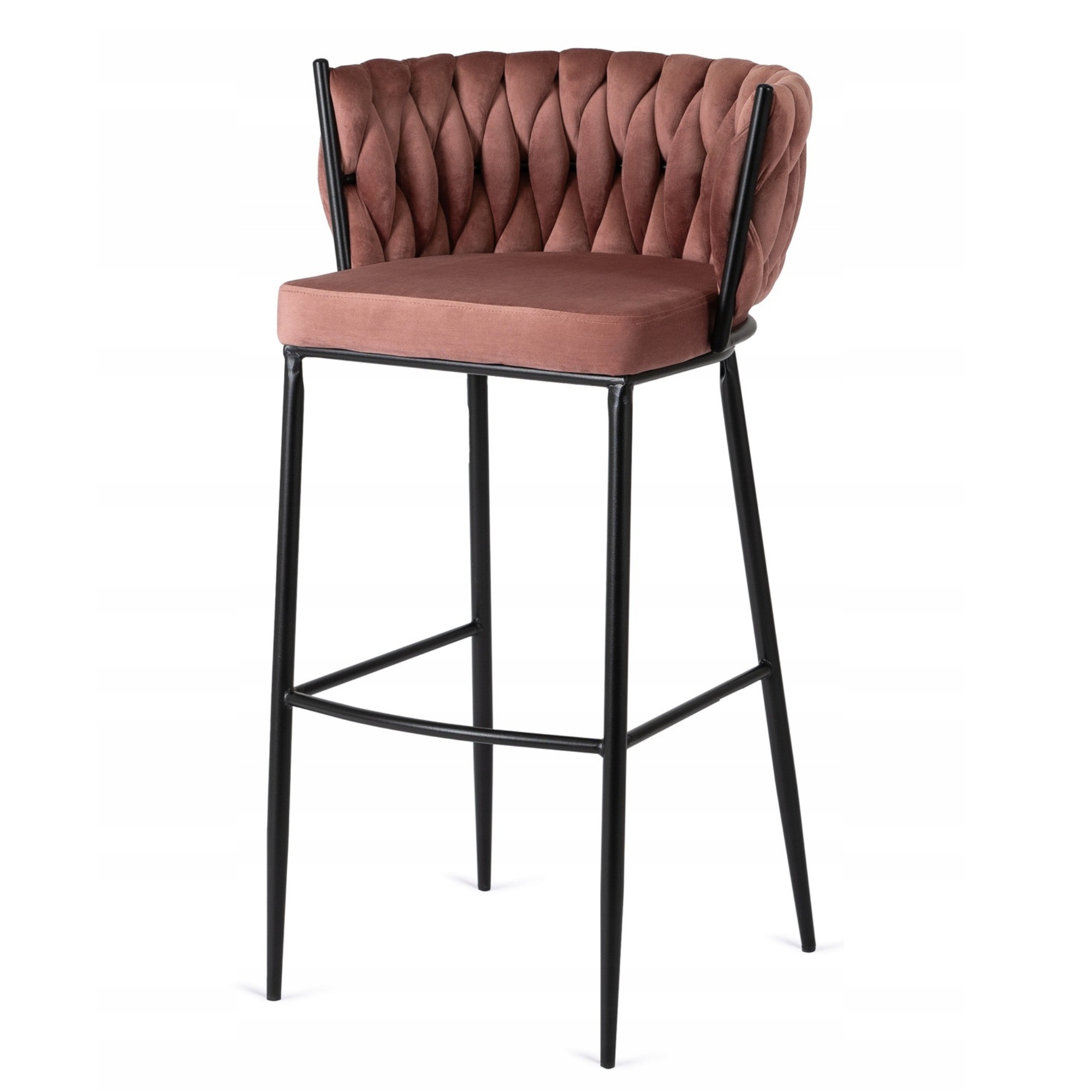 Hoker Krzesło Barowe z Oparciem Loft Plecionka Welurowy Różowy FLORES ⭐⭐⭐⭐⭐