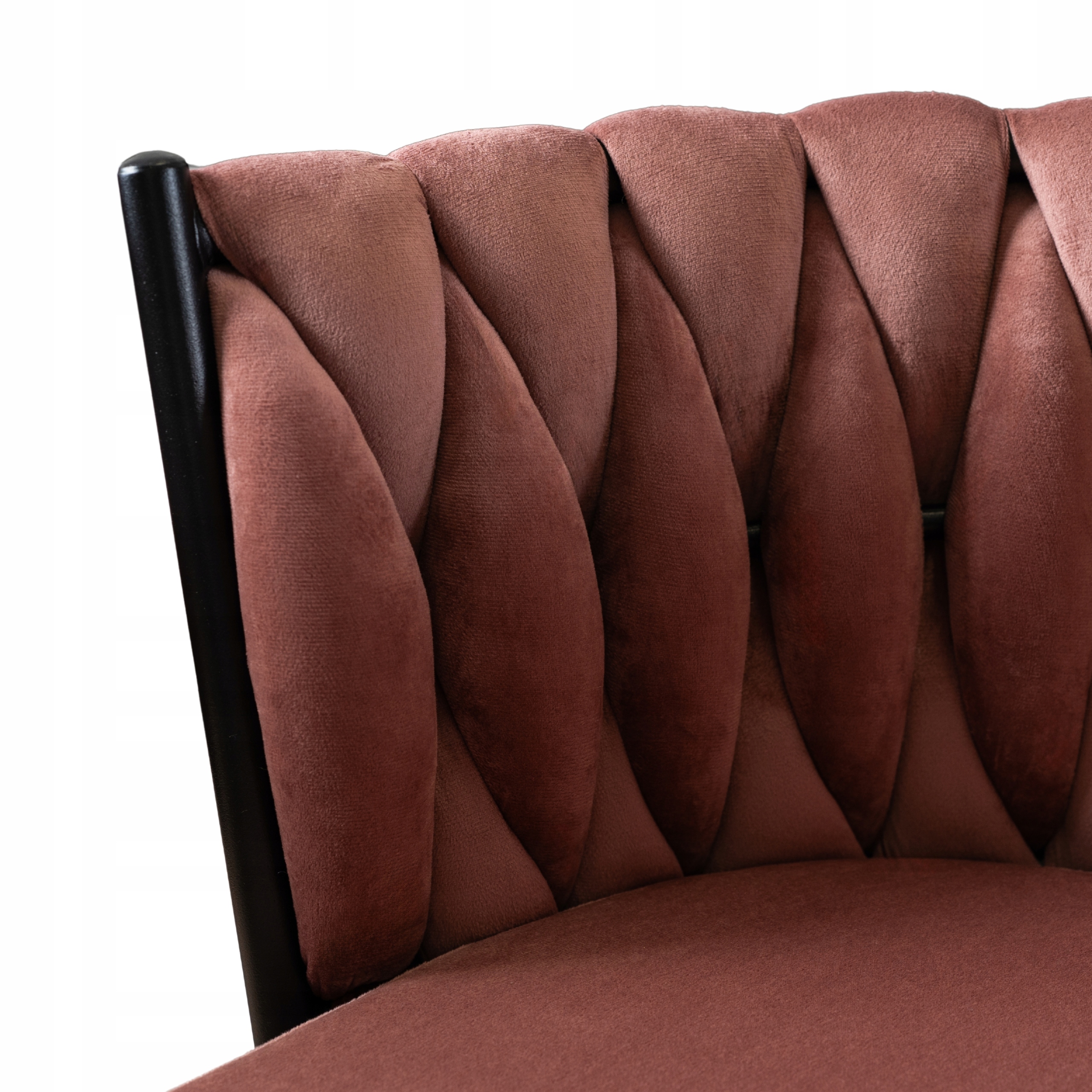 • Hoker welurowy z oparciem FLORES w kolorze różowym z czarnymi nogami