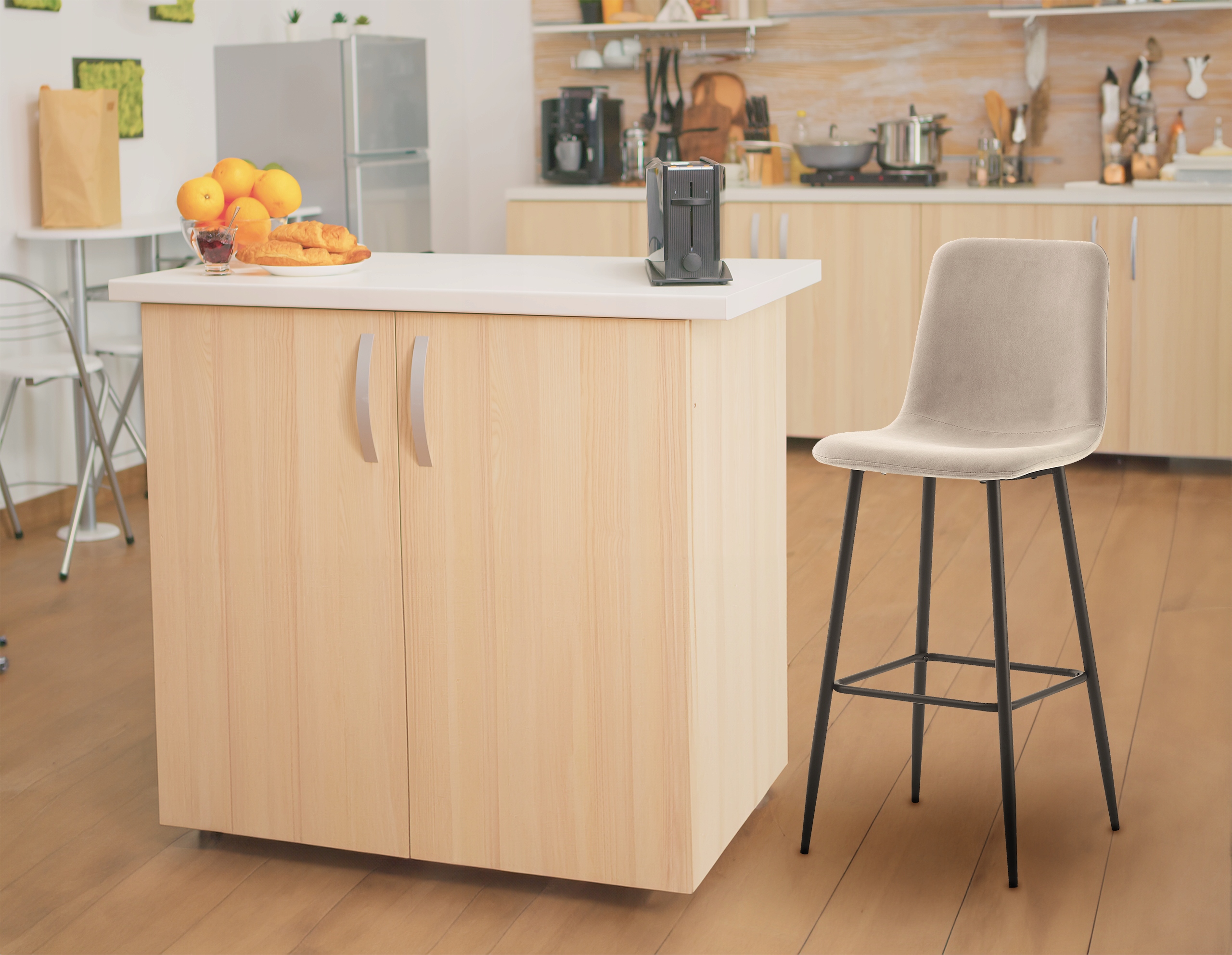 Zachwycający hoker o eleganckim połączeniu klasyki i nowoczesności, który z pewnością stanie się ozdobą każdego wnętrza. Siedzisko o ciekawej fakturze doskonale współgra z czarnym stelażem, przyciągając wzrok i wprowadzając unikalny akcent do przestrzeni. Siedzisko wykonane z tkaniny velvet zapewnia wyjątkowy komfort użytkowania, a jej miękkość sprawia, że każdy moment spędzony na tym hokerze jest przyjemnością. Czarny stelaż i ergonomiczny podnóżek wykonane z malowanej proszkowo stali w czerni podkreślają industrialny charakter tego mebla. Idealnie komponuje się z nowoczesnymi wnętrzami w stylu loftowym, ale równie dobrze wpasuje się w eleganckie kuchnie czy przestronne wyspy kuchenne. Dzięki dużej wysokości, hoker świetnie sprawdzi się jako część barowego zestawu, wprowadzając do wnętrza funkcjonalność i wyjątkowy design.