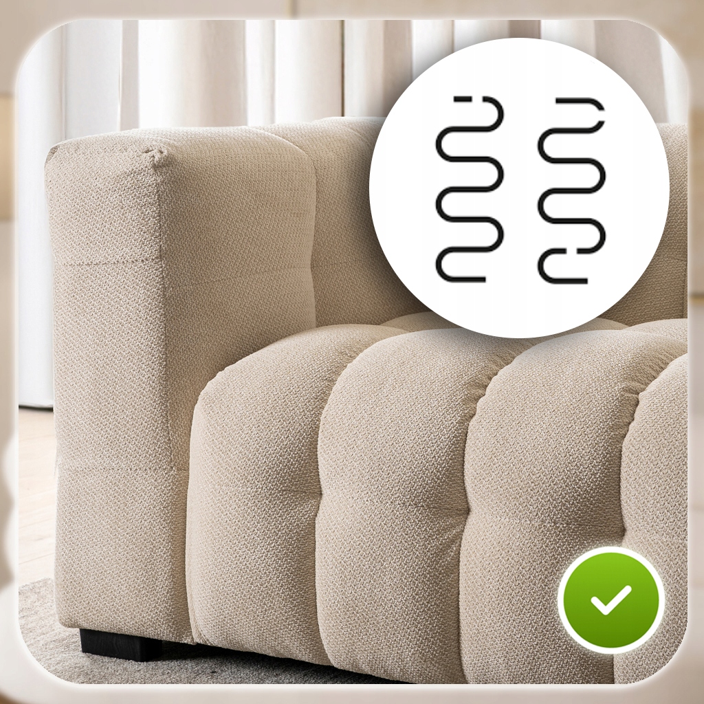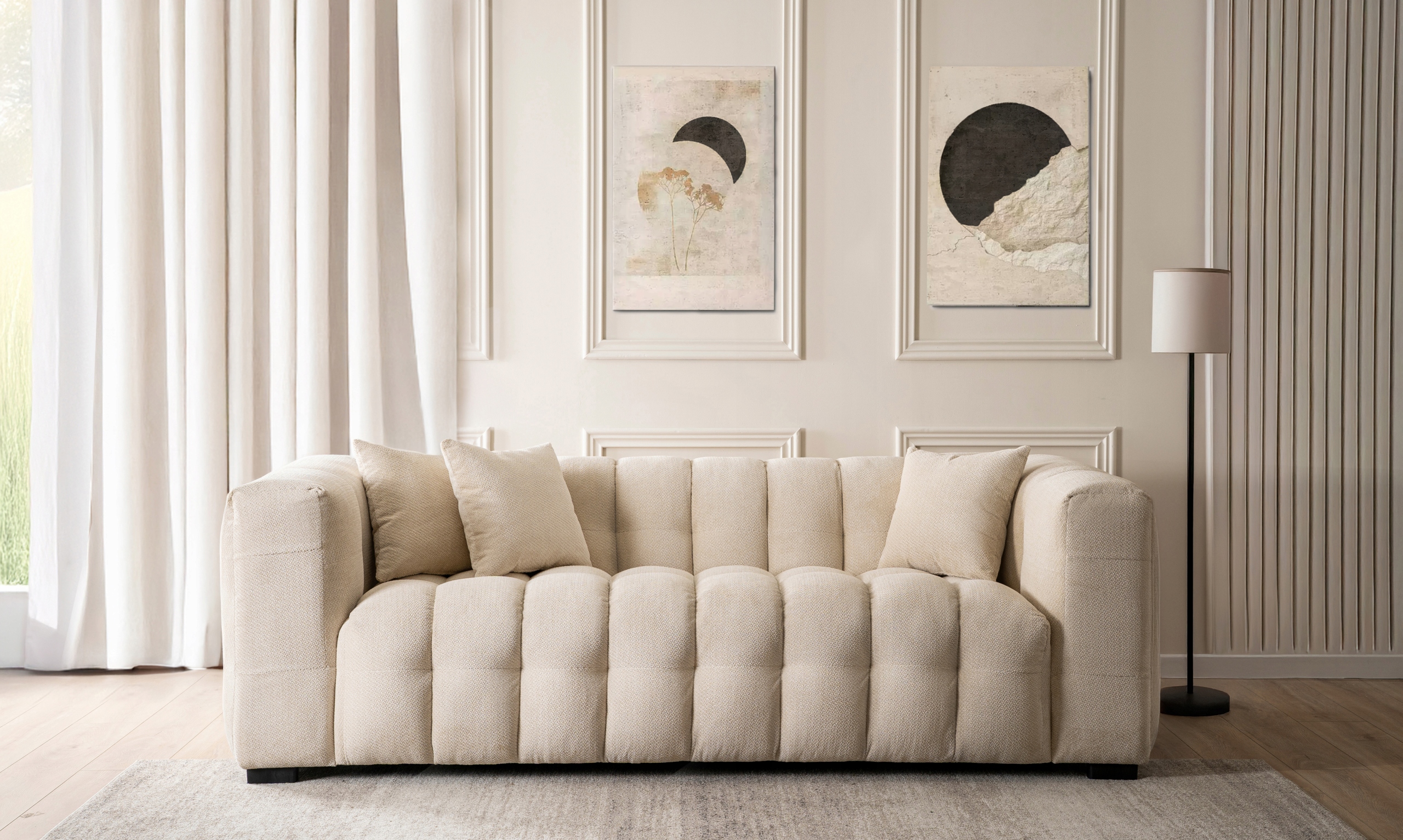 Kanapa MODERNO 3S łączy w sobie luksusowy wygląd z najwyższym poziomem komfortu. Jej kremowy, subtelny odcień wprowadza do pomieszczenia spokój i ciepło, a głębokie pikowania nadają jej wyjątkowy charakter. To mebel, który zachwyca od pierwszego spojrzenia i zaprasza do relaksu.