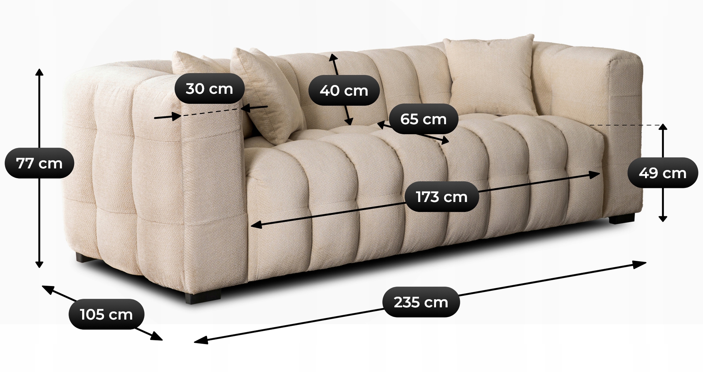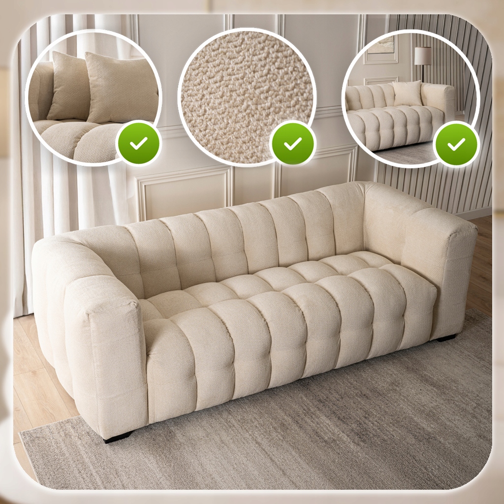 ✨ Kanapa Sofa Glamour 3 Osobowa Do Salonu Wygodna Kremowa MODERNO 3S