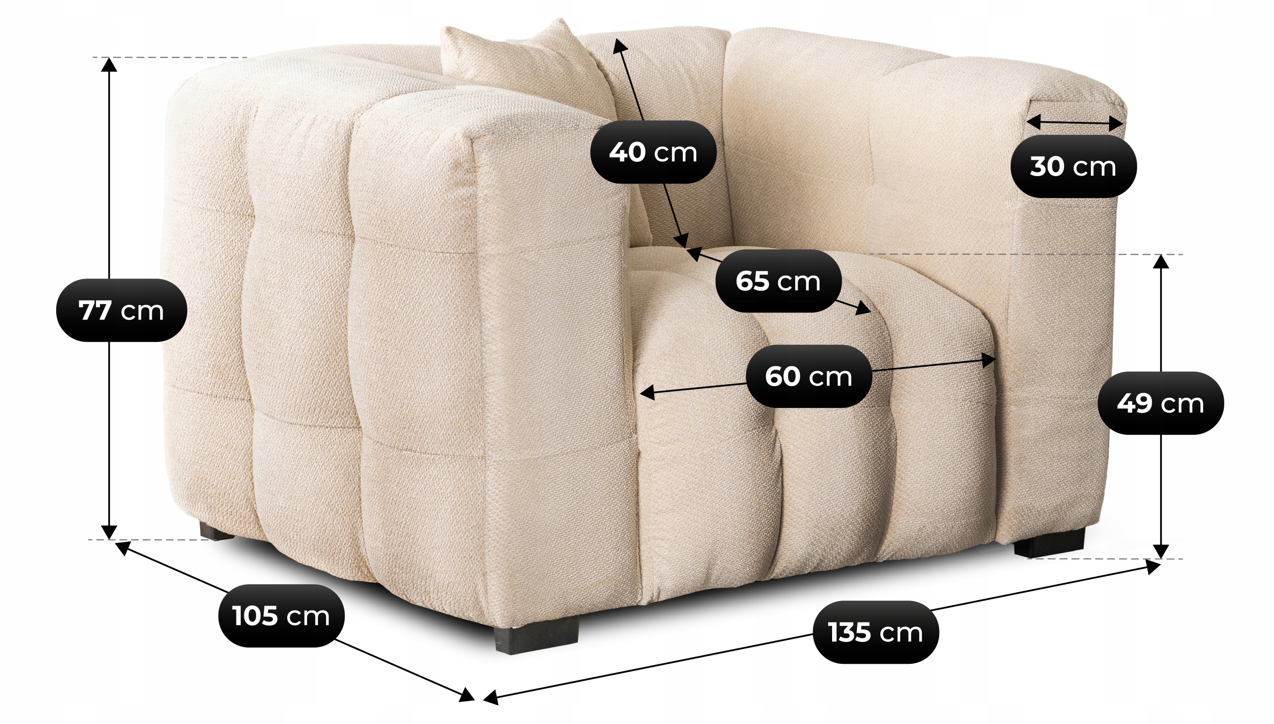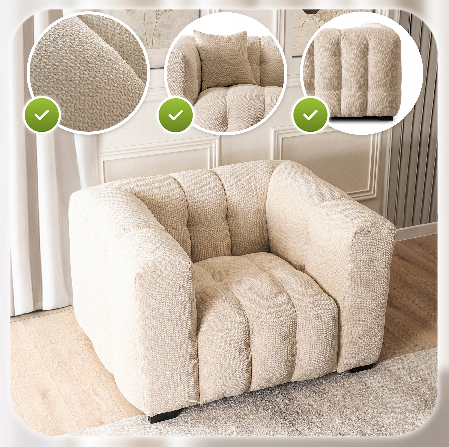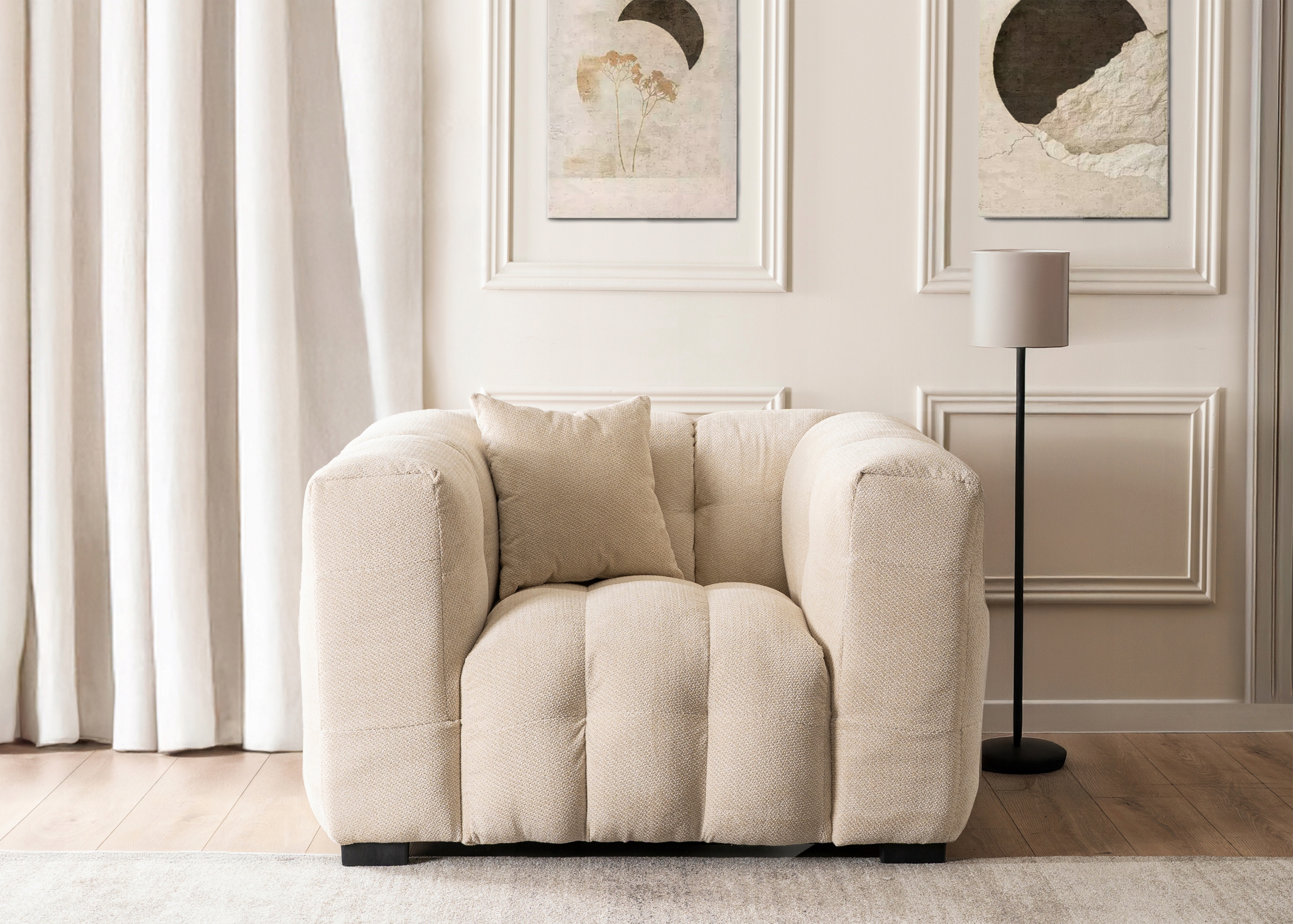 ✨ Kanapa Sofa Glamour Jednoosobowa Do Salonu Wygodna Kremowa MODERNO 1S