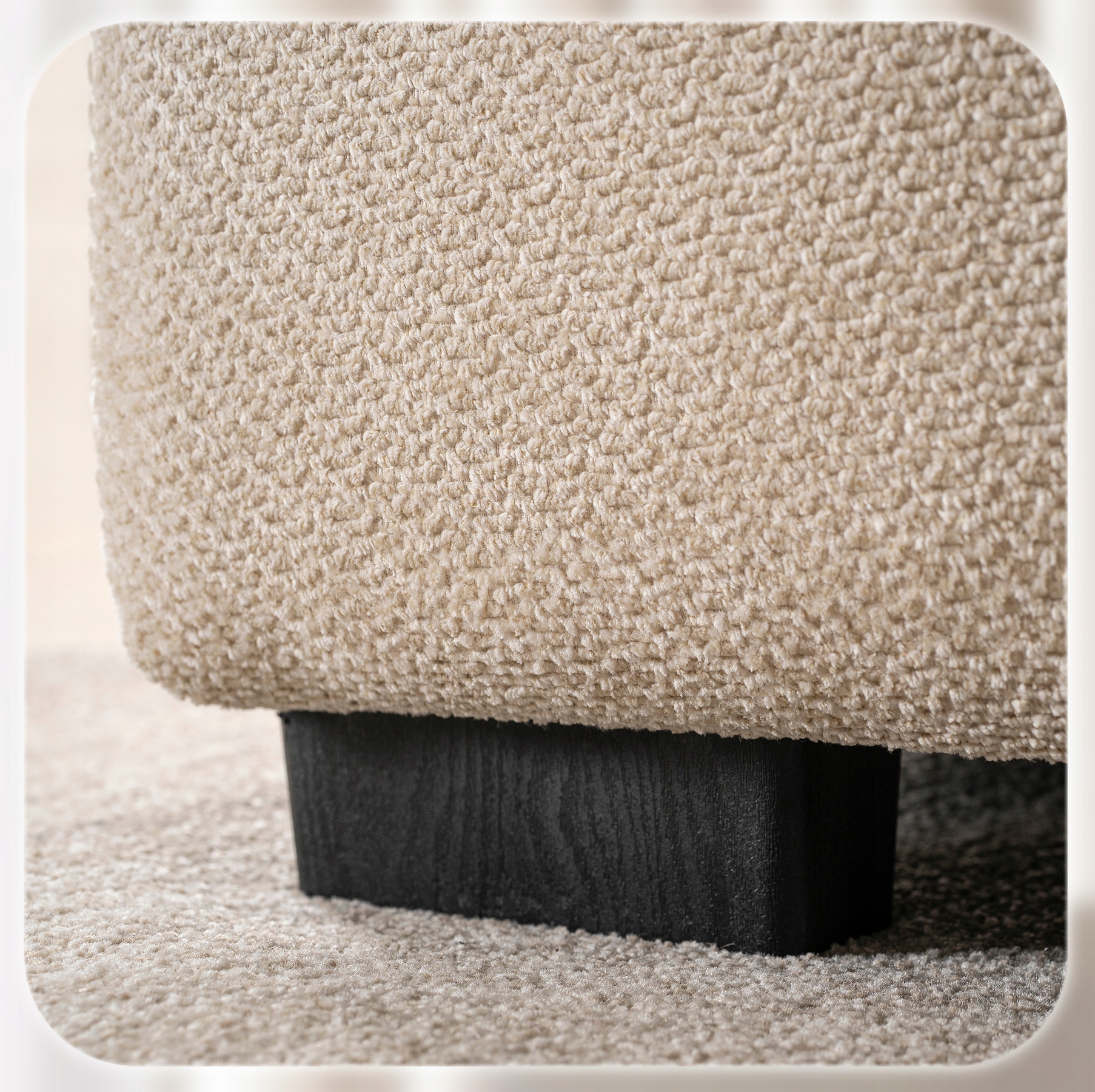 Kanapa MODERNO została osadzona na niskich nóżkach, które gwarantują pełną stabilność i trwałość konstrukcji. Ich czarny, kolor tworzy elegancki kontrast z jasną tkaniną, dodając kanapie wyrafinowanego charakteru.